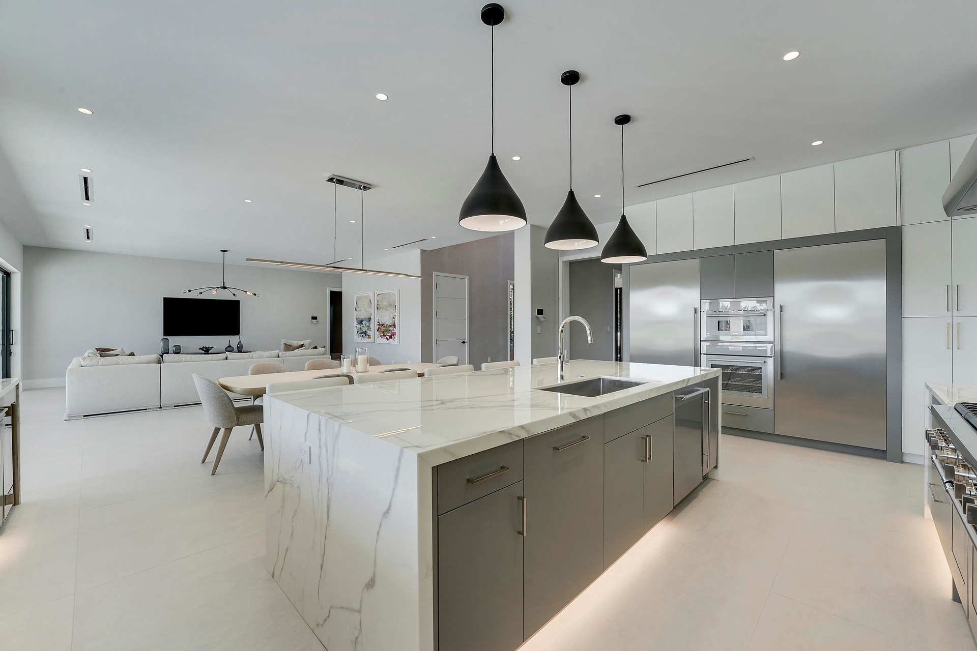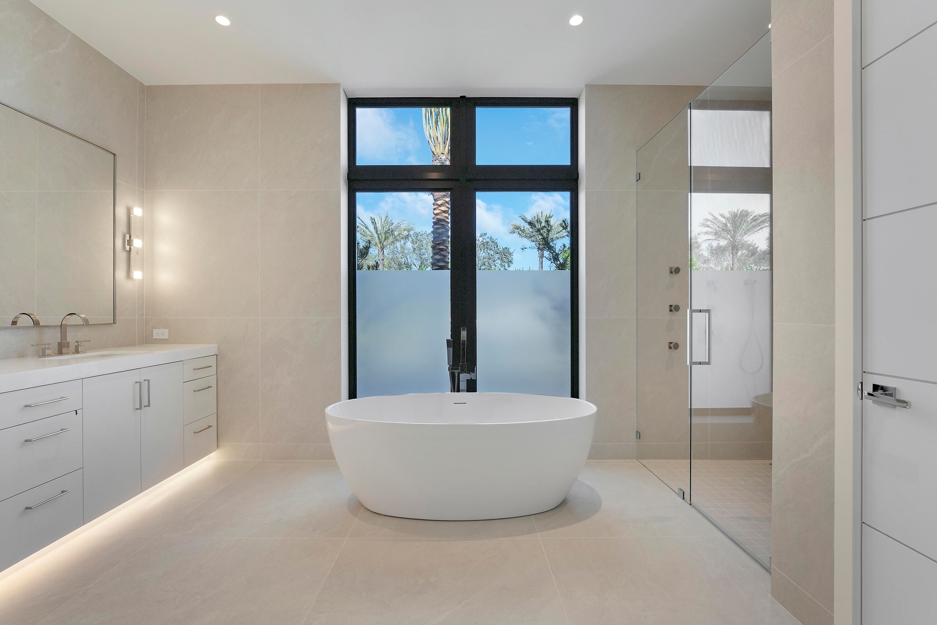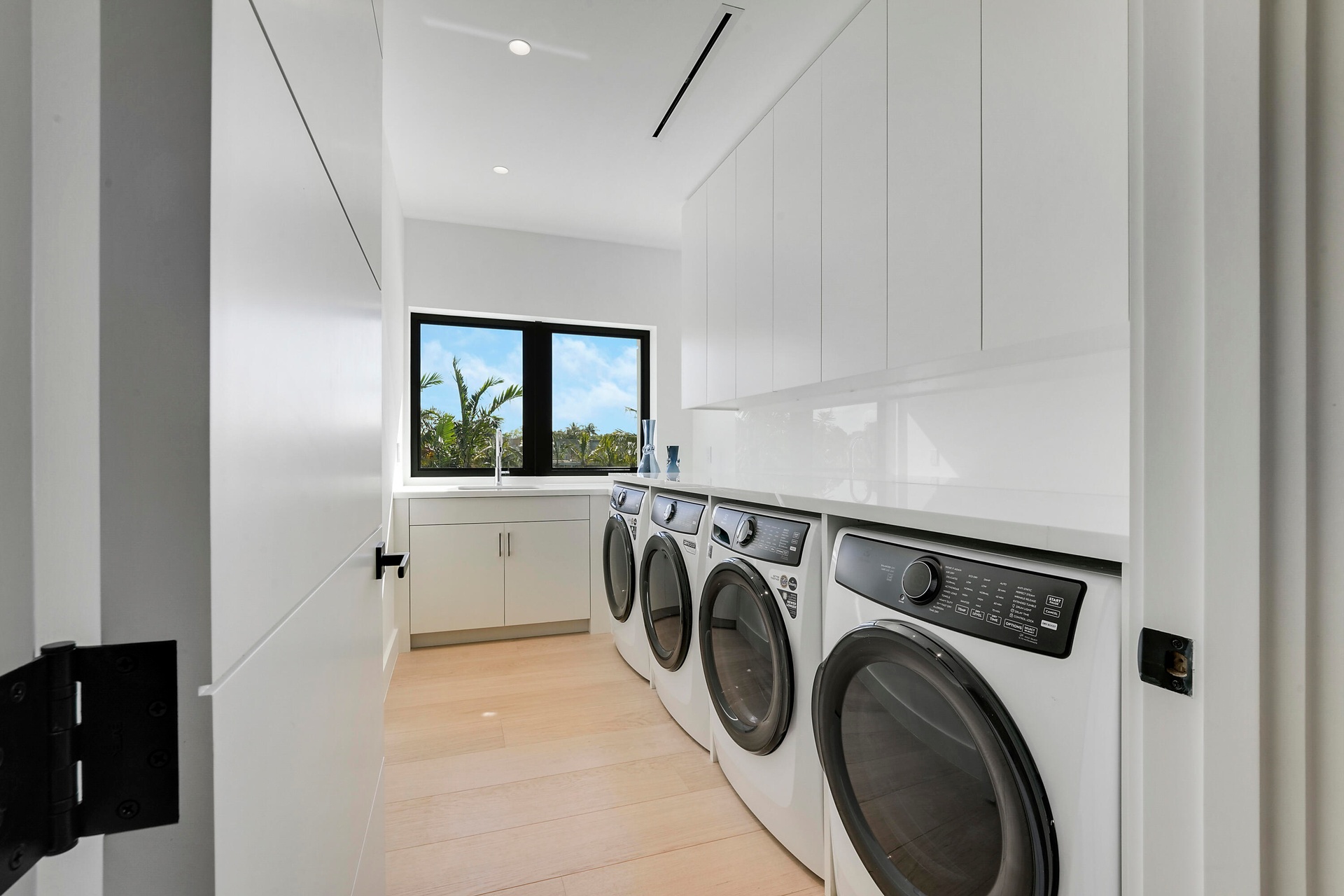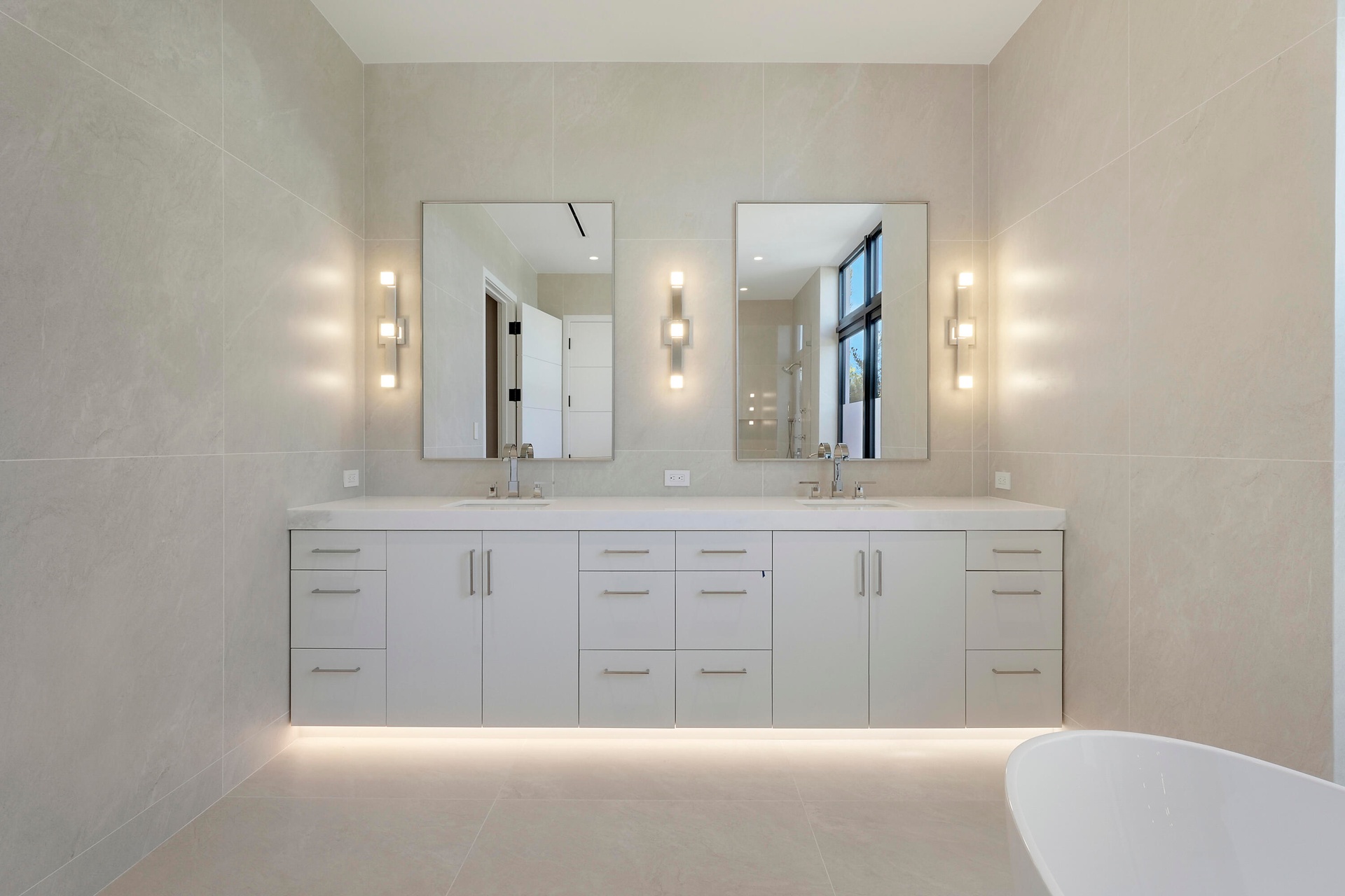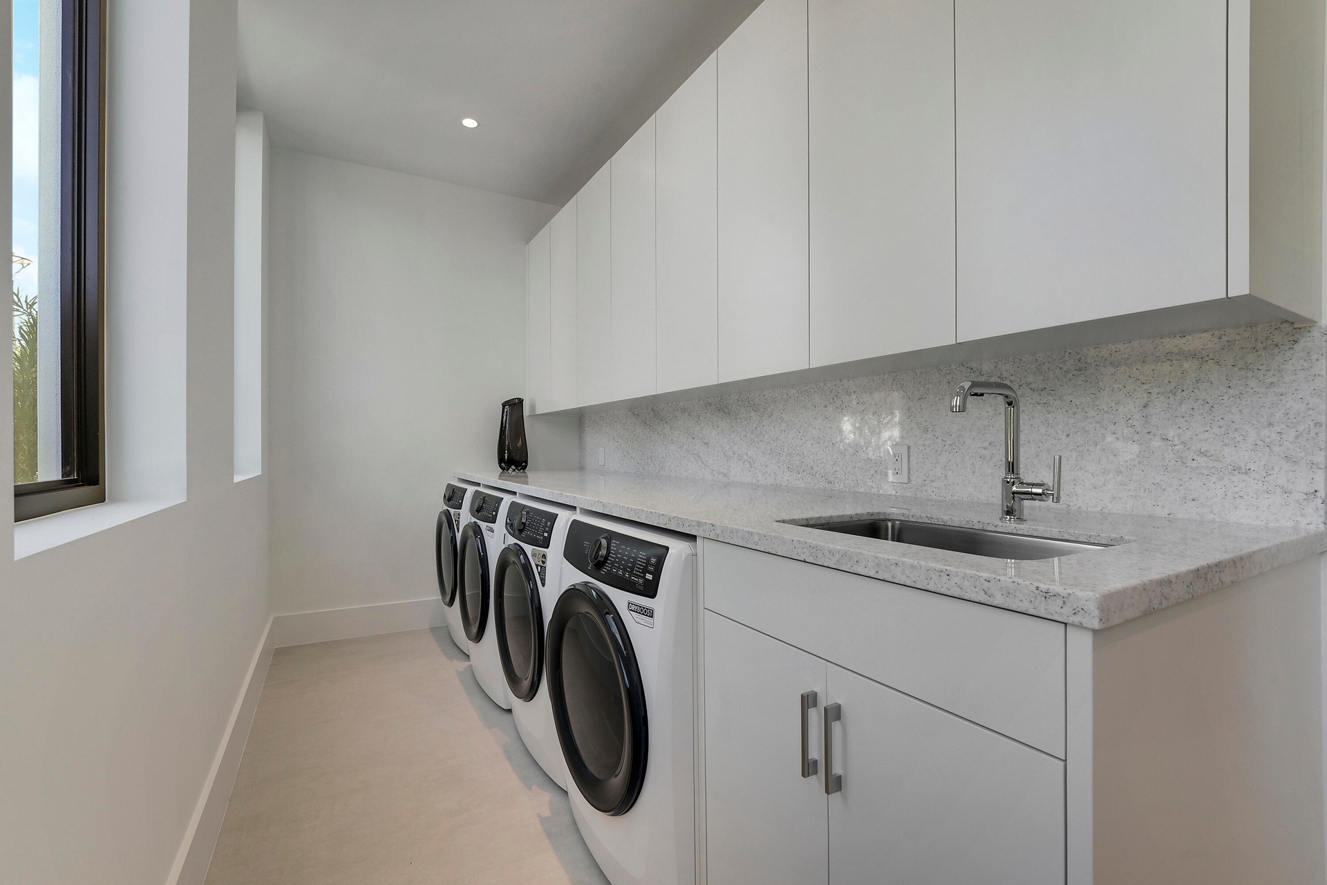 Farrell Estates at Palm Beach Polo presents an exclusive enclave of 27 bespoke residences. Lot 9 is a dramatic modern lakefront estate ideally located just 3 miles from the Winter Equestrian Festival and under 12 miles to Palm Beach International Airport. Spanning 7,492 SF, the home showcases soaring light-filled interiors, expansive porcelain floors, and walls of glass framing tranquil water views. The chef's kitchen and great room flow seamlessly to over 900 SF of covered outdoor living designed for sunset entertaining. The main level offers a private junior suite with sitting area plus a versatile flex space ideal for a gym or office. Upstairs, five ensuite bedrooms accompany a luxurious primary retreat with office or dressing room. Double laundry rooms on both levels provide exceptional functionality. A rare opportunity for modern lakefront living within Palm Beach Polo.