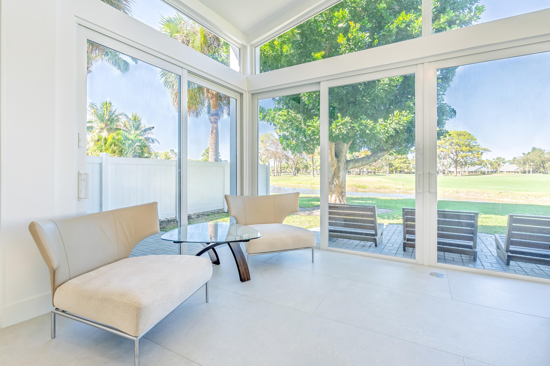 This elegantly renovated 4 bed 4 bath single family home is located in Eastpointe Country Club.The home features vaulted ceilings in this grand open floor plan, with a large center island gourmet kitchen. The home's location and design offer incredible panoramic views of the lakes and Fazio designed golf courses from inside and your patio. The stunningly appointed spacious primary suite and private patio is featured in this split bedroom floor plan. Enjoy all the state of the art features you'd expect with a newly renovated home like impact windows and sliders, european cabinetry, mechanicals, flooring and baths.Eastpointe has a mandatory club membership providing residents with a brand new clubhouse, restaurant, pool, tennis, pickleball, fitness, and upgrade to a full golf membership.