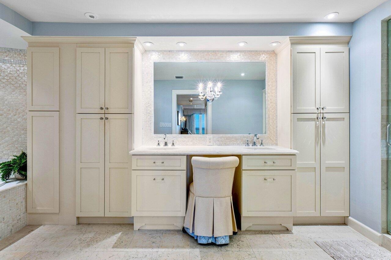 Beautifully renovated 2nd floor condo offers a tranquil oceanfront retreat. Impeccable design choices include wood-look ceramic flooring, luxurious White Isis Marble, shimmering Mercury Glass kitchen accents, & a lavish Master Bath showcasing Capiz shell, marble, and Mother of Pearl. Floor-to-ceiling windows in the open-concept living space, Master Suite, and Guest Suite frame breathtaking southeast ocean views. A gracefully curved, covered balcony, accessible from every room, invites relaxation & alfresco dining. The expansive living area is ideal for effortless entertaining. The gourmet kitchen, complete w/ a beautiful island, provides ample storage & a casual dining space. Sailfish Point offers the ultimate Florida resort lifestyle with its oceanfront country club, fine & casual dining, Sailfish Point offers the ultimate Florida resort lifestyle with its oceanfront country club, fine & casual dining, Har-Tru tennis courts, Jack Nicklaus "Signature" golf course, state-of-the-art fitness center & spa, helipad, 1.5 miles of gorgeous beach, and 24/7 guarded & patrolled security for peace of mind.