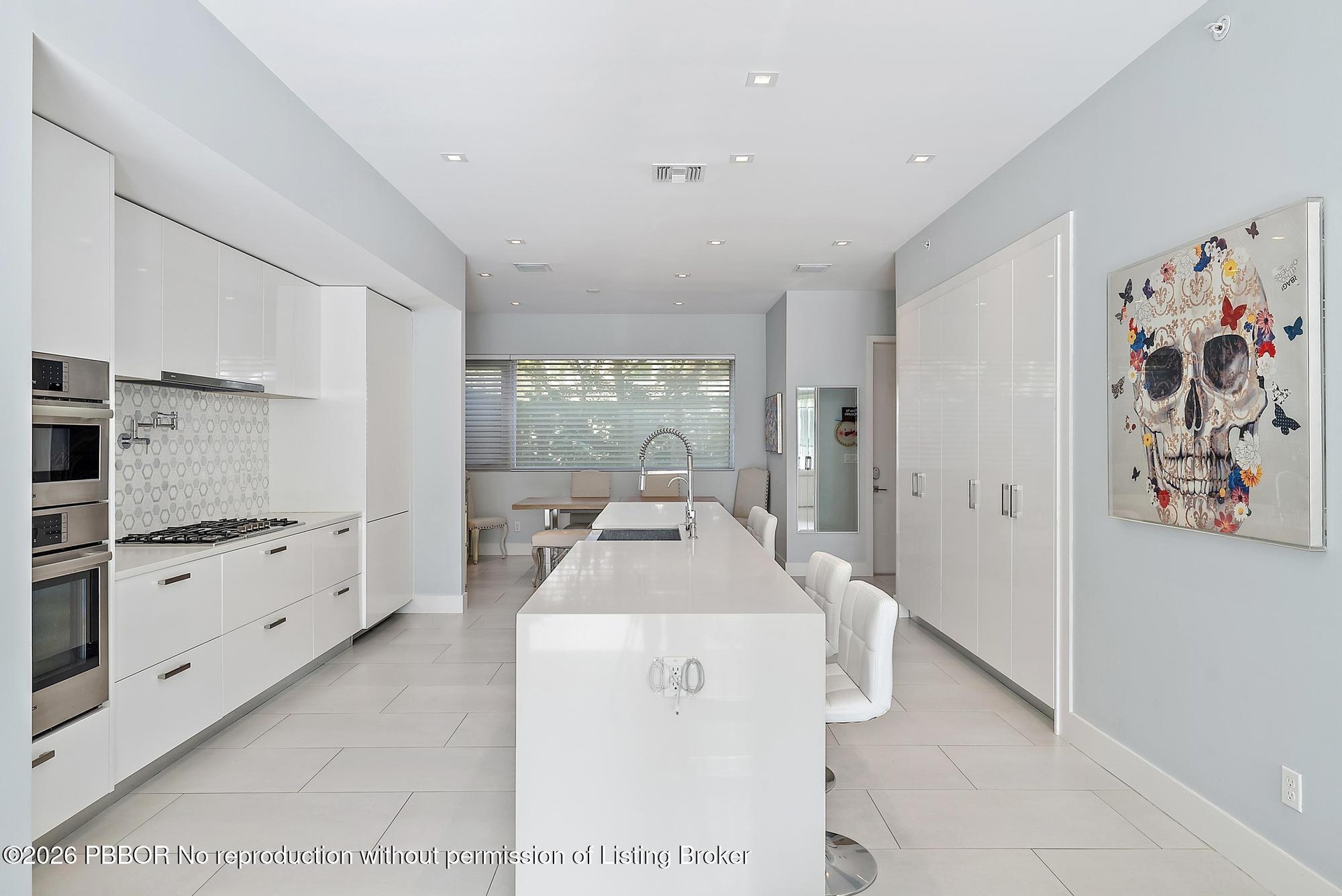 This corner unit has been meticulously upgraded from top to bottom with premium finishes and thoughtful enhancements throughout. Recent improvements include a heated pool pump (2024), polyurea concrete floor coating (2024), new AC systems with upgraded drain lines and UV lights (2023), and newly installed turf (2025). Additional upgrades feature a new driveway retaining wall, Wi-Fi-enabled thermostats, an oversized internet panel, an August smart lock, RO water filtration dispenser, pot filler, motorized shades, custom designer window treatments, a bespoke kitchen backsplash, custom closet systems, a Haiku living room ceiling fan, and over $20,000 in designer blinds.