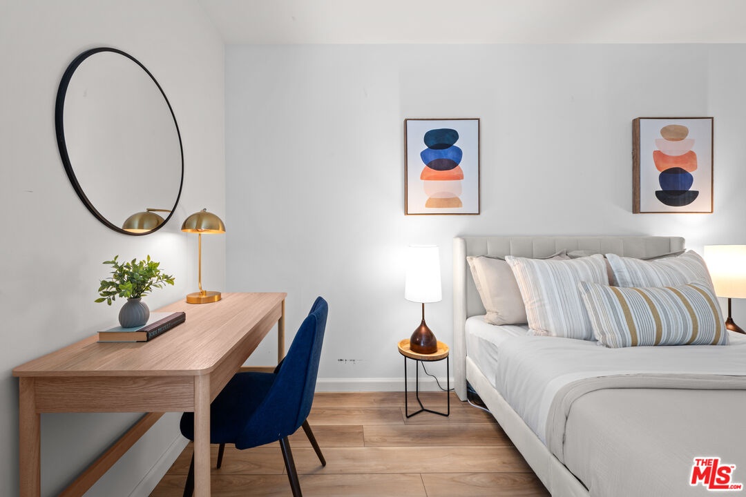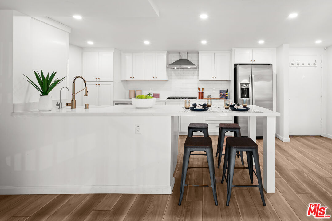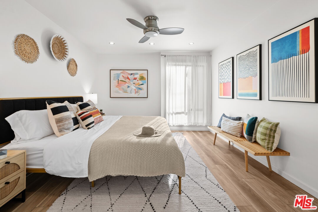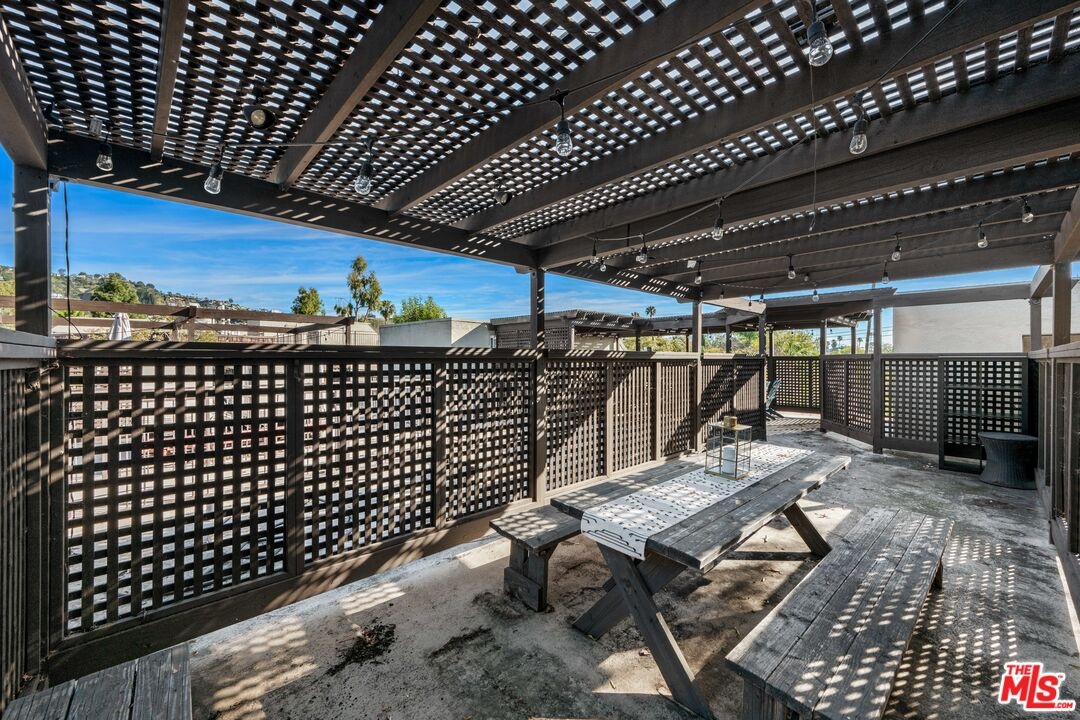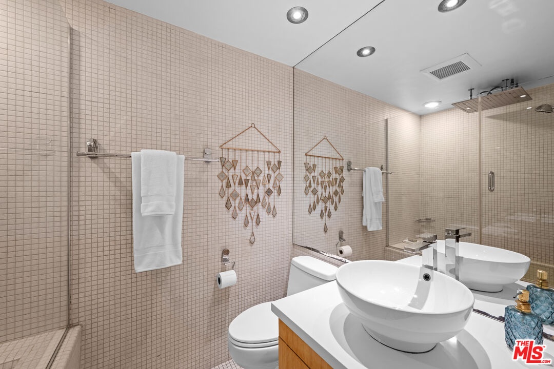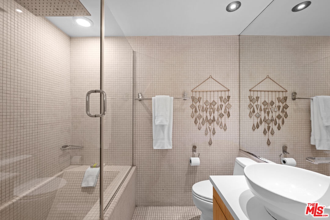 Experience elevated West Hollywood living in this beautifully renovated 2-bedroom, 2-bath residence with a versatile loft and an expansive private rooftop deck. Recently completed in 2024, the home underwent a $130K renovation featuring thoughtful design and high-end finishes throughout. Step inside to discover brand-new flooring that creates a cohesive and modern living space. Bright living room with 2 story ceilings. The fully remodeled kitchen is designed for both everyday living and entertaining, featuring new granite countertops, an extended peninsula ideal for casual dining, maplewood white cabinetry with champagne brass hardware, a new cooktop and hood vent, and a full suite of stainless-steel appliances. The spa-inspired primary bathroom showcases elegant marble tile finishes, premium California Faucets fixtures in a sophisticated champagne brass finish, a custom vanity and countertop, and an illuminated mirror for a polished, modern feel. 2nd Bedroom has ensuite bathroom with soaking tub. Upstairs, the flexible loft space offers endless possibilities, perfect for a third bedroom, home office, or creative studio. One of the home's most exceptional features is approximately 850 square feet of outdoor living space, including the largest patio in the Courtyards community. Enjoy sweeping views of Century City, the West Hollywood Hills, and Downtown Los Angeles, ideal for entertaining, relaxing, and taking in iconic city sunsets. The home also includes the convenience of in-unit laundry and 2 parking spaces. HOA dues include quite a bit: water, gas, part of your air and heat bill, WiFi, earthquake insurance, beautifully maintained grounds with pool, spa, sauna and gym. (Recent special assessment has been paid in full by current owner)