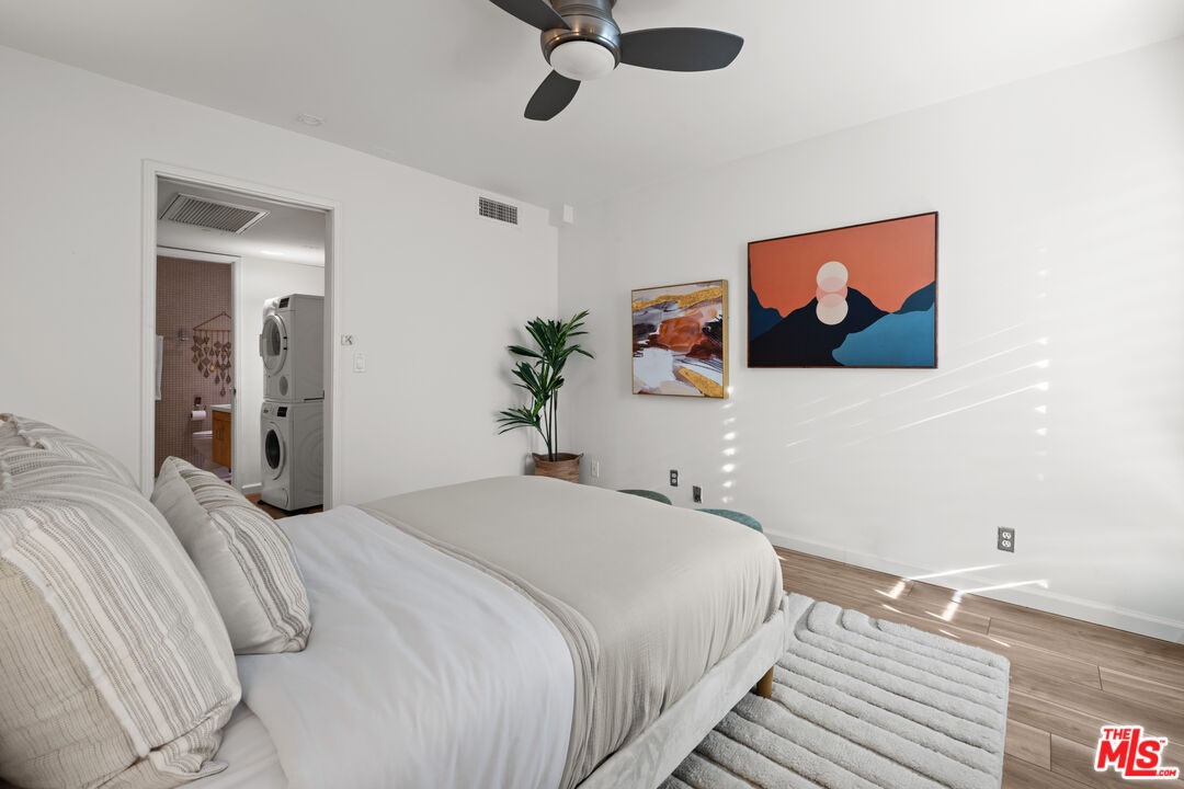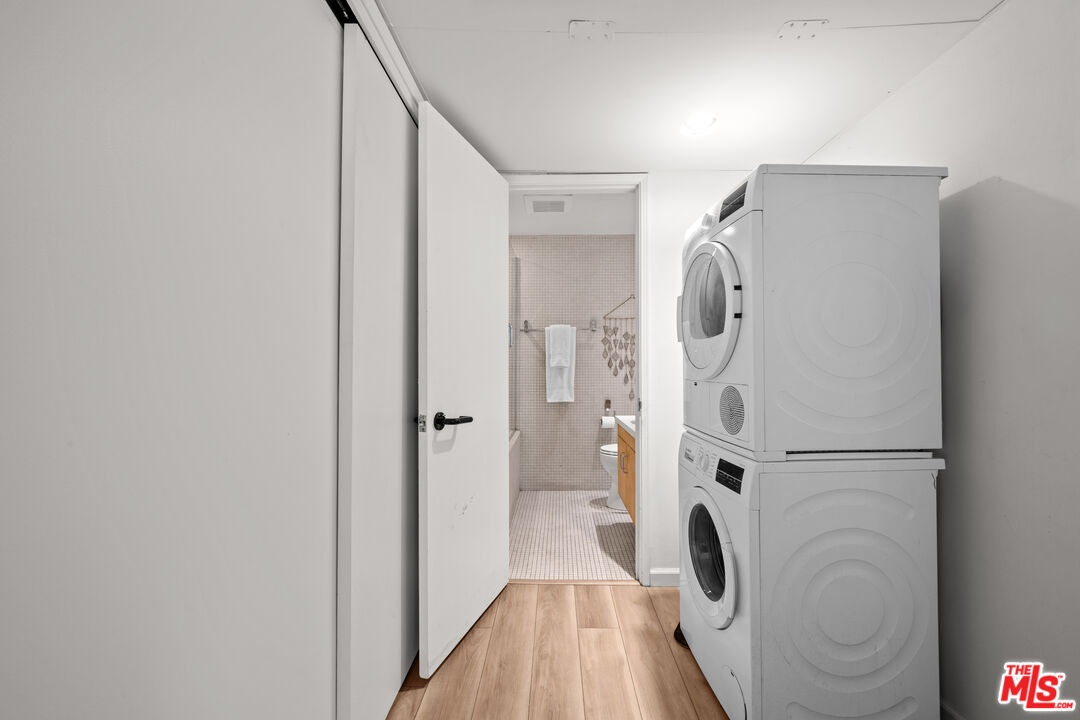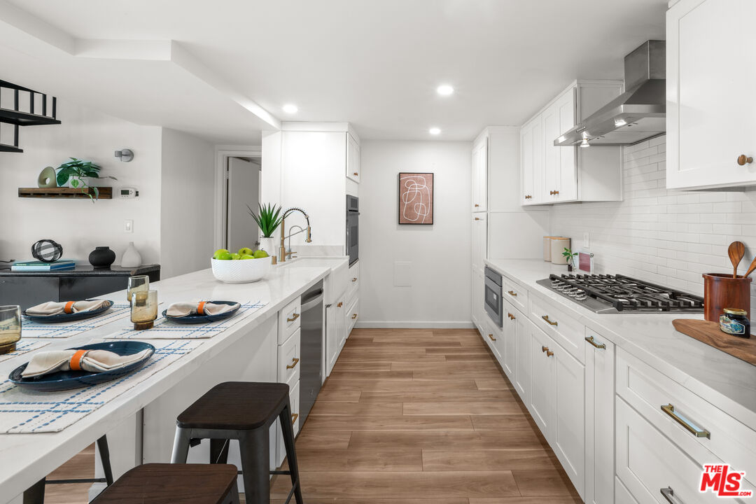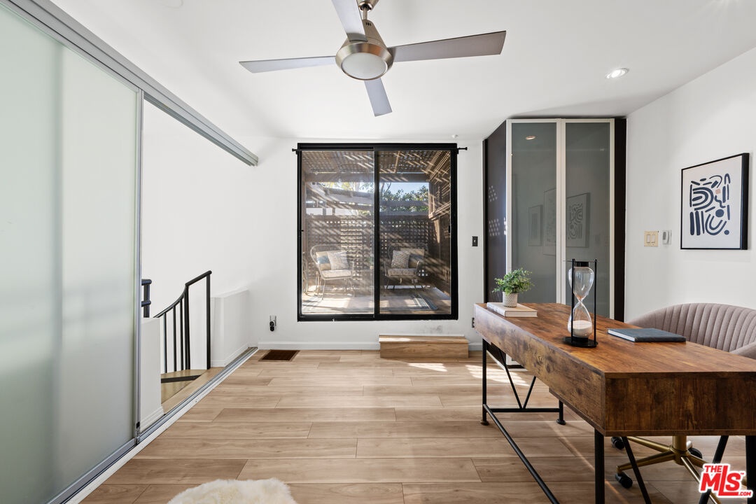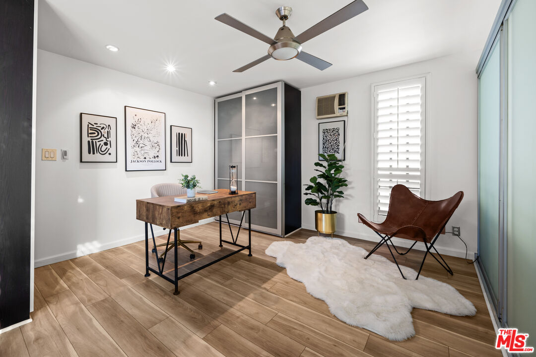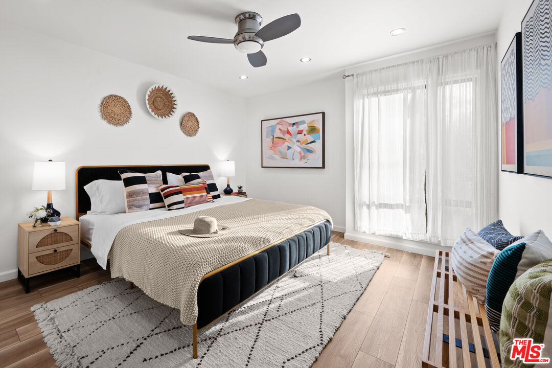Experience elevated West Hollywood living in this beautifully renovated 2-bedroom, 2-bath residence with a versatile loft and an expansive private rooftop deck. Recently completed in 2024, the home underwent a $130K renovation featuring thoughtful design and high-end finishes throughout. Step inside to discover brand-new flooring that creates a cohesive and modern living space. Bright living room with 2 story ceilings. The fully remodeled kitchen is designed for both everyday living and entertaining, featuring new granite countertops, an extended peninsula ideal for casual dining, maplewood white cabinetry with champagne brass hardware, a new cooktop and hood vent, and a full suite of stainless-steel appliances. The spa-inspired primary bathroom showcases elegant marble tile finishes, premium California Faucets fixtures in a sophisticated champagne brass finish, a custom vanity and countertop, and an illuminated mirror for a polished, modern feel. 2nd Bedroom has ensuite bathroom with soaking tub. Upstairs, the flexible loft space offers endless possibilities, perfect for a third bedroom, home office, or creative studio. One of the home's most exceptional features is approximately 850 square feet of outdoor living space, including the largest patio in the Courtyards community. Enjoy sweeping views of Century City, the West Hollywood Hills, and Downtown Los Angeles, ideal for entertaining, relaxing, and taking in iconic city sunsets. The home also includes the convenience of in-unit laundry and 2 parking spaces. HOA dues include quite a bit: water, gas, part of your air and heat bill, WiFi, earthquake insurance, beautifully maintained grounds with pool, spa, sauna and gym. (Recent special assessment has been paid in full by current owner)