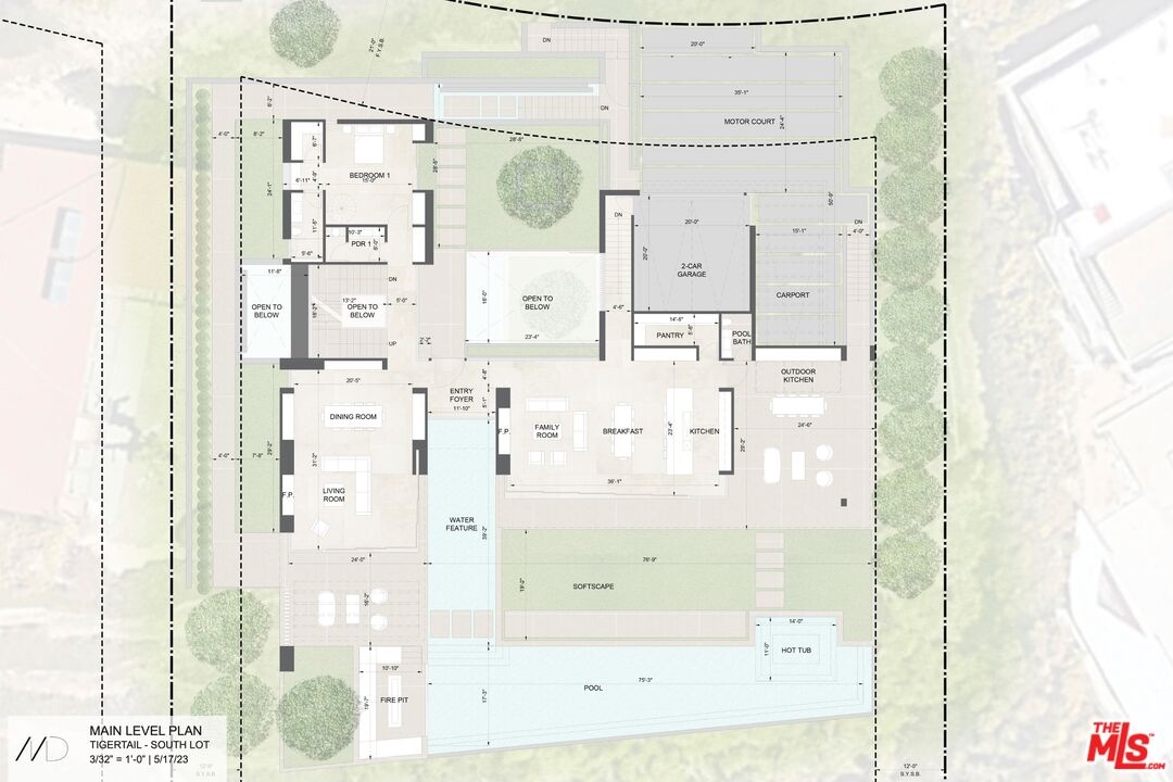 Perched in a prestigious Brentwood neighborhood, 741 North Tigertail Road presents an extraordinary opportunity to create a world-class estate in one of the Westside's most sought-after neighborhoods. Set on an expansive 30,410 square foot lot (.69 AC), the property captures spectacular canyon and ocean views, offering a breathtaking backdrop for a future architectural masterpiece. The offering includes RTI plans, surveys, and a slope density analysis, providing a valuable head start for the next owner to begin building their dream home with confidence and efficiency. The approved plans envision a stunning contemporary residence designed to blur the lines between indoor and outdoor living, thoughtfully positioned to maximize the property's sweeping vistas and natural, bluff-front surroundings. The proposed home would span 9,838 interior square feet across three expansive levels, featuring seven bedrooms and eleven bathrooms, along with an array of luxury amenities including an infinity-edge pool and spa, fire pit, outdoor kitchen, rooftop deck, entertainment lounge with wet bar, screening room, gym, and a state-of-the-art wellness center. A luxurious primary wing serves as a private retreat, while the overall design prioritizes privacy, tranquility, and seamless flow for both everyday living and grand-scale entertaining. Located in a prime Brentwood enclave, the property is just moments from top-rated schools, The Getty, and the acclaimed dining and shopping along San Vicente Boulevard. With its rare scale, breathtaking views, and RTI Plans for an exceptional modern estate, 741 North Tigertail Road offers a remarkable opportunity to bring a visionary residence to life in one of Los Angeles' most desirable communities.