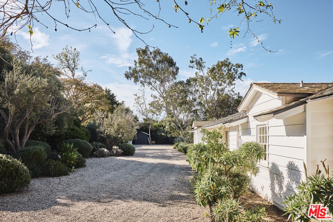 This sensational Point Dume house is set on more than an acre of gated and landscaped privacy. Complete with beach rights, it is a home created for comfortable indoor/outdoor living and sophisticated entertaining. The home is detailed with high wood-beamed ceilings, Fleetwood glass doors and cement floors. In addition to a beautiful living room, the home has a media room, family room with fireplace, a dining area, and a chef's kitchen equipped with a Viking stove and oversized Sub Zero refrigerator and freezer. Large 12-foot sliding doors open the house to the front and back yards. There are three bedrooms and four bathrooms, plus an office/bonus room, with a fireplace, that could be a fourth bedroom. The owner's suite has a fireplace, a wall of glass doors opening to the back patio, and a luxurious garden-view bath with a huge shower, tub, and double sinks. The exquisite grounds are tranquil and harmonious, with a pool and spa, dining area, fire pit, double barbecue island, multiple recreation and seating areas among beautiful trees and plantings, and a detached one bedroom guest house. The home is also equipped with modern updates such as Sonos speakers, Generac auxiliary power, NEST heating and cooling, and security entry. This exceptional property is just a short distance to Riviera 2 private beach access. Available July 1st, 2025.
