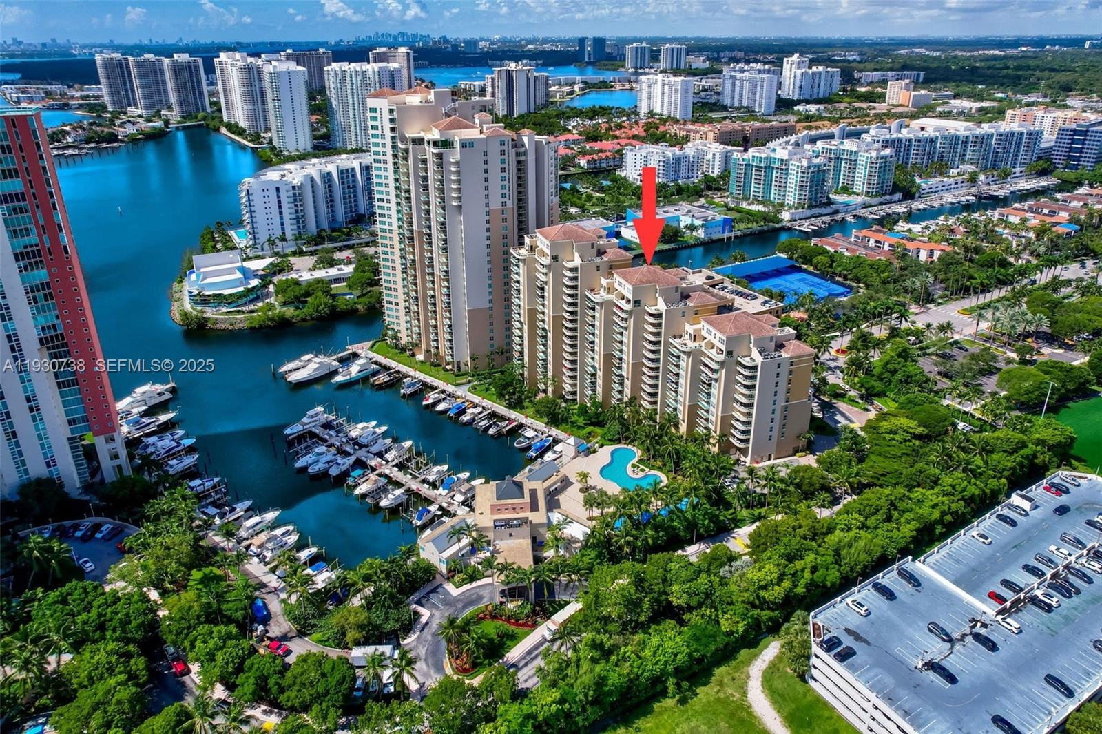 Enter this amazing residence and immediately & throughout see the best views. Coveted split two bedroom floor plan plus den, open kitchen & all upgraded light & bright & move in condition! Floor to ceiling glass to see the sparkling water vistas and large terrace. The finest finishes include white porcelain floor throughout. Enjoy the 5* Amenities Of A Private Resort On 24 Hour Guard Gated Acres Surrounded On 2 Sides By Water, 2 Story Spa & Health Club, 2 Pools, Tennis Courts, Gym, Private 65 Slip Marina, Private Park, Valet, Security, Concierge And Much More!