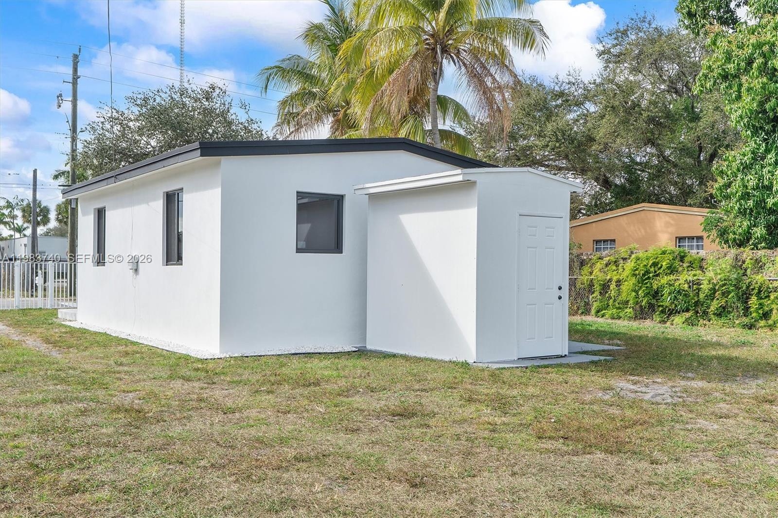 Fully renovated 2-bedroom home, completed with permits and high-quality upgrades throughout. Completely remodeled with no expense spared: new electrical system (wiring, meter, panel), brand-new PVC plumbing, and a new Rheem central A/C system with full ductwork. Hurricane-impact aluminum windows and doors, new roof, and aluminum fence for privacy and security. Modern kitchen with new cabinetry and brand-new appliances, plus washer and dryer included. Fully insulated roof and walls, new interior and exterior stucco, and premium finishes throughout. Spacious backyard — perfect for entertaining, kids, pets, or future additions. Move-in ready and built to last.