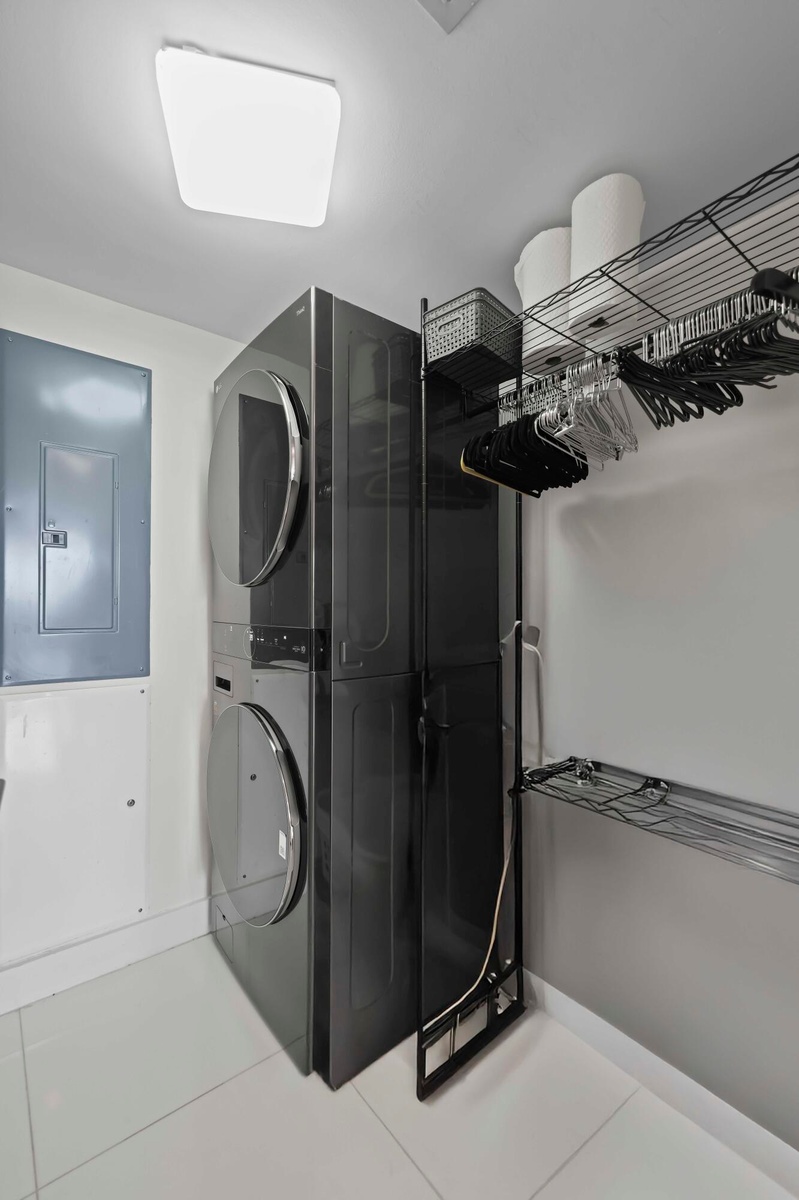 This recently renovated residence features an open layout with two-bedroom suites, a den or optional third bedroom, and two and a half updated bathrooms. The kitchen sits at the center of the residence and opens directly to the living and dining areas.