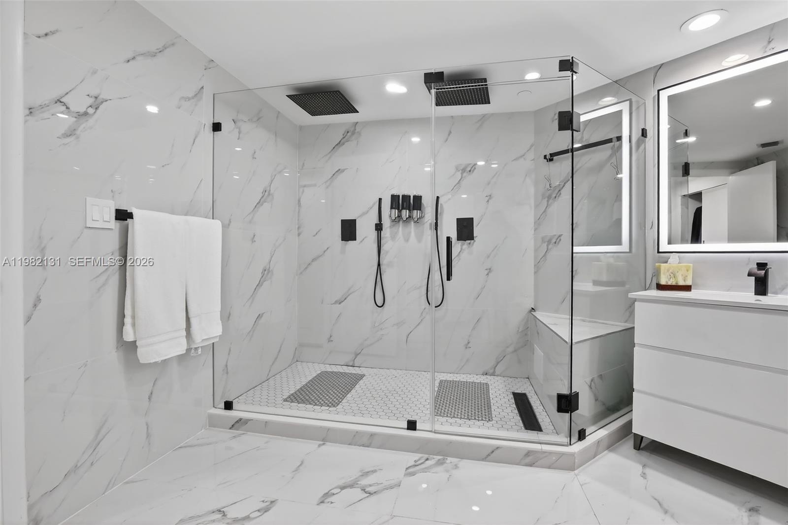 Wow! Spectacular Ocean Views From This Completely Renovated Two Story 3 Bed + Staff Quarters/ 4.5 Bathroom Modern Home In The Sky with Elevator. No Expense Was Spared & Nothing Original Remains! Stunning White Light/ Bright Residence Has The Finest Finishes incl. Open White State of the Art Kitchen with Top Of The Line Appliances, White Quartz Countertops, White Gloss Cabinets, All Large Italian Porcelain Floors Throughout, Custom Lighting, Smart Home, New Bathrooms, Enlarged Shower In Primary Bathroom with Seperate Sauna, Electric Shades, Huge Terraces w/ Floor To Ceiling Glass To See The Ocean, Intracoastal, City Views. This 84 Acre Island Paradise Offers Country Club Amenities Featuring State Of The Art Spa Bldg w/ workout Classes, Indoor Swimming Pool, 15 Tennis Courts, Pickle Ball Club, Kids Tennis Camp/ Lessons, 3 Restaurants, Starbucks, Deli, Kid's Playground, Marina, Courtesy Bus, Exercise Path, & More!
