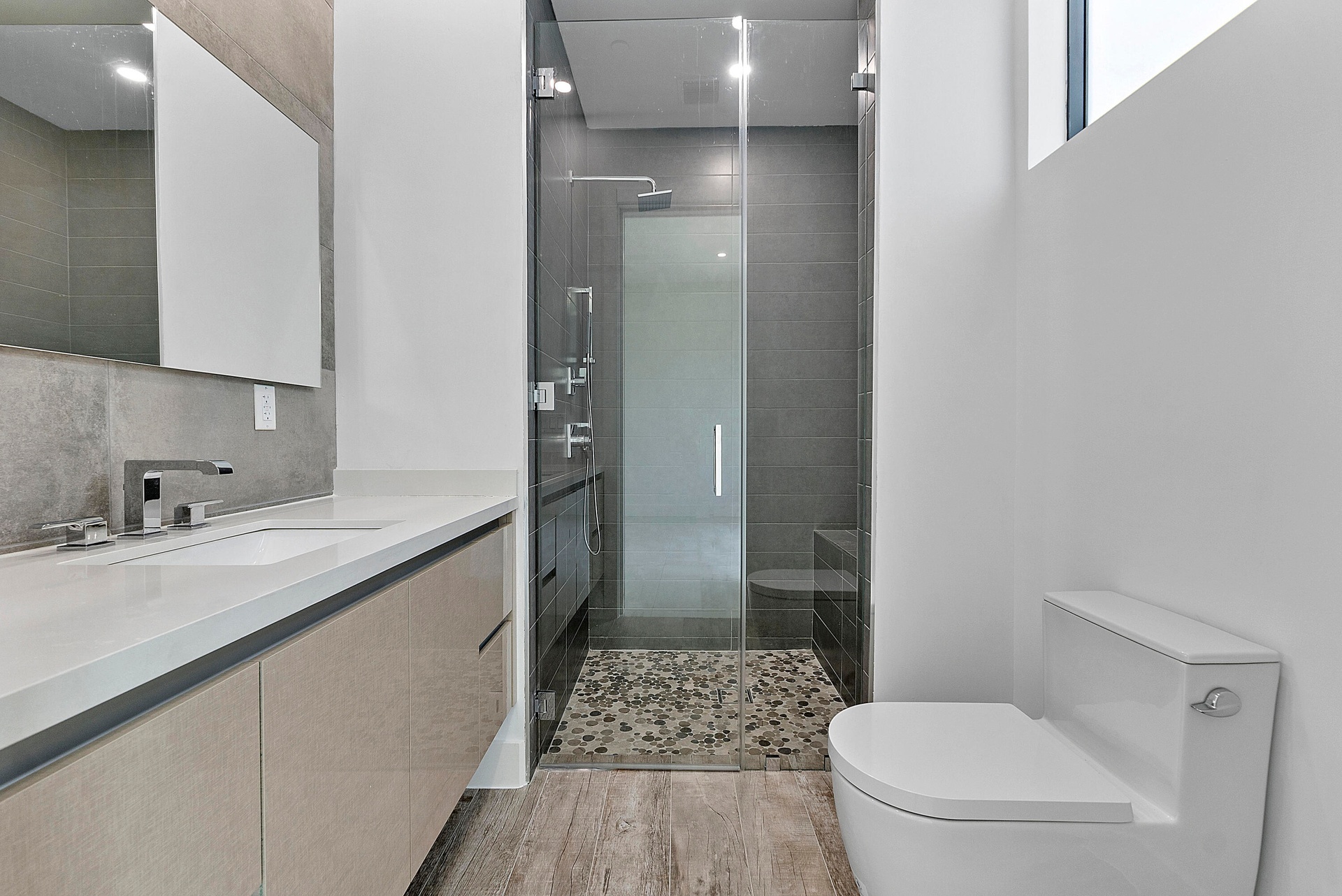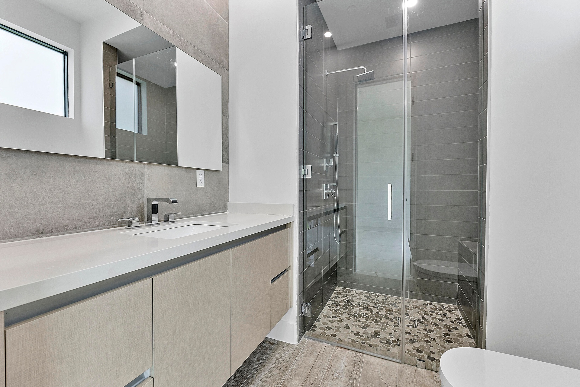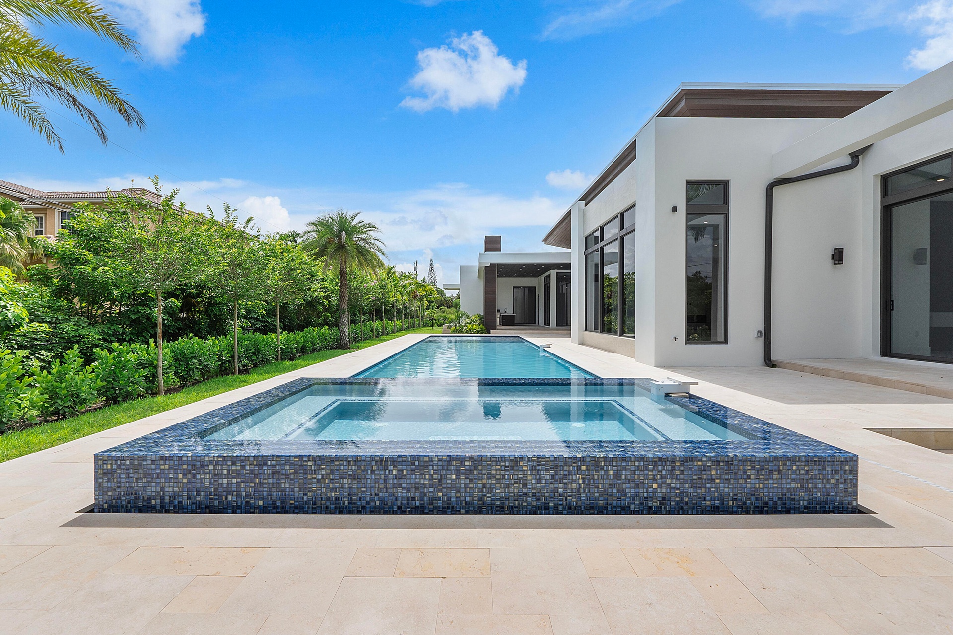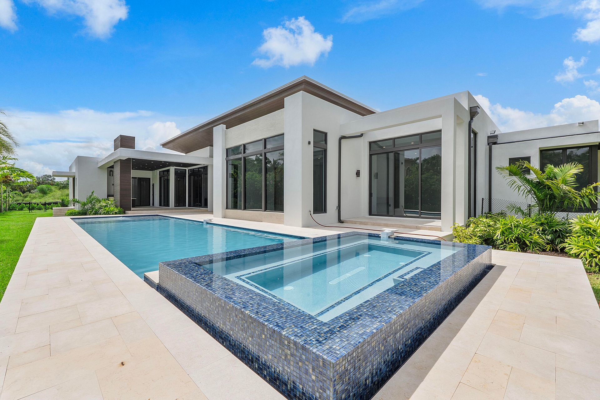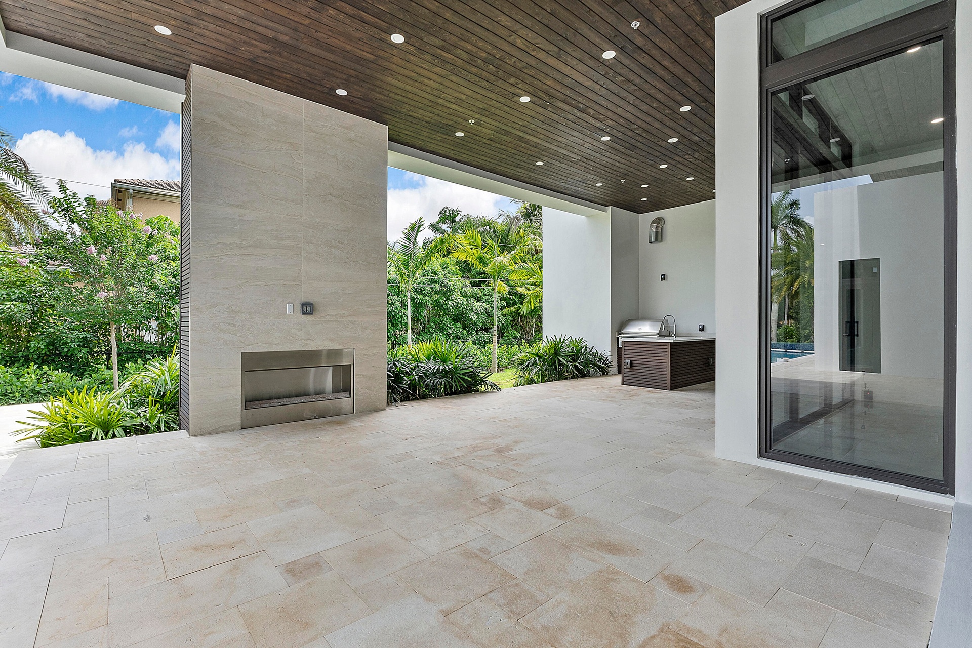 Newer construction in Plantation Acres Estates, an exclusive gated community of just 5 custom homes on builder's acres, designed by renowned architect Randall Stofft. This modern estate features 5 bedrooms plus an oversized club room and private office, 5 full and 2 half baths, and 2 wall-mounted fireplaces in the formal living and family rooms. Highlights include a 3-car garage, 3 A/C zones, impact windows, Silestone countertops, and large-format porcelain floors. The luxurious primary suite offers a private terrace and spacious dual closets, with a spa-like bath. Gourmet kitchen with top-tier appliances, gas cooktop, and sleek cabinetry. Resort-style backyard with infinity pool, spa, summer kitchen, covered patio, cabana bath, and lush landscaping.