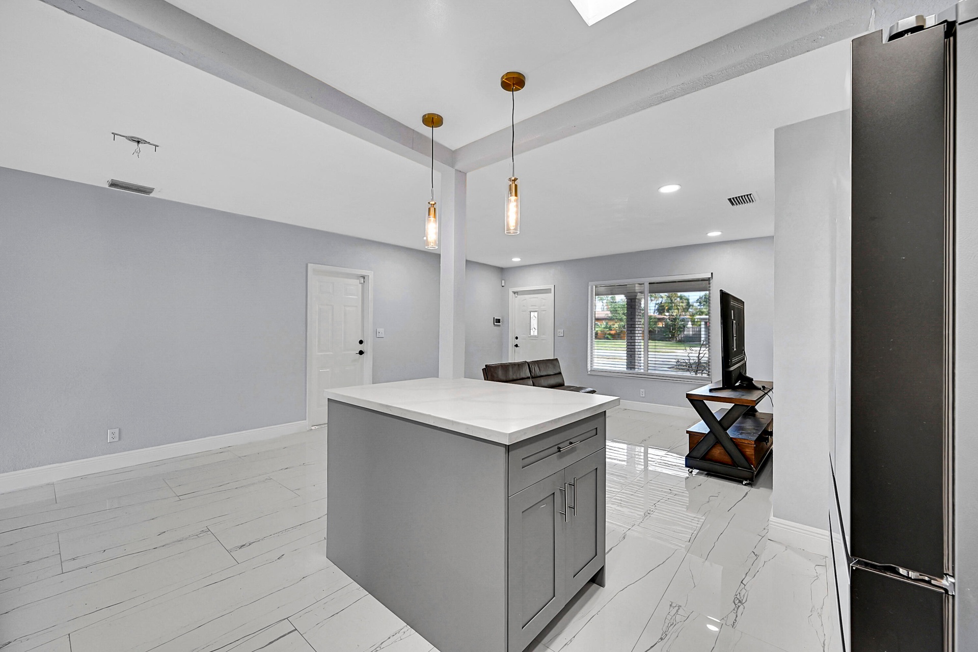 This completely renovated 4-bed, 3-bath home features two primary ensuites and offers flexible living options. Use it as a large family home or as a 3 bedroom, 2 bath main house with a separate 1-bed, 1-bath in-law suite with its own entrance and kitchen. The main house has an open kitchen with quartz counters, stainless steel appliances, and marble flooring. Hurricane impact protection throughout and security cameras installed. The house is close to major highways, Pompano Beach, restaurants, shopping centers and Fort Lauderdale airport. Owner may consider first month and security deposit only if good credit.