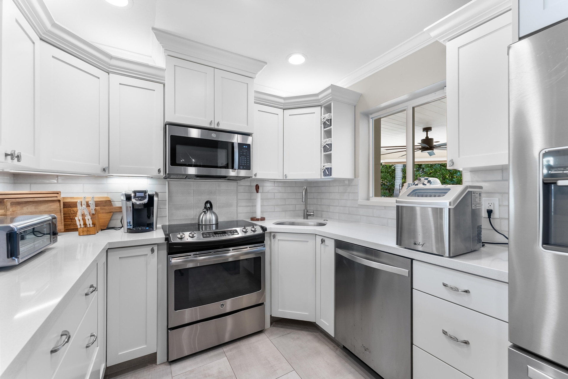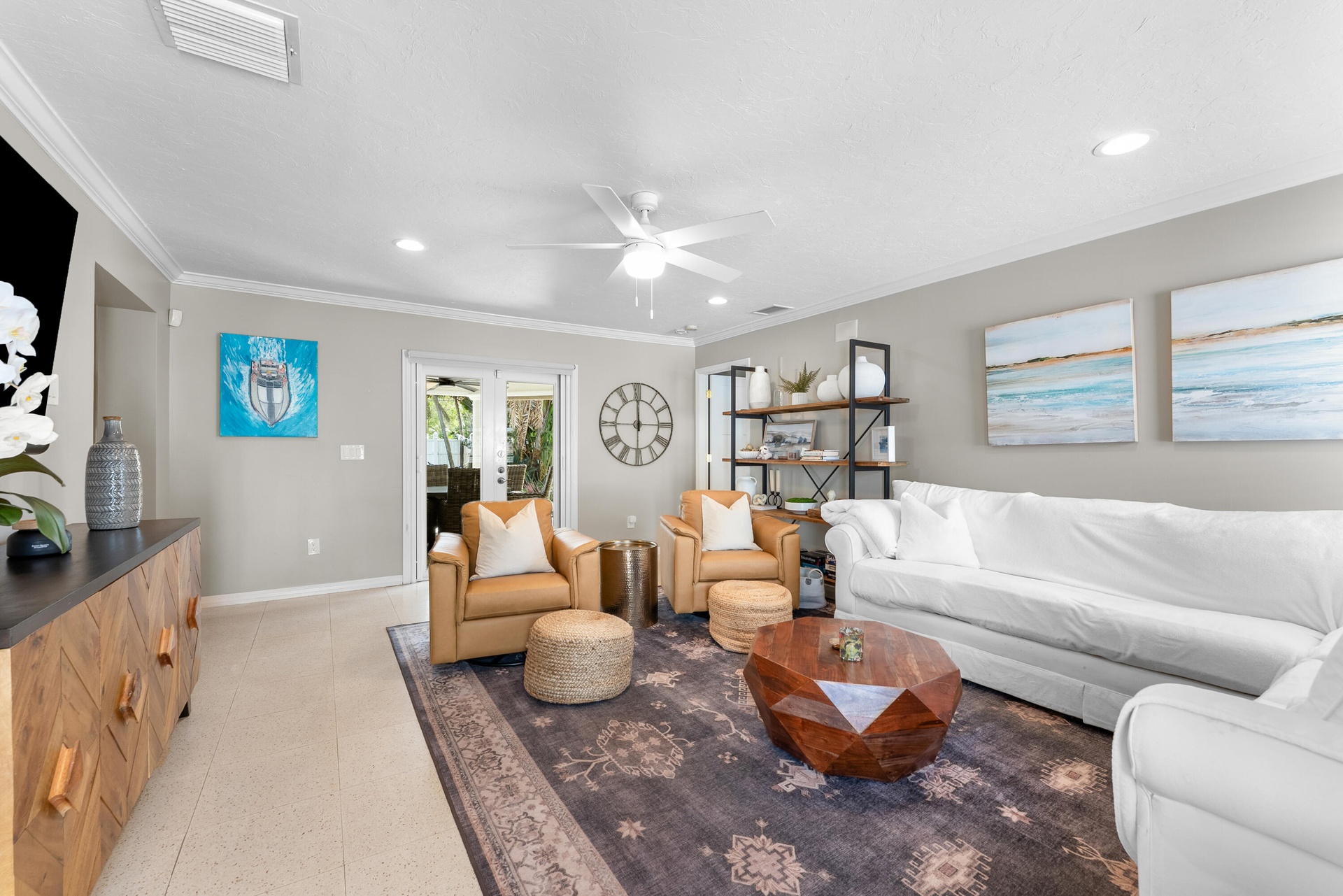 124 Bonnie Briar Lane is the perfect blend of coastal contemporary living intertwined with old Florida charm. Located within less than a mile to Delray Beach's famed Atlantic Avenue and within close proximity to the Atlantic Ocean, this home is ideal for anyone wanting to take advantage of all the perks associated with East Delray living. A brand new roof, impact windows and sliders, city gas line powering your dryer, fire place, brand new whole home generator, water heater and pool heater are all components making this home stress free for its new owner. With an idyllic split floor plan, the home centers around your open concept kitchen with two guest bedrooms on the East portion of the home and the primary suite on the West end of the property. The garage was converted into a flex room which can be used as 4th bedroom or easily converted back into a garage. A pair of French doors lead you into your pool area with a fully fenced yard offering exceptional privacy for entertaining by your private heated pool. This property is in a non HOA community granting you ability to have short term lease options.