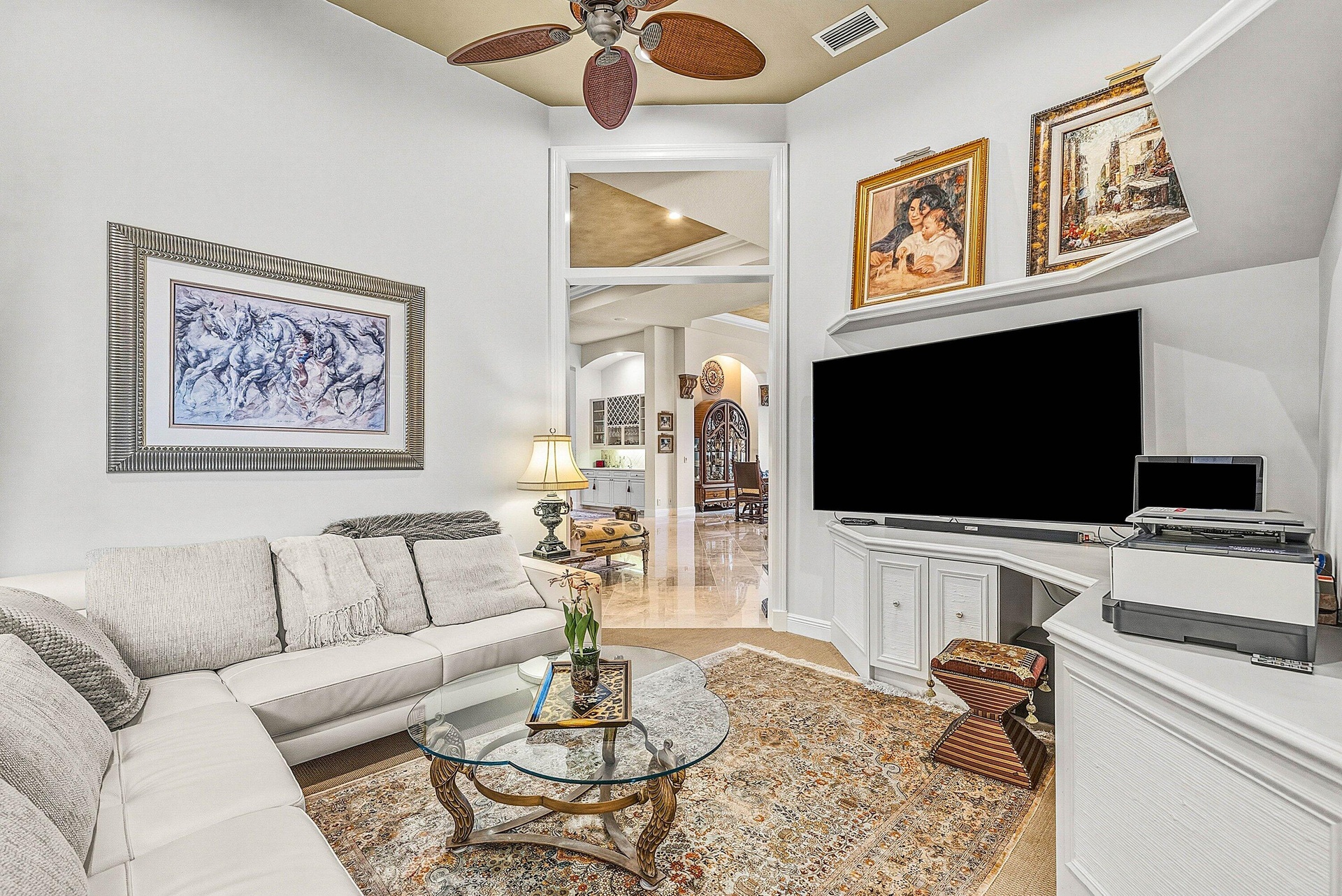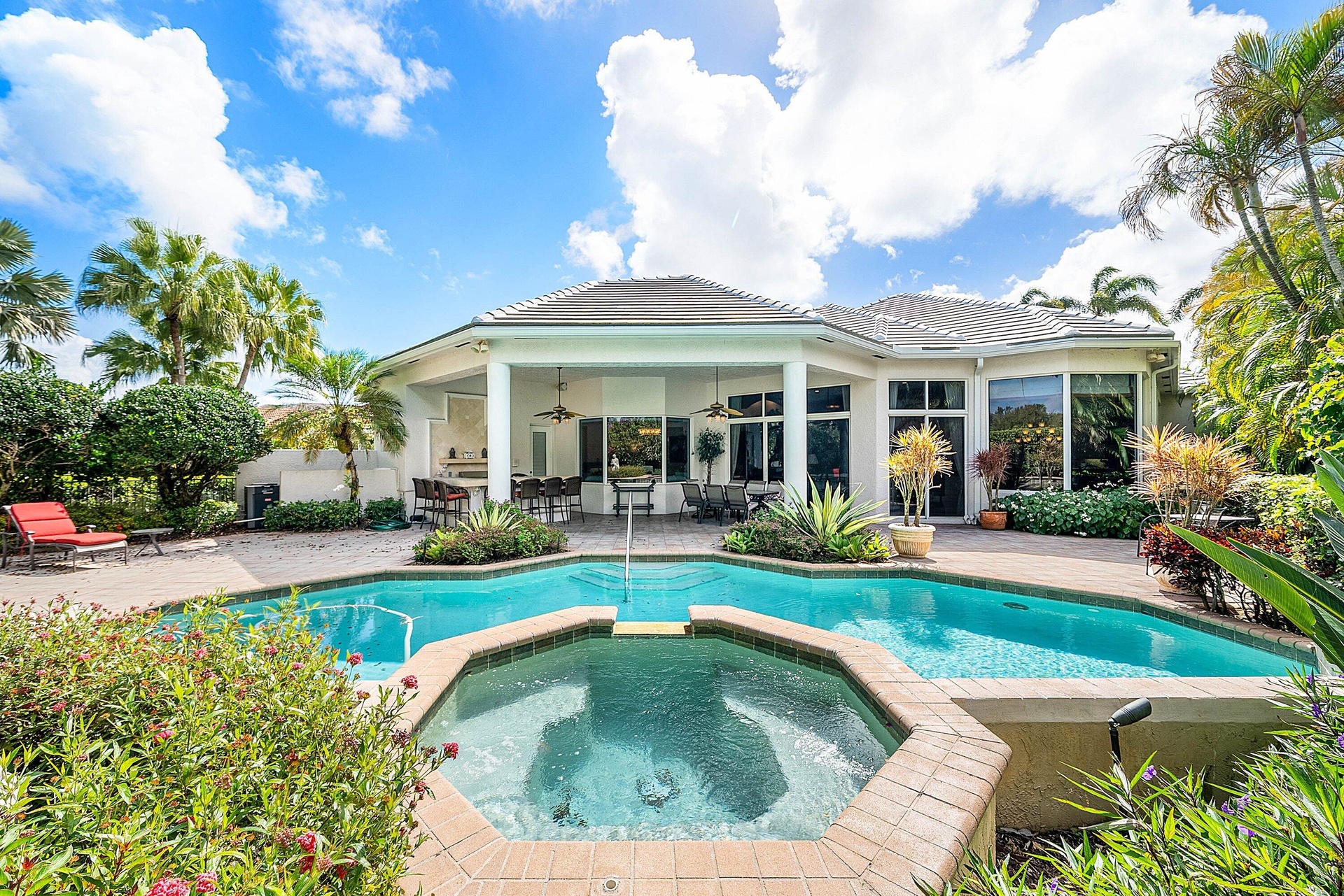 Exceptional single-story residence available in Ballenisles, offering over 4,100 sq ft of living space. This spacious home features 3 bedrooms plus an office and 4.5 bathrooms. Rackets membership available for purchase or immediately upgrade to Sports membership. Upon entry, you are welcomed by a grand foyer highlighted by impressive 15 foot ceilings and gleaming marble flooring. The home offers an inviting and spacious layout ideal for everyday living and entertaining, featuring a wet bar, a generous family room just off the kitchen, and a wall of windows along the rear of the home that showcases the picturesque vistas. Detailed moldings, graceful archways, soaring ceilings, and timeless décor enhance the elegance throughout. New roof was installed 2024 and exterior painted 1 year ago. The expansive primary suite is a peaceful retreat, featuring tray ceilings and a private sitting area overlooking the tranquil pool and garden views. Separate his and her bathrooms offer comfort and convenience, with his also serving as a cabana bath. The suite is complete with a separate soaking tub, glass-enclosed shower, and two oversized custom walk-in closets. The guest accommodations are equally impressive, offering spacious ensuite bedrooms. Guest bedroom two features a charming interior courtyard, allowing natural light to fill the space and adding a unique outdoor element. Step outside to the private patio where lush hedges frame beautiful views of the rolling fairways of the South Course's 14th hole. The outdoor living area is perfect for entertaining, featuring a covered patio, summer kitchen, and a custom heated pool and spa designed for year-round enjoyment. Ballenisles Country Club is recognized as a 5-star platinum rated club offering world class amenities and facilities with three championship golf courses, a top rated tennis & pickleball facility, beautiful renovated clubhouse and sports complex, six dining options, fitness center, spa & salon, community pool, dog park, walking paths, and so much more.
