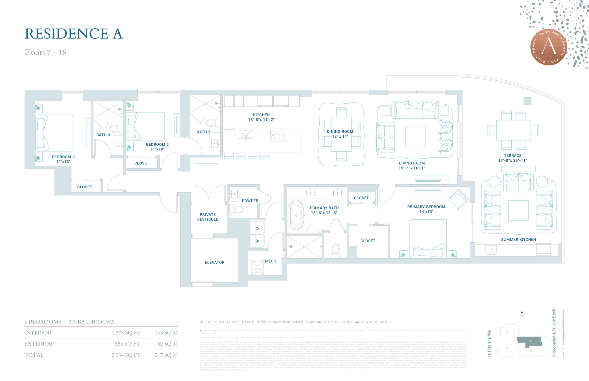 ALBA Palm Beach - a collection of 55 luxury residences, ranging from 2 to 4 bedrooms, in a 22-story waterfront boutique building designed by Spina O'Rourke + Partners. It's the only new construction in West Palm Beach directly on the Intracoastal Waterway! Completion Spring 2026!! Residence 1501 offers 1,778 square feet of living space, featuring 3 bedrooms and 3.5 baths. It includes a 556-square-foot glass-framed terrace with a summer kitchen and panoramic intracoastal/ocean views. The great room, dining area, and primary suite are surrounded by floor-to-ceiling hurricane-impact windows, showcasing stunning inlet views. Italkraft kitchen is equipped with SubZero® and Wolf® appliances, including an induction stovetop and steam oven... Each residence has a private elevator and vestibule for ultimate privacy, and is pre-wired for smart-home technology. The primary bedroom boasts a double exposure, extra-large walk-in closet, access to the terrace and a gorgeous windowed five fixture bathroom. Alba residents will enjoy a private gated entry, private dock with boat slip access, and an elevated full-floor amenity level with both a sunrise and sunset pool for all day fun in the sun. Breathtaking views of the Intracoastal can be seen from the luxurious spa, state-of-the-art fitness center by TechnoGym®, yoga study and more! 24hr Valet, Security, and Concierge. Elevate your lifestyle in this exclusive haven with incredible amenities such as private dining room equipped with climate-controlled wine storage for each owner and a commercial kitchen tailored for catered events. Additional amenities include an owners' conference room, multi-use business center, multi-sport simulator room, and a lounge with unobstructed views. Staffed lobby, valet parking, covered garage and EV charging, climate-controlled private storage, a package room, and recreational amenities including a bocce ball court, lawn chess, and expansive sun decks. Occupancy is anticipated for Spring 2026.