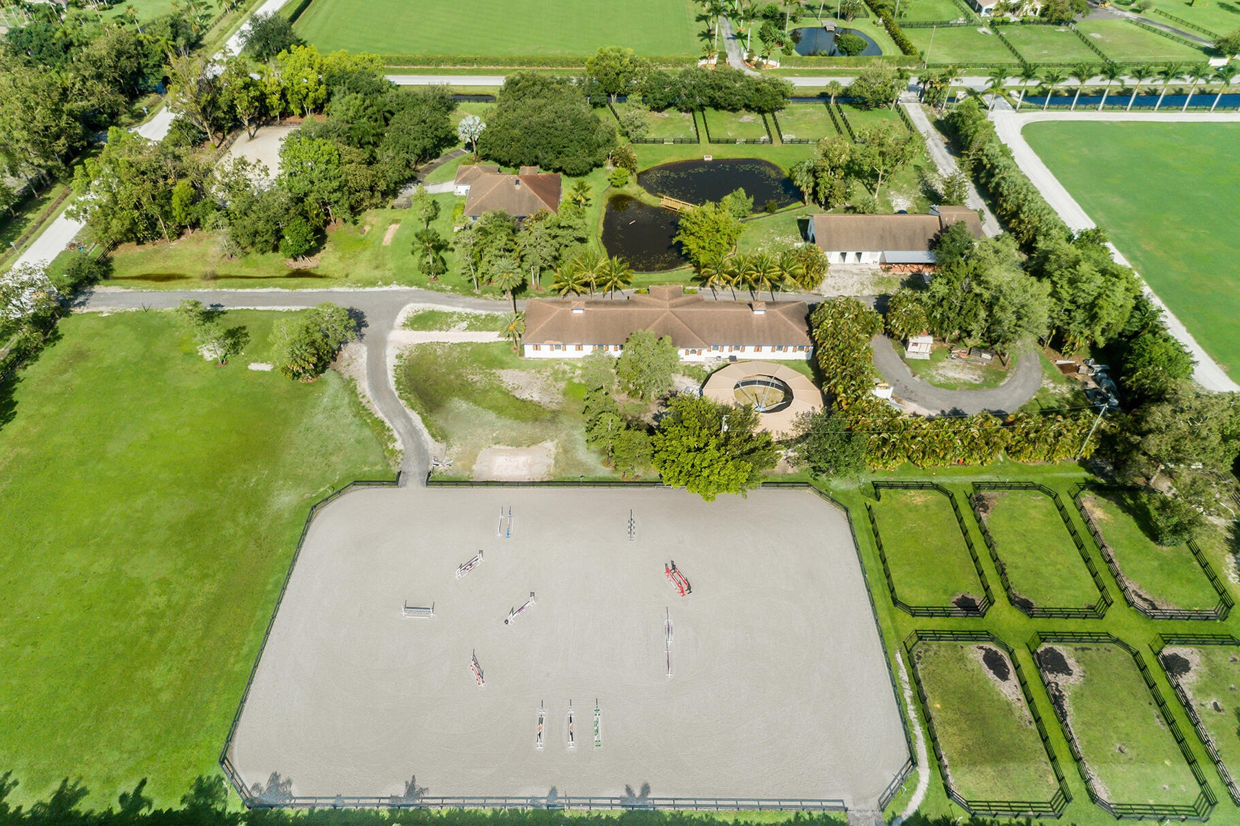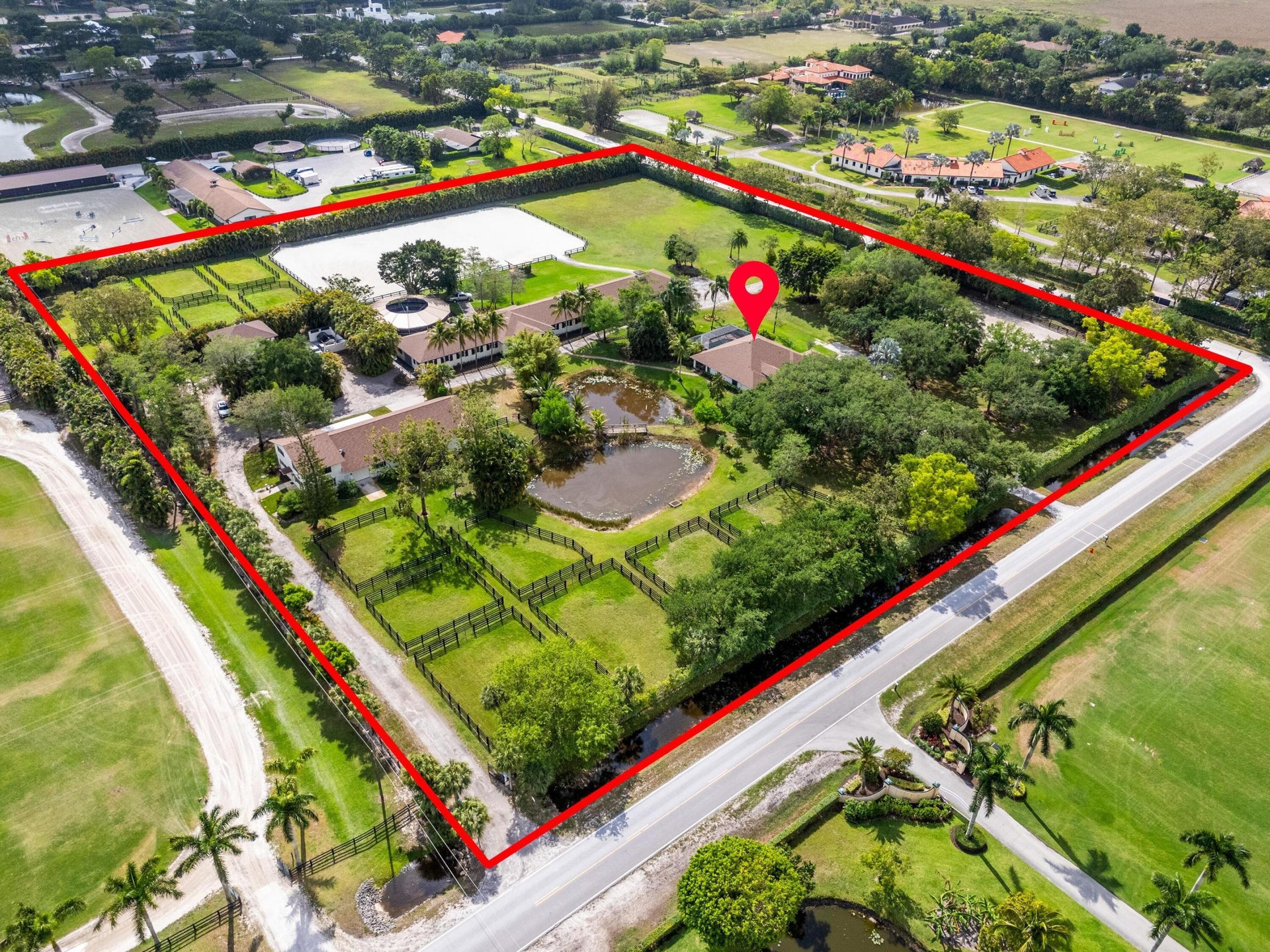 Enjoy the best of both worlds on this exceptional 10 acre equestrian property, ideally located just minutes from Global and WEF while offering the tranquility of Wellington's farm life.