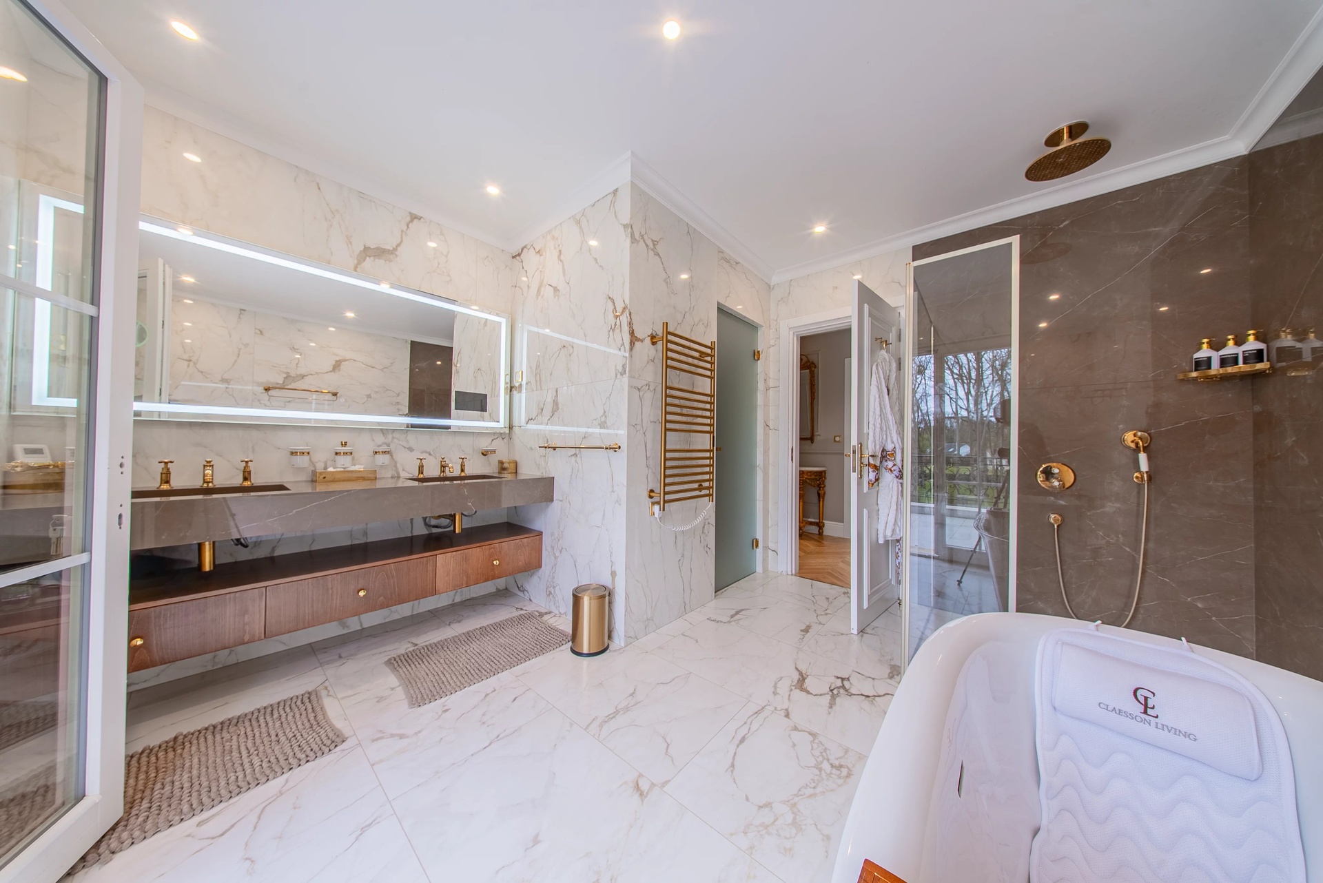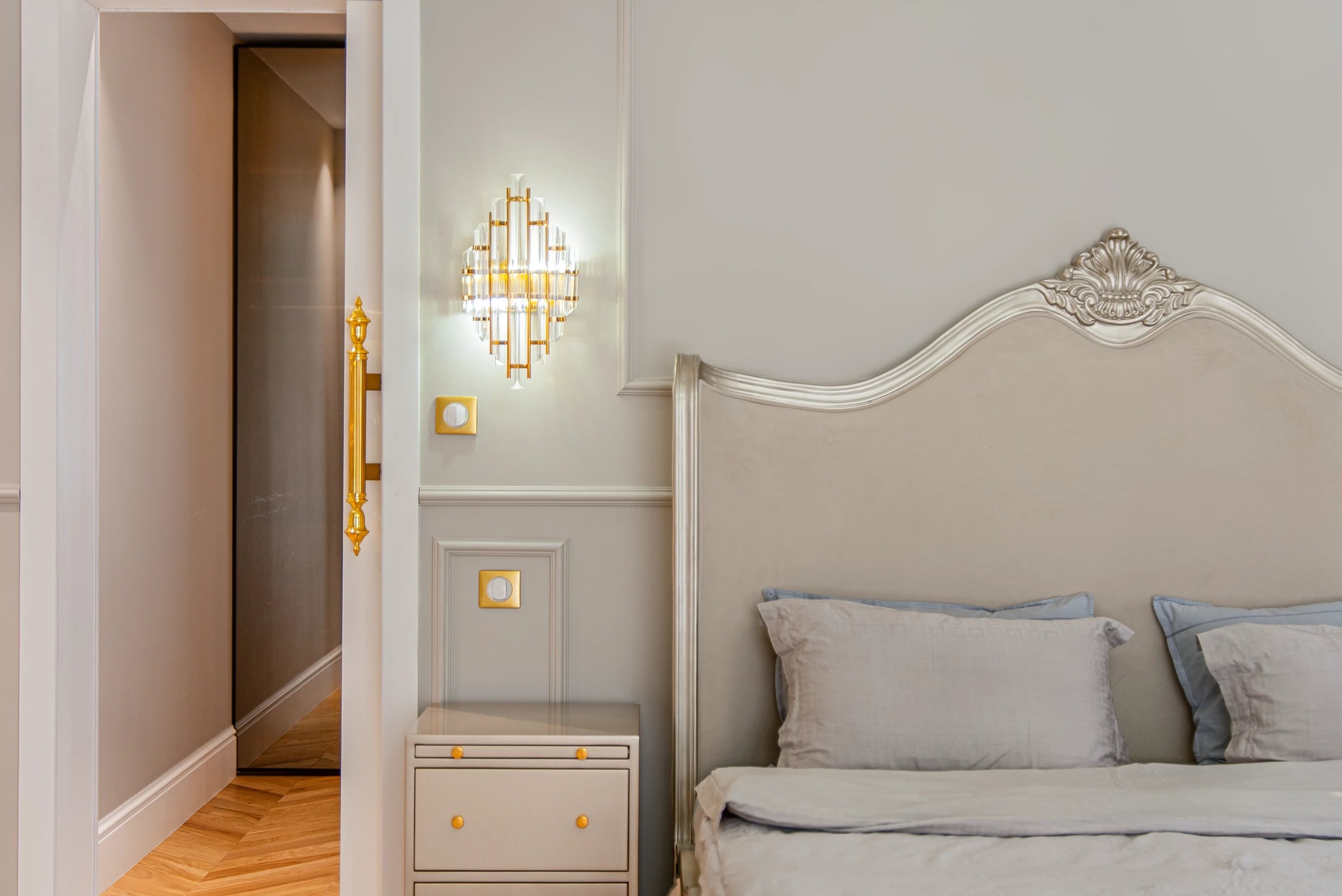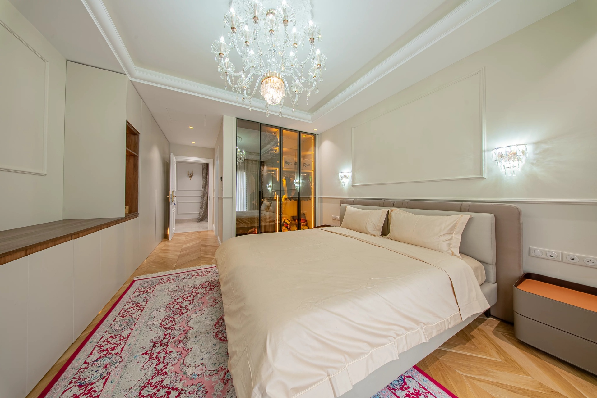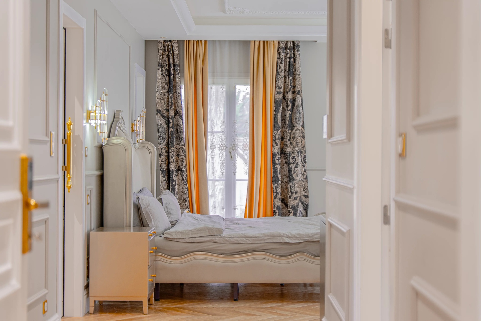 The Master Suite: A true sanctuary, it has a private terrace overlooking the park. It is distinguished by its double dressing rooms (Mr. and Mrs.) with wooden finishes and smoked mirrors, as well as a bathroom of rare finesse.
