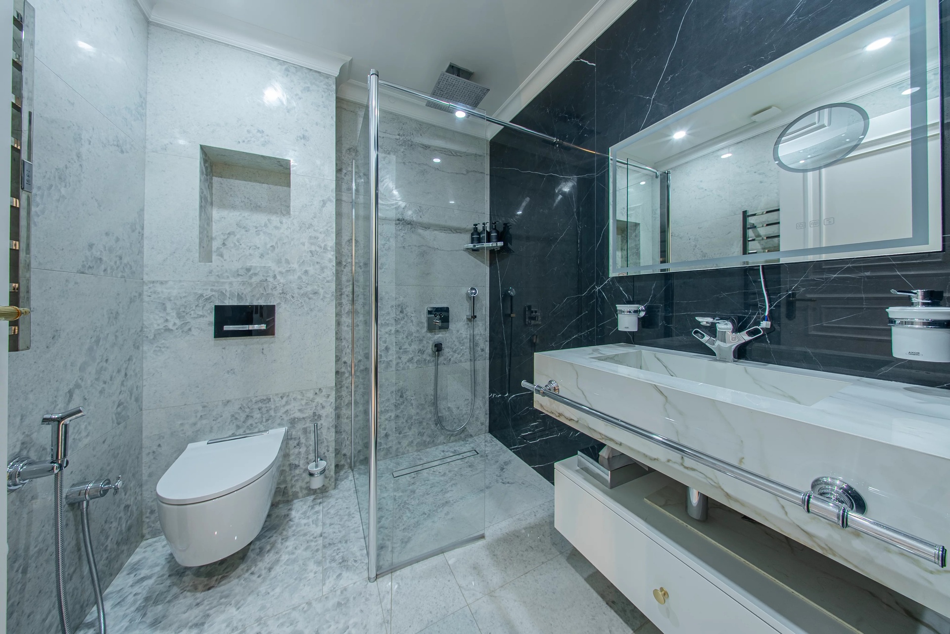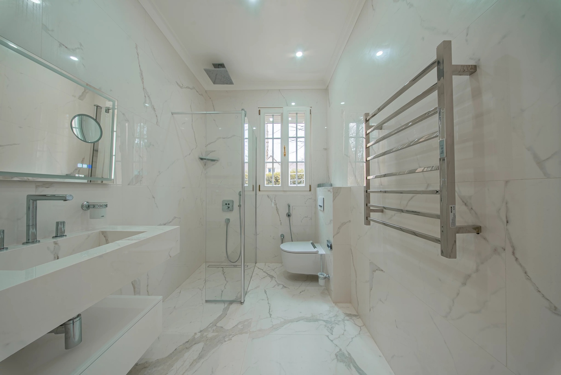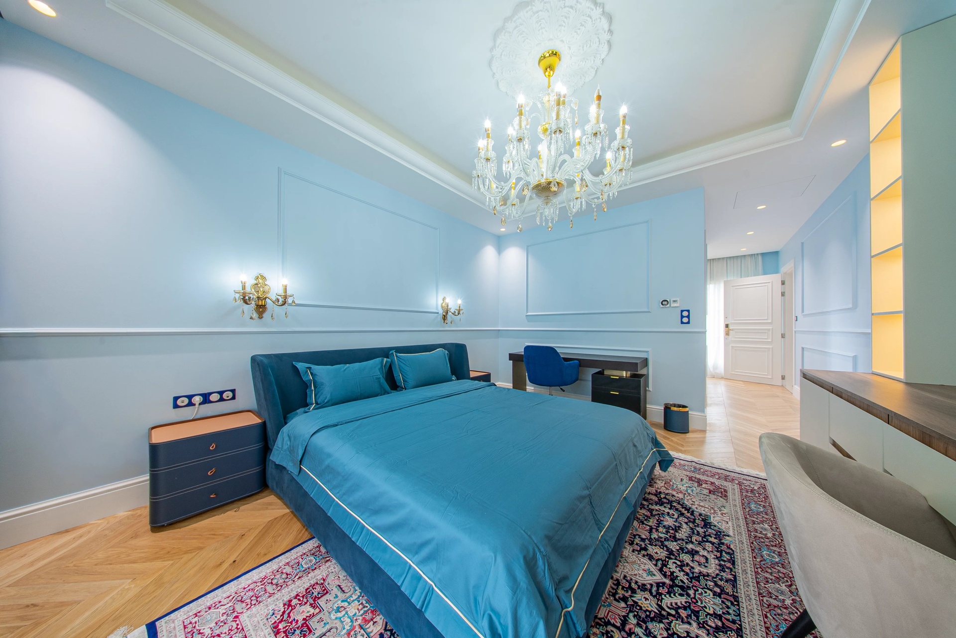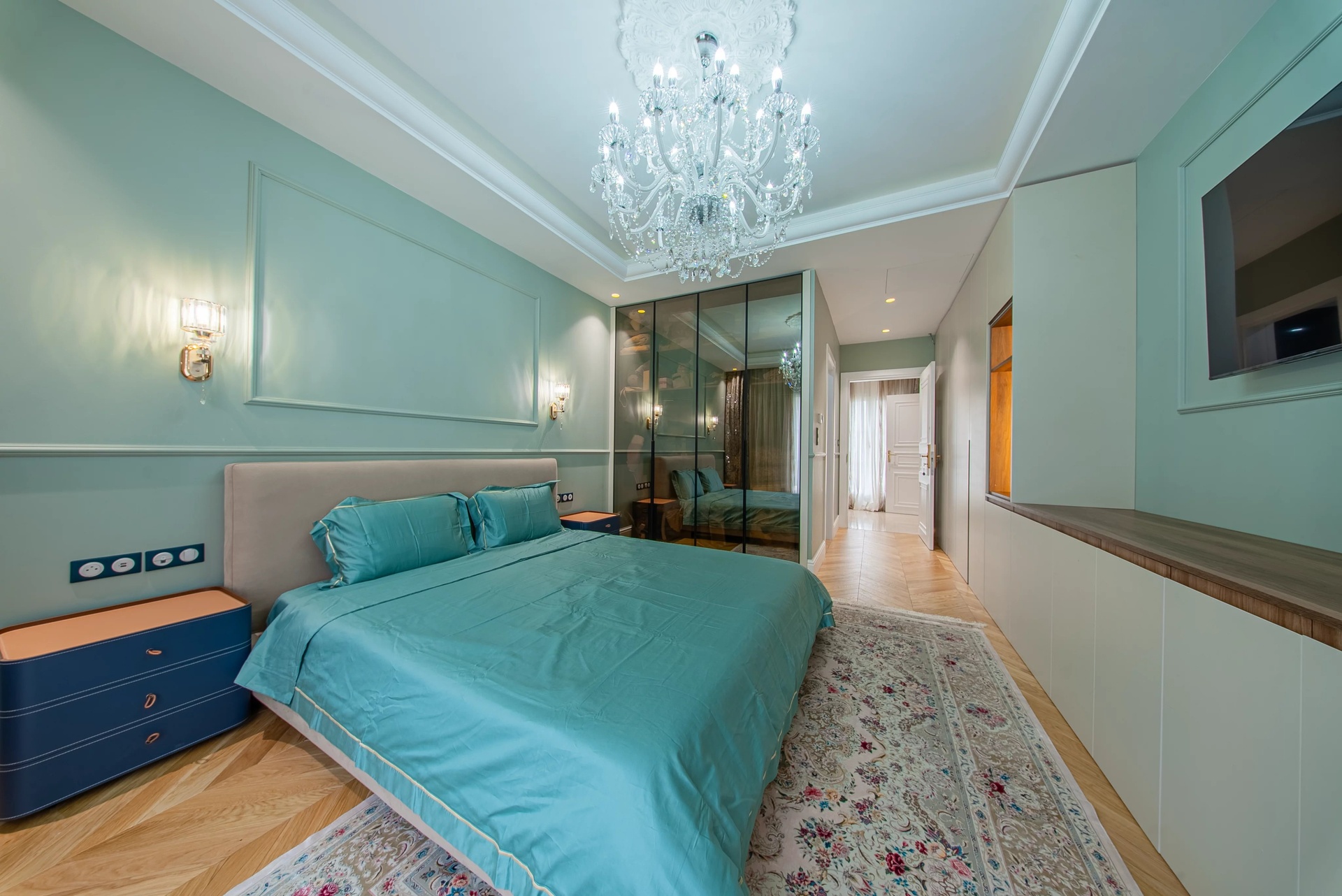 The Master Suite: A true sanctuary, it has a private terrace overlooking the park. It is distinguished by its double dressing rooms (Mr. and Mrs.) with wooden finishes and smoked mirrors, as well as a bathroom of rare finesse.
