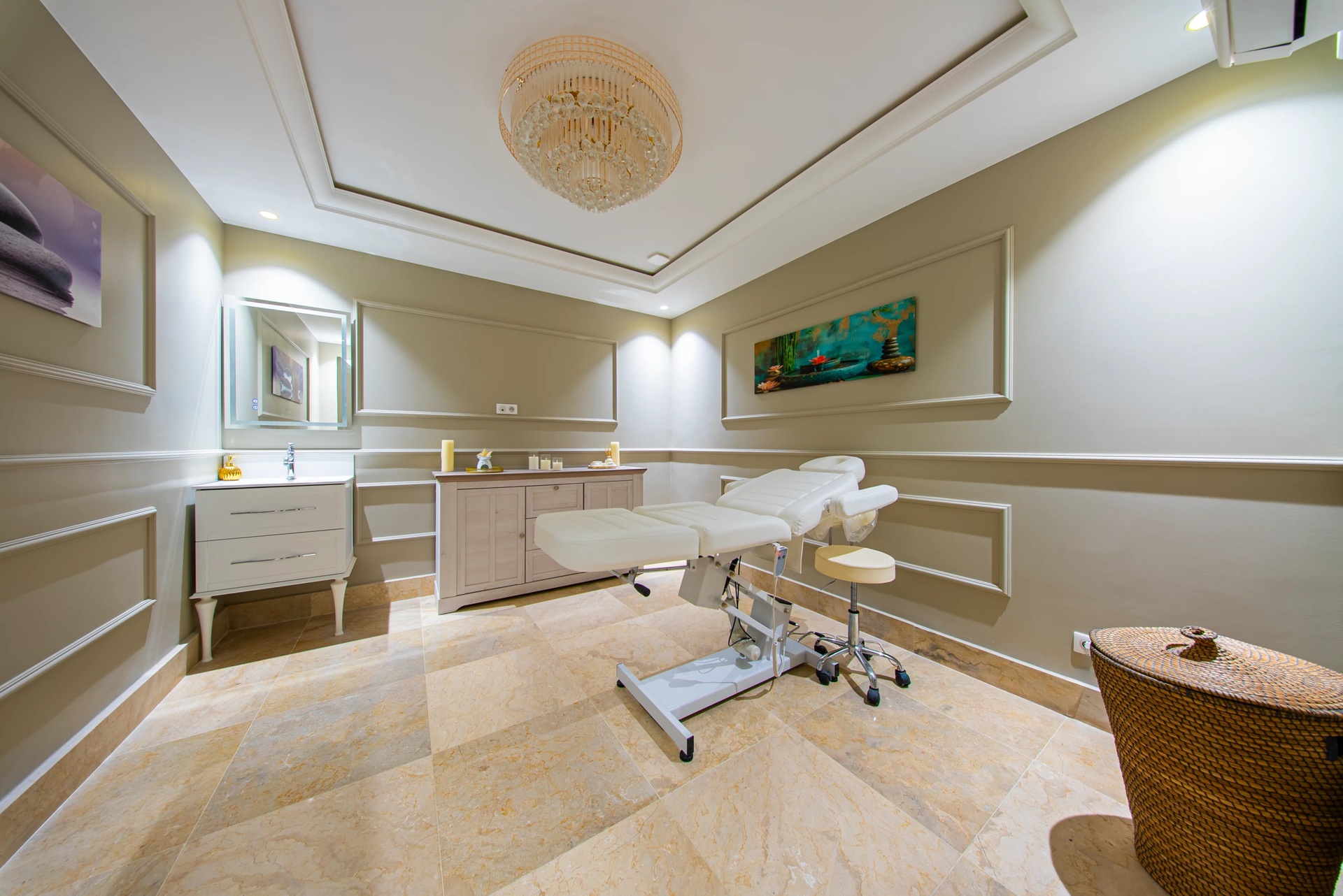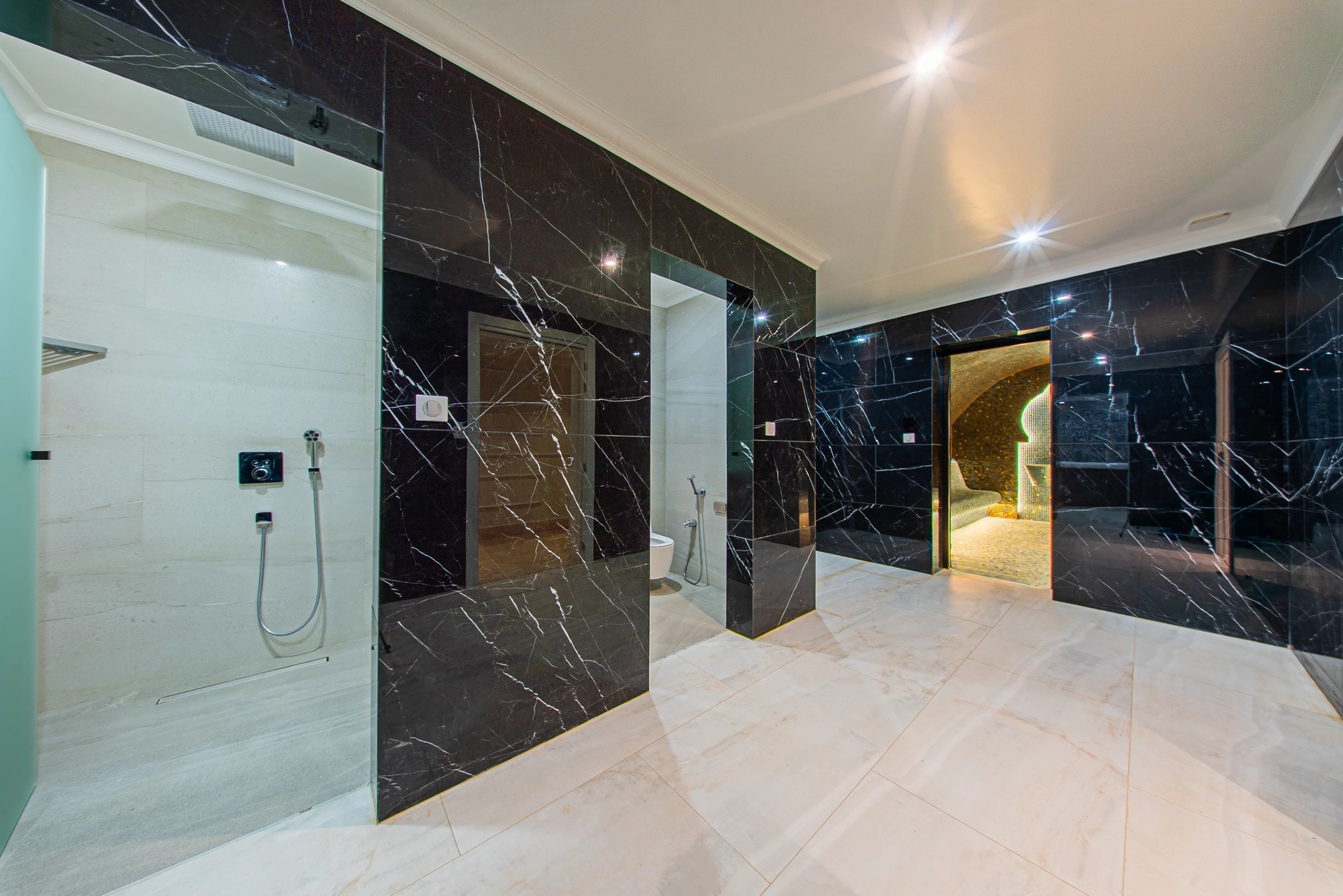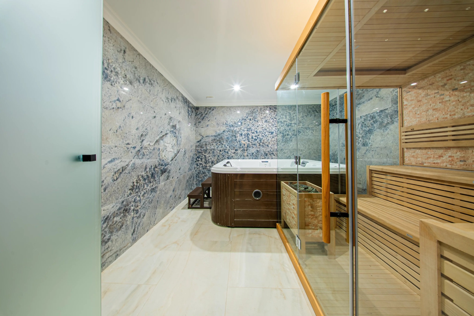 Well-being Area: A luxurious spa including a traditional hammam, a sauna, a jacuzzi, and a dedicated massage room.