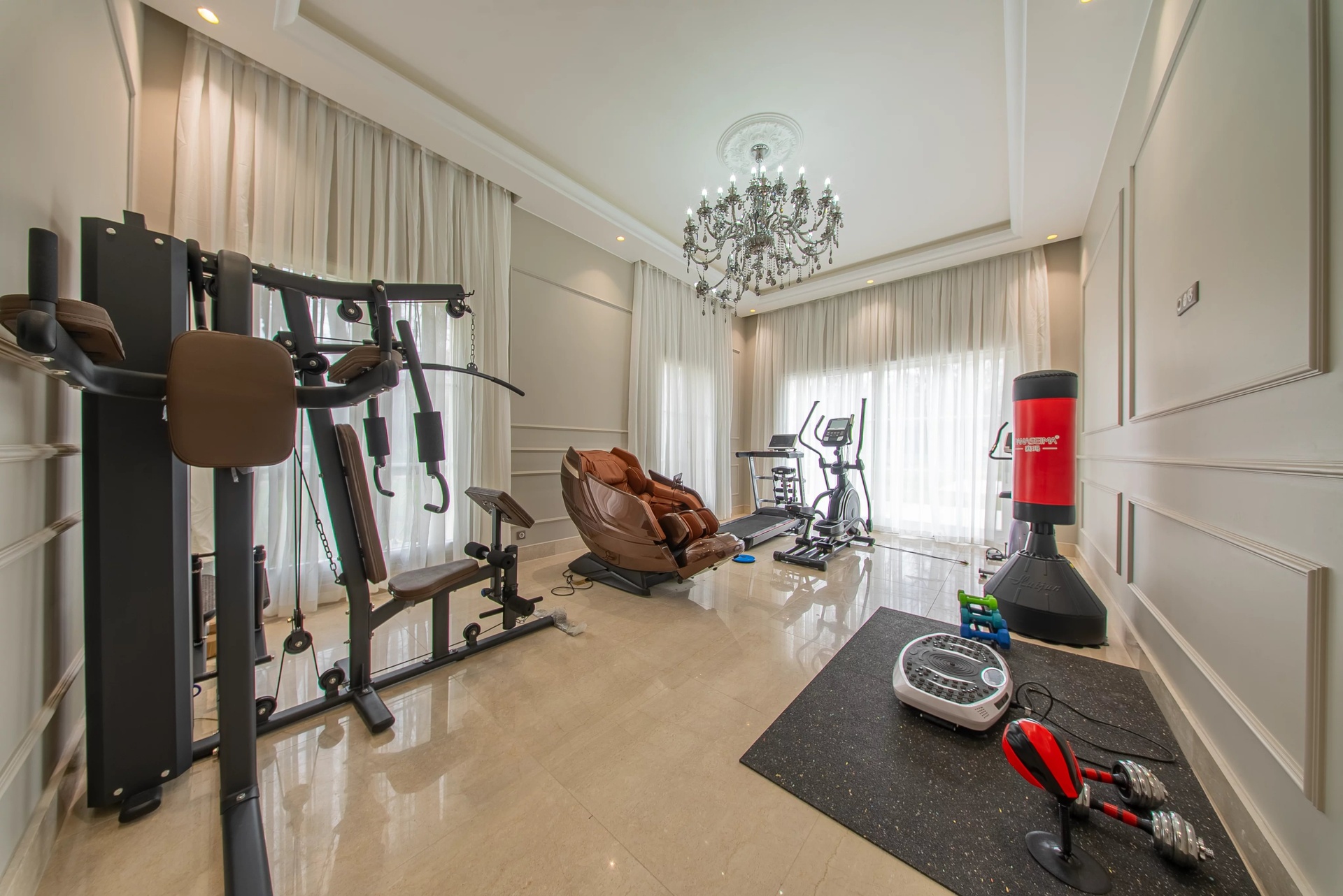 Sports: A fitness room equipped for the most demanding workouts.