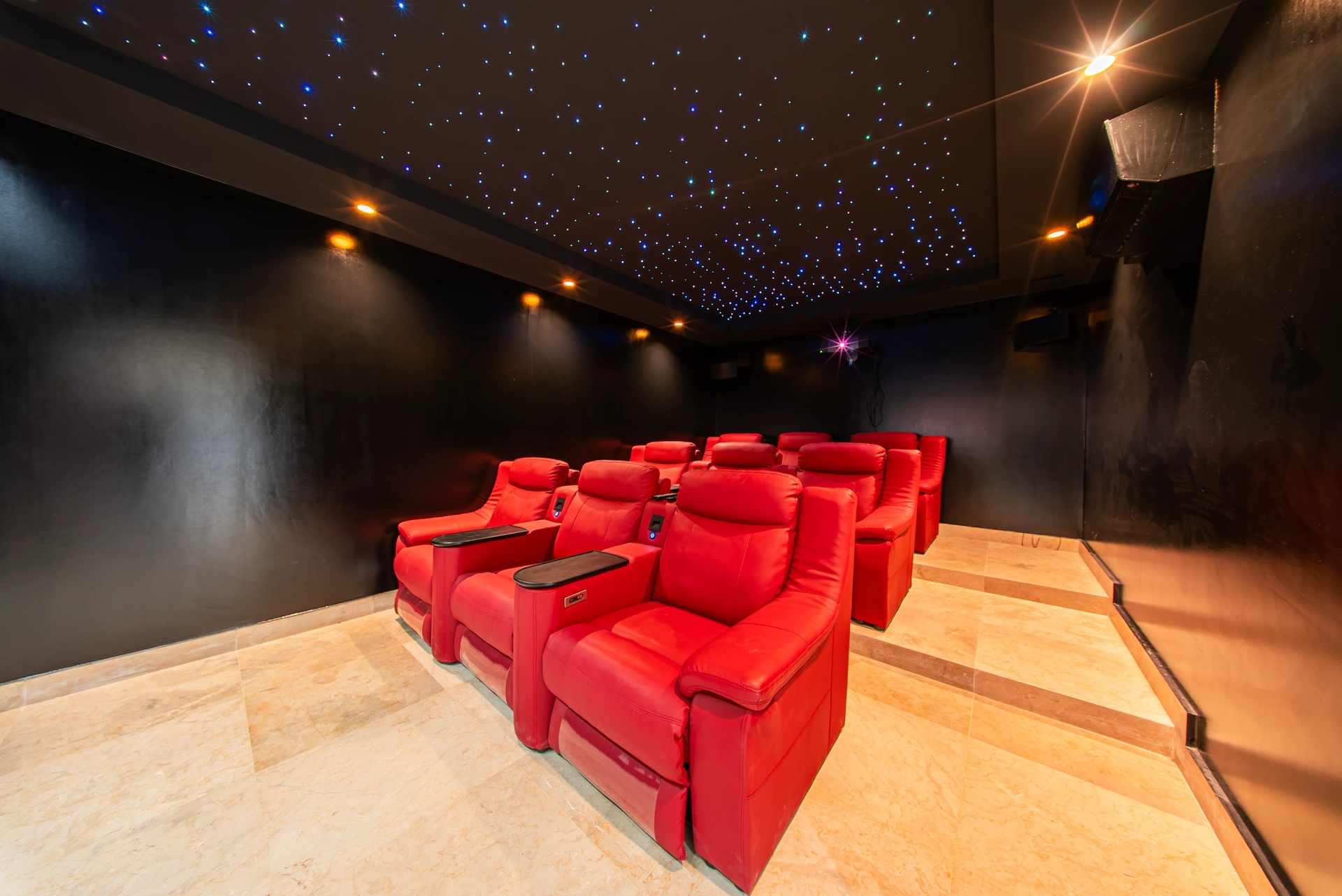Leisure: A private 9-seat cinema for an immersive experience, as well as a very large modular game room according to your wishes (billiards, arcade room, or library).
