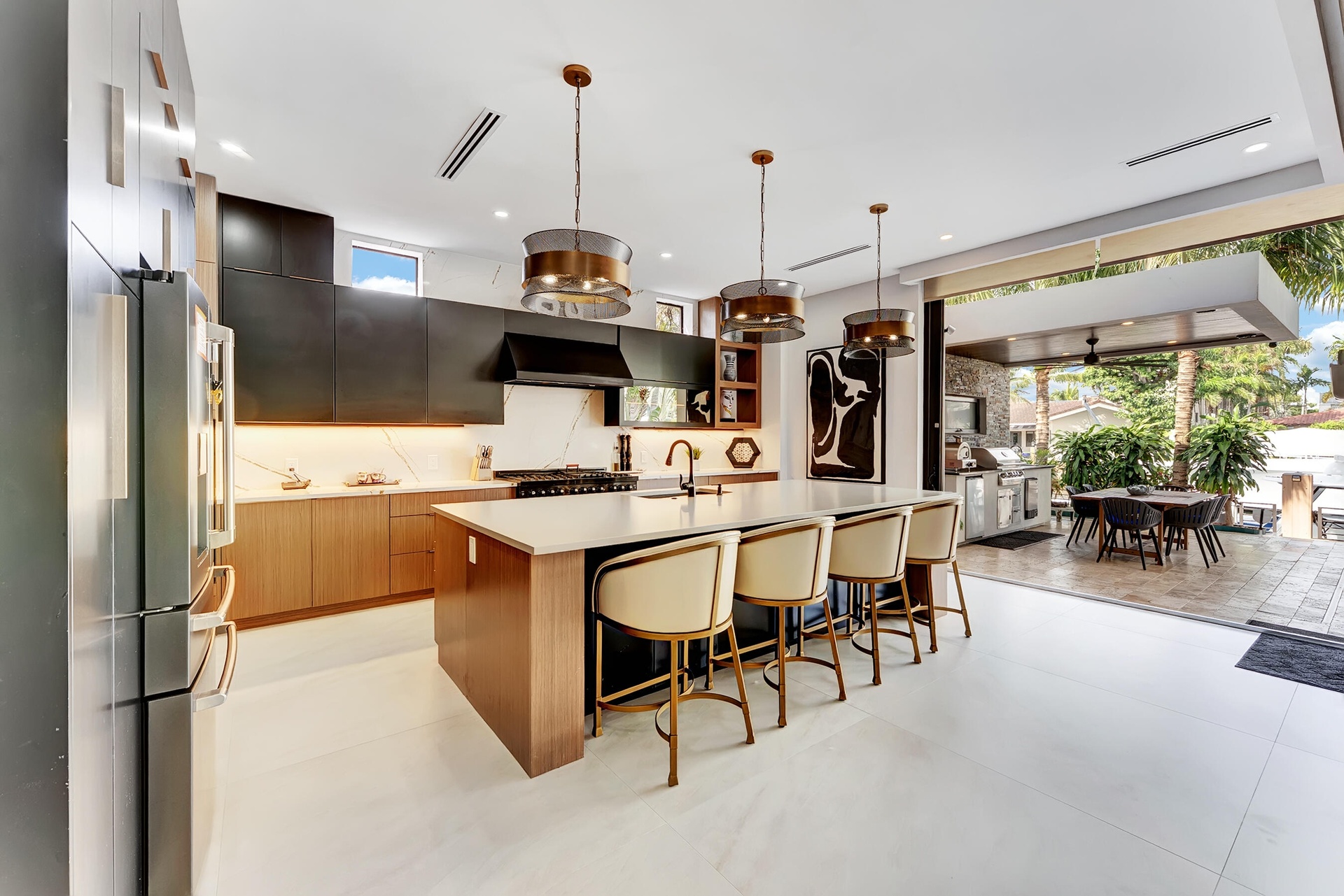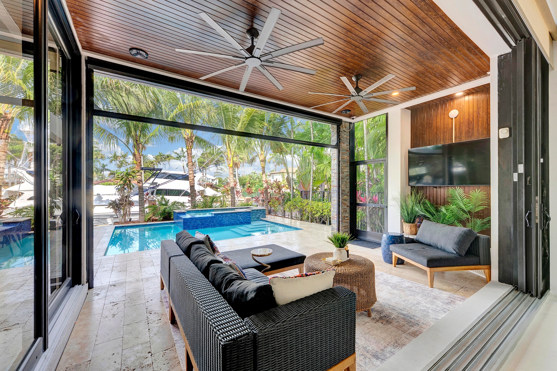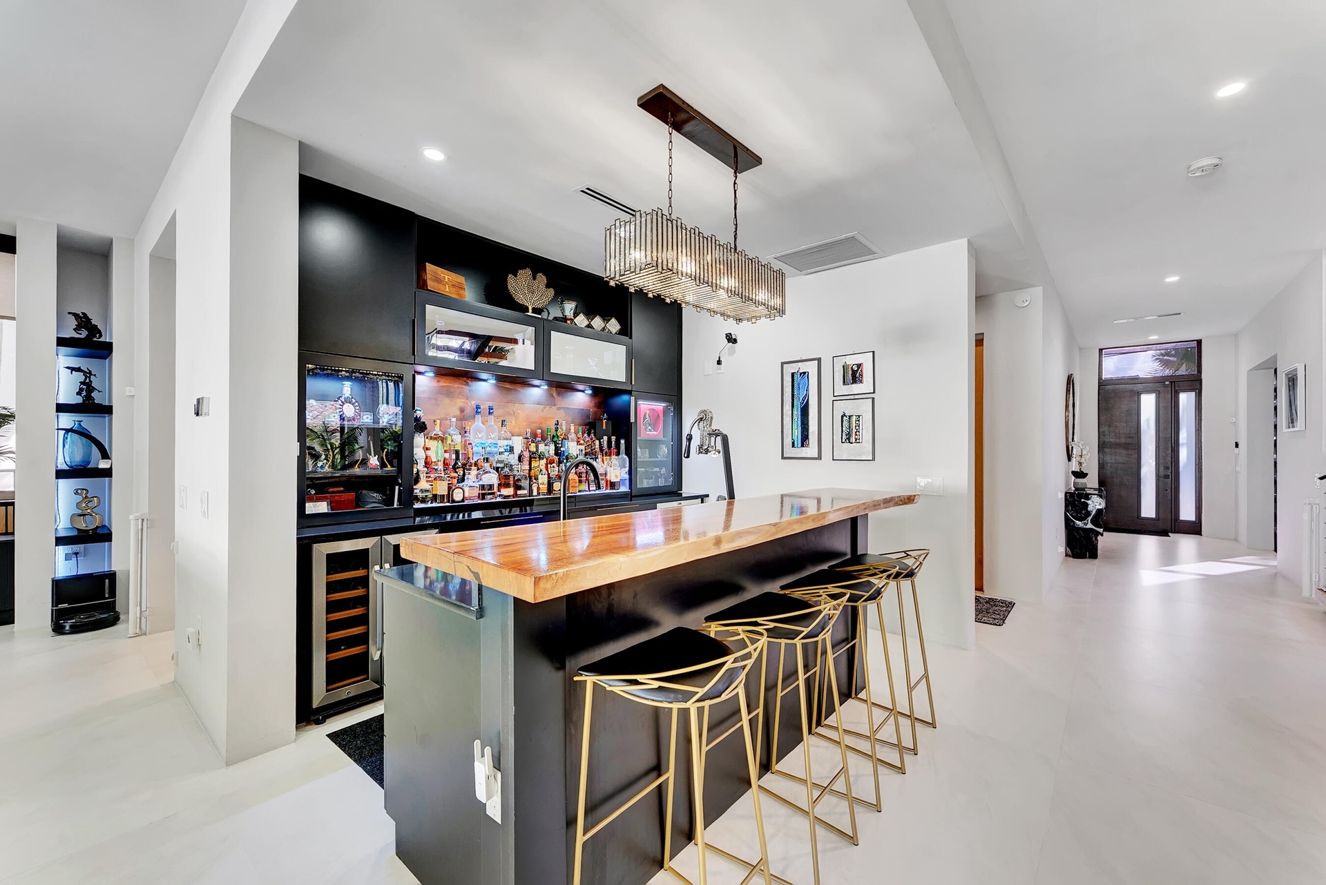 Not your average home on the Las Olas Isles, behind the gates this custom 4-bed, 4.5-bath home spans 4,539 Sqft. Meticulous attention to detail and modern elegance helps define this home, which comes equipped with high-impact windows, 12 camera surveillance system, 48x48 porcelain tiles, quartz counters, 8.5 Tons of AC systems, low E windows with bronze tint a floating staircase over a 170-bottle wine cellar, a bar for entertaining, the kitchen has a huge island, 6 burner gas range that overlooks the family room that flows outside through the 11’ pocket sliders to a screened Lani. Outside you can entertain with your pizza oven & grill, pool and jacuzzi, the 50’ dock is well equipped with 30/50 amp. smart illumination by Lutron & Dals. Live luxuriously in this exquisite Idlewyld residence.