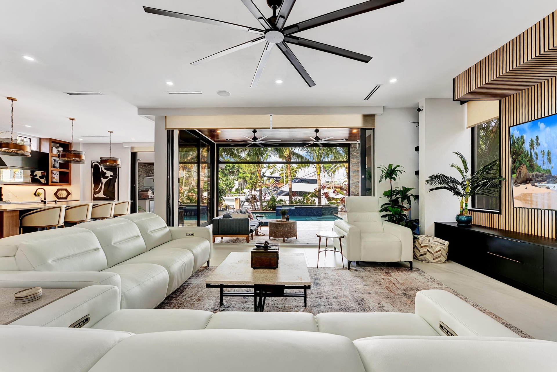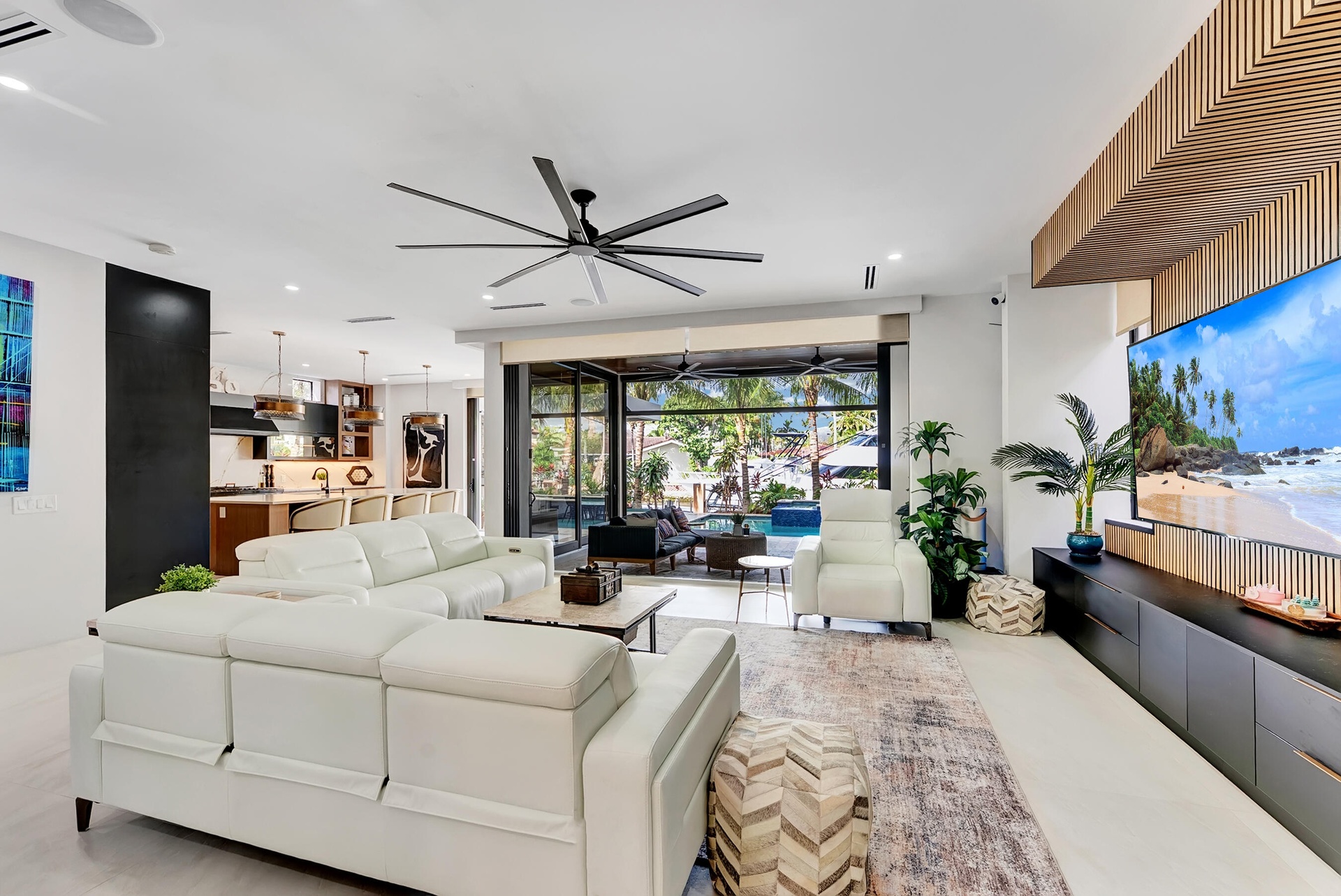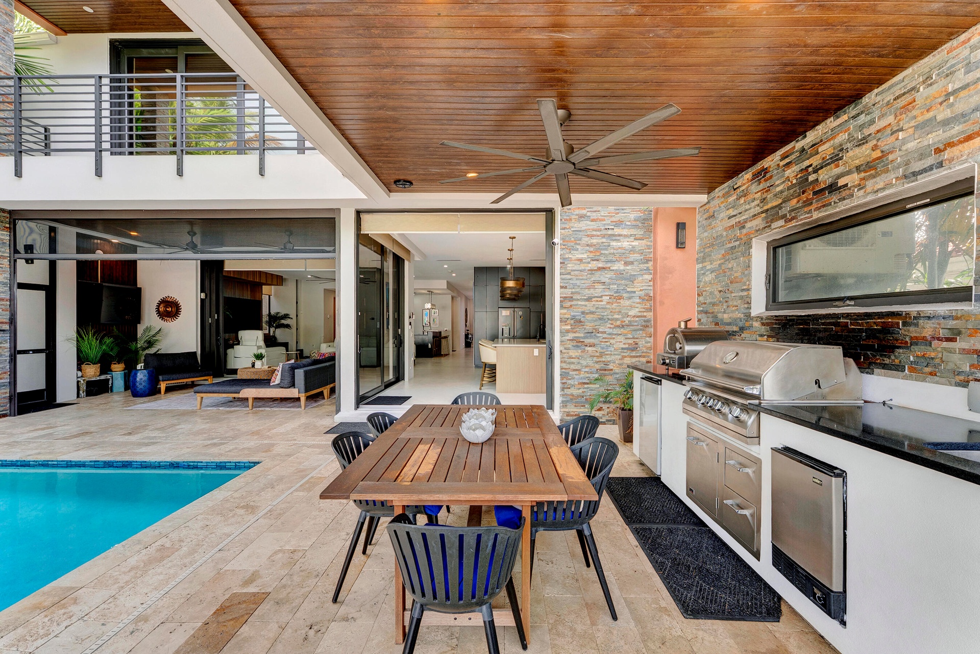 Not your average home on the Las Olas Isles, behind the gates this custom 4-bed, 4.5-bath home spans 4,539 Sqft. Meticulous attention to detail and modern elegance helps define this home, which comes equipped with high-impact windows, 12 camera surveillance system, 48x48 porcelain tiles, quartz counters, 8.5 Tons of AC systems, low E windows with bronze tint a floating staircase over a 170-bottle wine cellar, a bar for entertaining, the kitchen has a huge island, 6 burner gas range that overlooks the family room that flows outside through the 11’ pocket sliders to a screened Lani. Outside you can entertain with your pizza oven & grill, pool and jacuzzi, the 50’ dock is well equipped with 30/50 amp. smart illumination by Lutron & Dals. Live luxuriously in this exquisite Idlewyld residence.
