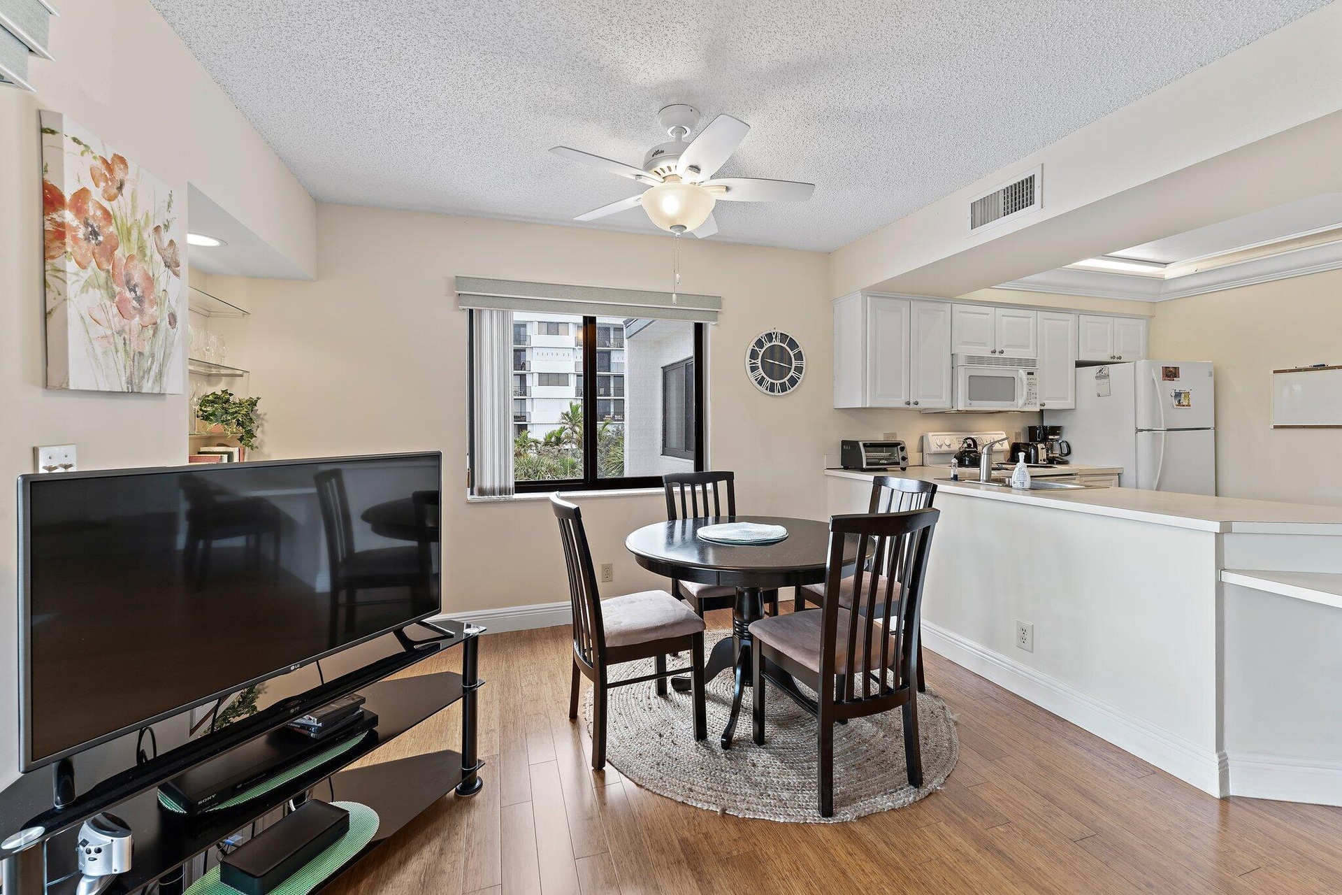 Walk to beach location, close to restaurants, shopping, golf, theater and much more. Charming END unit 2 bedroom 2 bath furnished condo in desirable Jupiter Ocean and Racquet Club. End units have SO much light with extra window in dining room. 2nd Bathroom has Walk- in Shower. This 4th floor unit overlooks the small lake and is only a short walk or bike ride to the beach. Minutes away from Jupiter's beautiful beaches, Harbourside Place, Riverwalk, restaurants, theaters and shopping.
