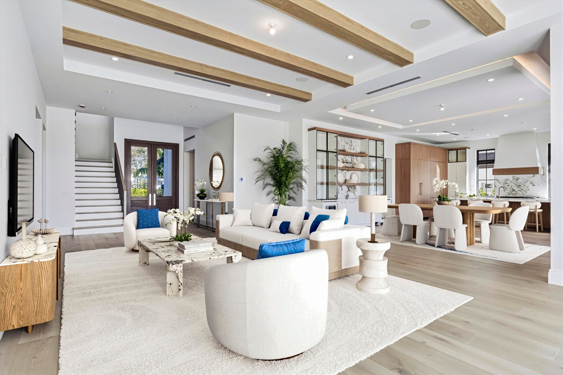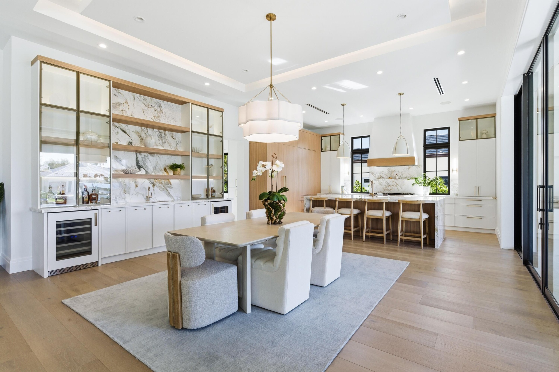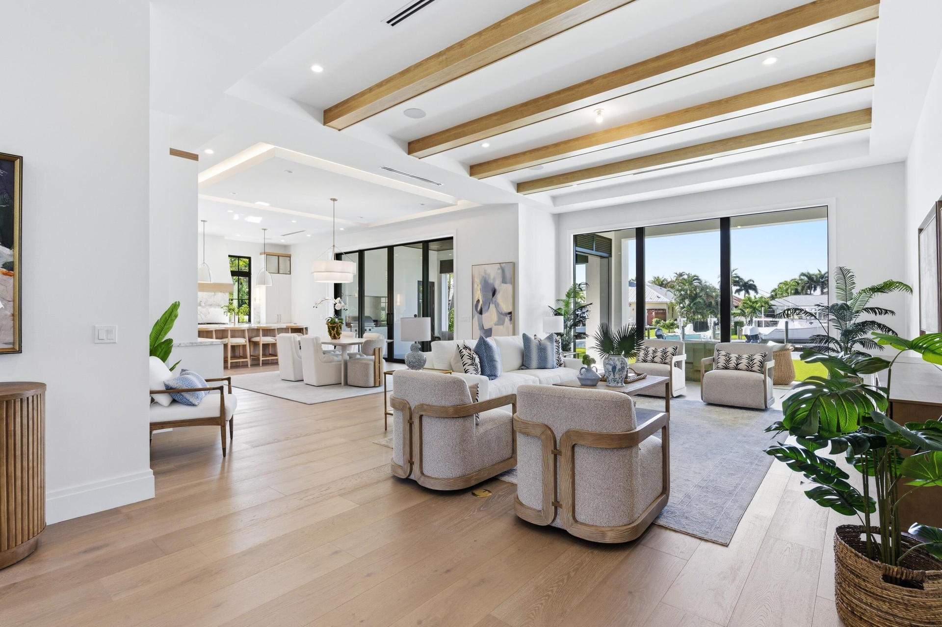 A rare expression of modern coastal luxury, this brand-new 2026 Foster Banyan estate sits on 71 feet of pristine waterfront with direct Intracoastal and ocean access--offering the ultimate South Florida boating lifestyle with no fixed bridges. Designed for both grand entertaining and everyday comfort, this CBS two-story residence blends architectural elegance with resort-style outdoor living. Custom solid mahogany double doors open to light-filled interiors featuring wide-plank white oak floors, stained beam accents, expansive picture windows, and pocket sliders that dissolve the boundary between indoors and out. The showpiece kitchen stuns with Bently Gold marble countertops and backsplash, a statement island, Thermador appliance suite, custom pantry/coffee station, and an adjoining wet bar with dual wine coolers and ice maker.