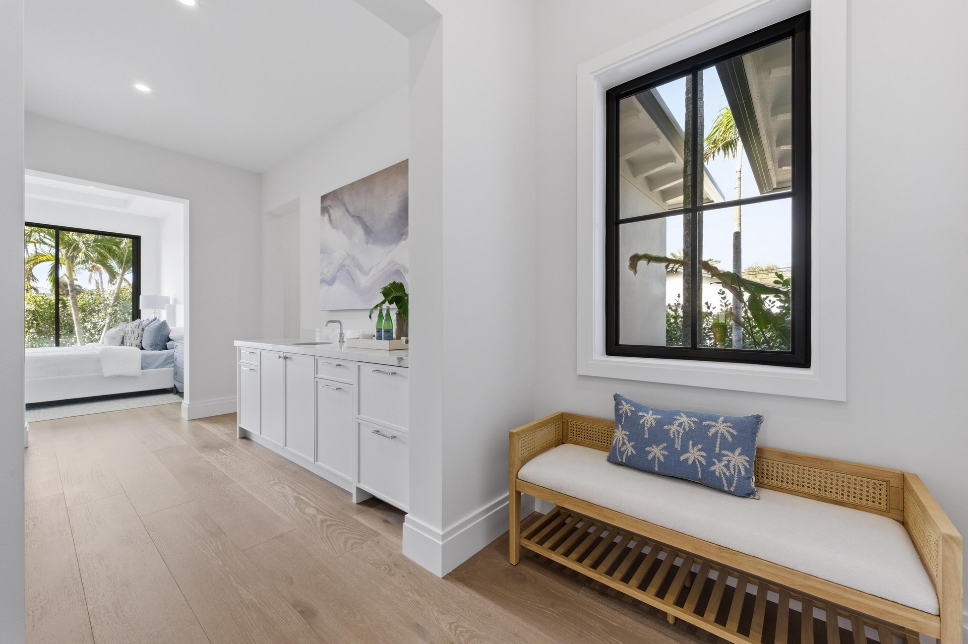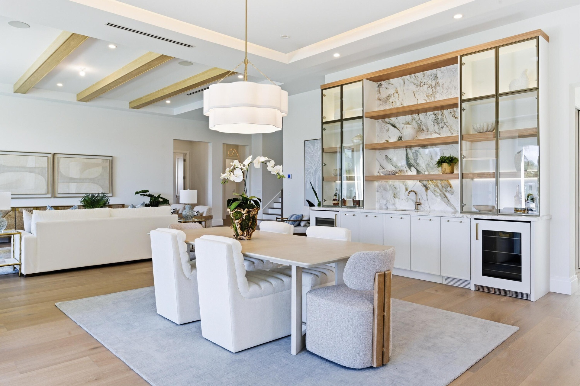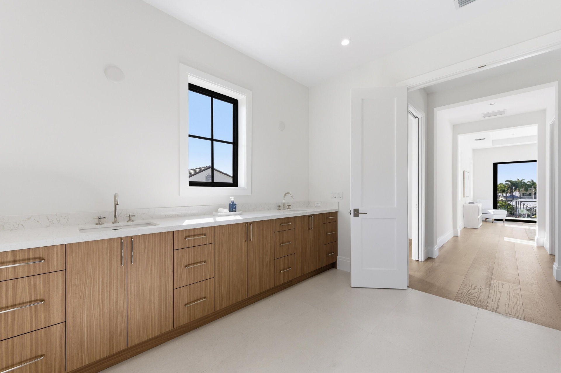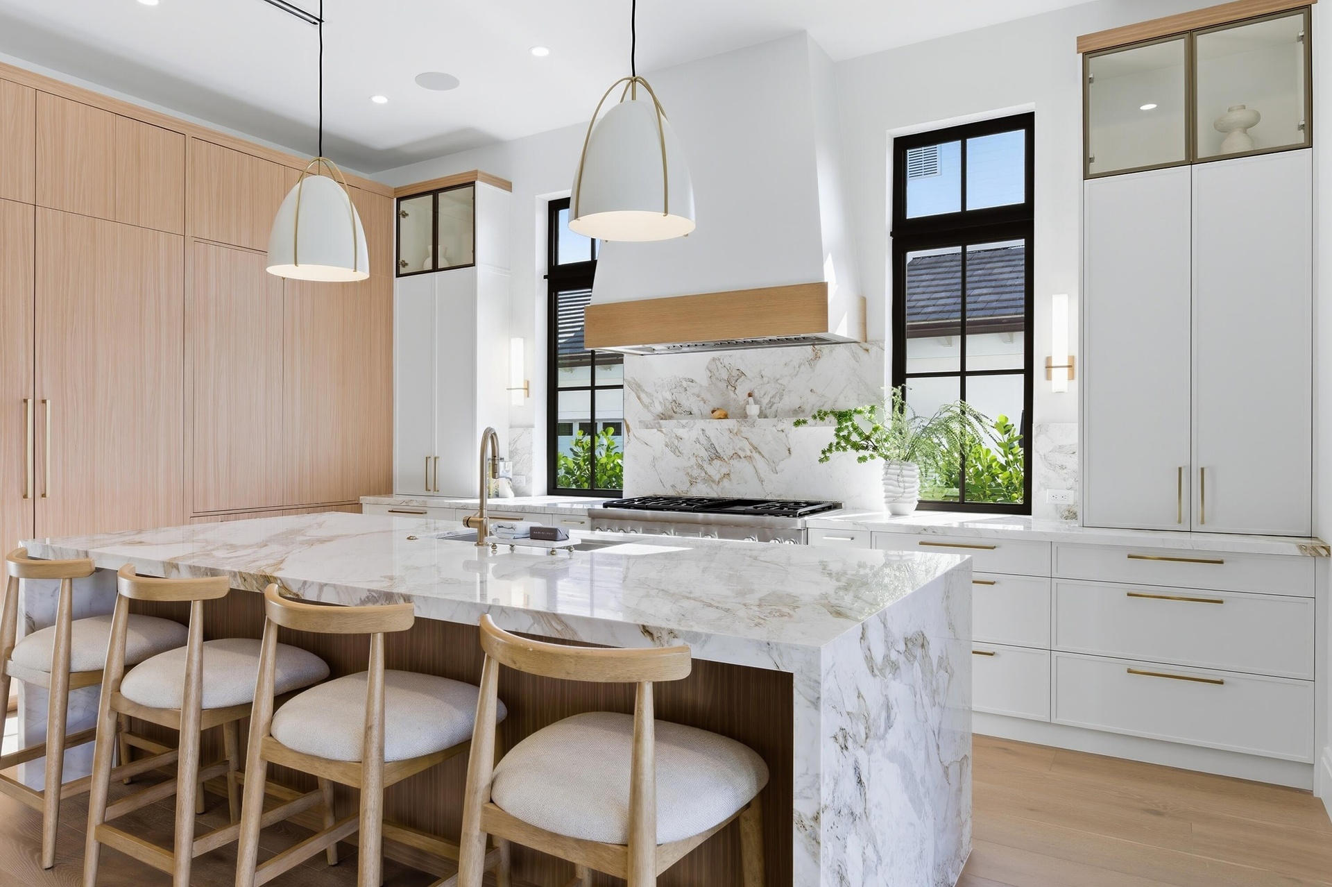 A rare expression of modern coastal luxury, this brand-new 2026 Foster Banyan estate sits on 71 feet of pristine waterfront with direct Intracoastal and ocean access--offering the ultimate South Florida boating lifestyle with no fixed bridges. Designed for both grand entertaining and everyday comfort, this CBS two-story residence blends architectural elegance with resort-style outdoor living. Custom solid mahogany double doors open to light-filled interiors featuring wide-plank white oak floors, stained beam accents, expansive picture windows, and pocket sliders that dissolve the boundary between indoors and out. The showpiece kitchen stuns with Bently Gold marble countertops and backsplash, a statement island, Thermador appliance suite, custom pantry/coffee station, and an adjoining wet bar with dual wine coolers and ice maker.