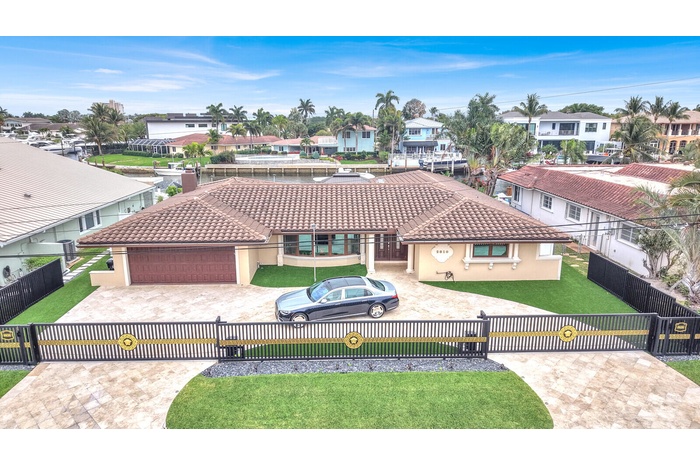 Indulge in the pinnacle of South Florida waterfront living with this exceptional 3-bedroom, 3-bathroom residence in the prestigious enclave of Venetian Isles of Lighthouse Point. Perfectly positioned along a serene canal, this home blends refined elegance with effortless indoor-outdoor living, offering a lifestyle reserved for the most discerning buyer. Step inside to discover a thoughtfully designed, open-concept layout adorned with marble and rich hardwood flooring, creating a seamless balance of sophistication and warmth. The expansive living spaces are ideal for both intimate gatherings and grand entertaining, highlighted by a custom wet bar that elevates every occasion. The primary suite is a private sanctuary, featuring a spacious walk-in closet and a beautifully appointed ensuite bath, designed for ultimate comfort and relaxation. Additional guest suites provide ample accommodations, each offering privacy and style. Outdoors, a resort-style oasis awaits. The meticulously curated backyard showcases a heated, sparkling pool, an above-ground spa, and a fully equipped summer kitchen with BBQ—perfect for entertaining under the South Florida sun. Lush landscaping and premium turf enhance the ambiance, while multiple lounging areas invite you to unwind in total privacy. For boating enthusiasts, this property is truly unparalleled. Boasting 100 feet of prime waterfrontage, a private dock, and direct canal access just moments from the prestigious Lighthouse Point Yacht Club, you're only a short 15-minute cruise to the open ocean via the Hillsboro Inlet. Enjoy the ultimate boating lifestyle—dock-and-dine at local favorites like Nauti Dog Marina Cafe for a perfect Sunday brunch by water. Additional highlights include a 2018 roof and a striking motorized designer gate, delivering both peace of mind and elevated curb appeal. This is more than a home—it's a statement of luxury waterfront living in one of South Florida's most coveted boating communities.