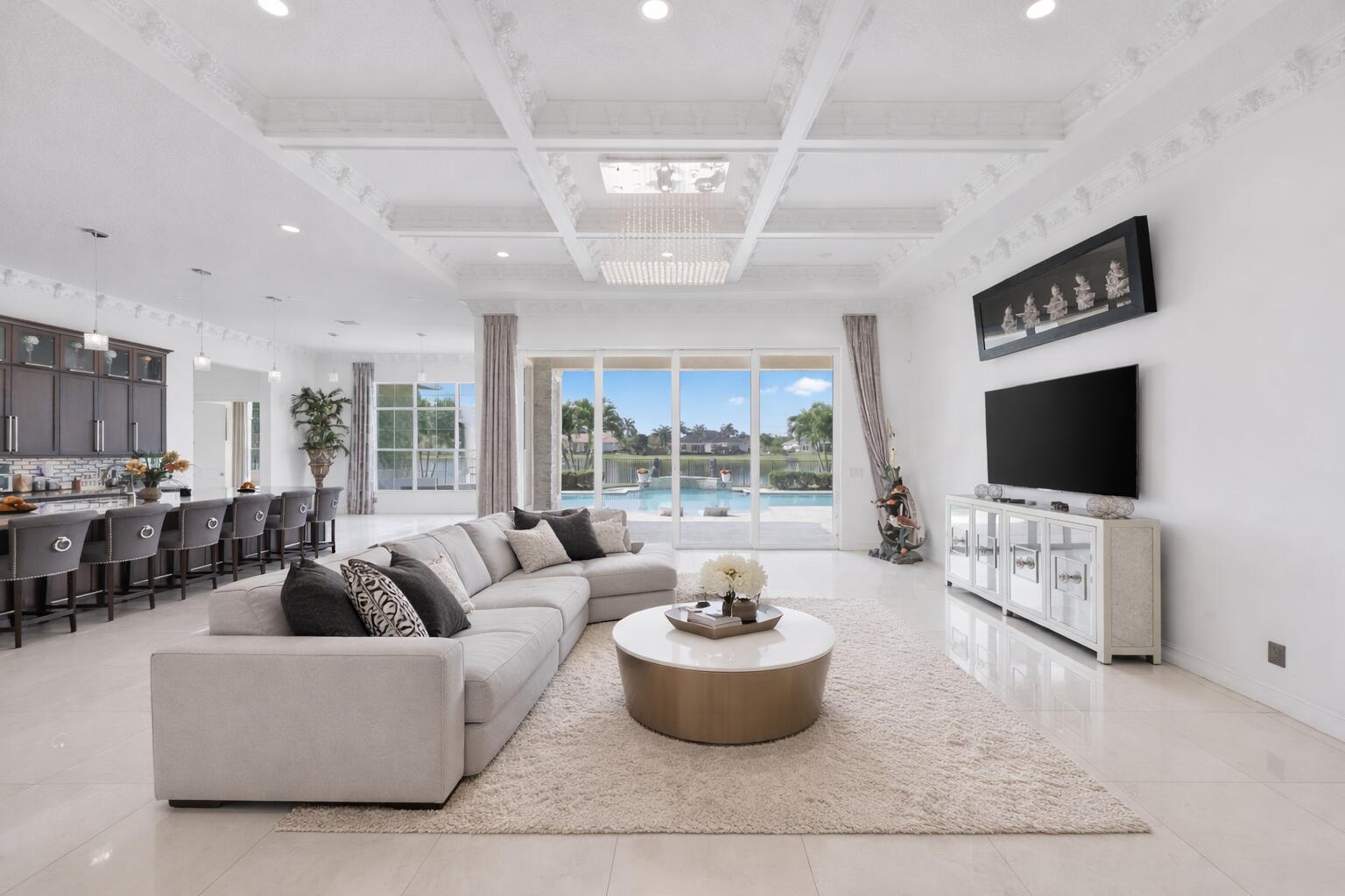 Masterfully reimagined & crafted for luxurious living, this 4-bed | 4-bath estate in the prestigious gated enclave of Sterling Ranch embodies modern elegance at every turn. Nestled on a sprawling homesite, this custom residence showcases soaring ceilings, expansive open-concept living, and curated finishes. The gourmet kitchen boasts a grand quartz island, premium self-cooking Sub-Zero & Monogram appliances, double ovens, and an oversized walk-in pantry. Retreat to a spa-like primary suite with dual walk-in closets, a freestanding soaking tub, & his-and-her shower. Impact windows & doors, plus a 3-car garage, complete the package. Enjoy a solar-heated Salt water pool & lush yard with mango, lemon, and cherry trees. Minutes from top-rated schools, shopping, dining, and the Hard Rock Hotel.