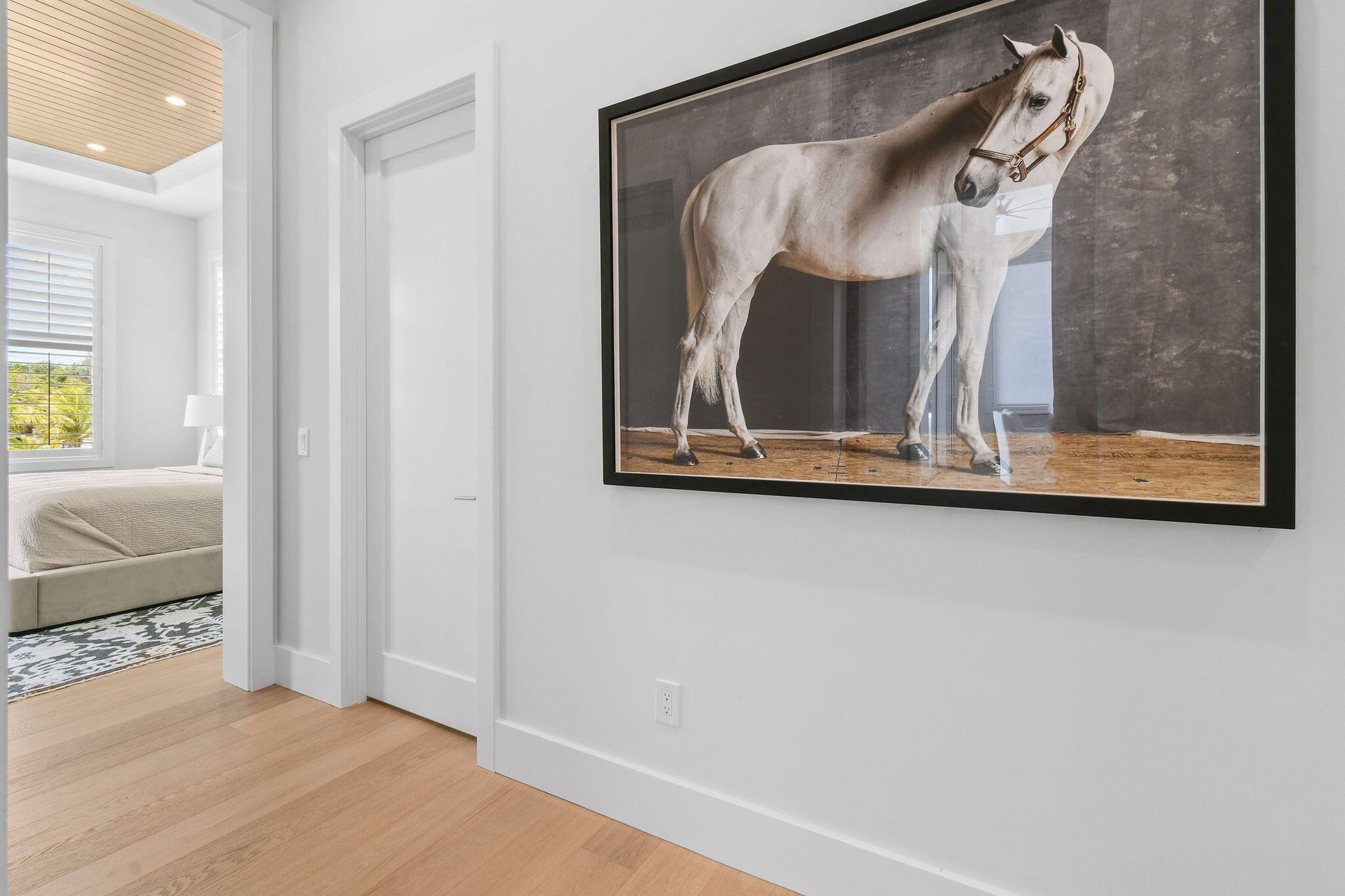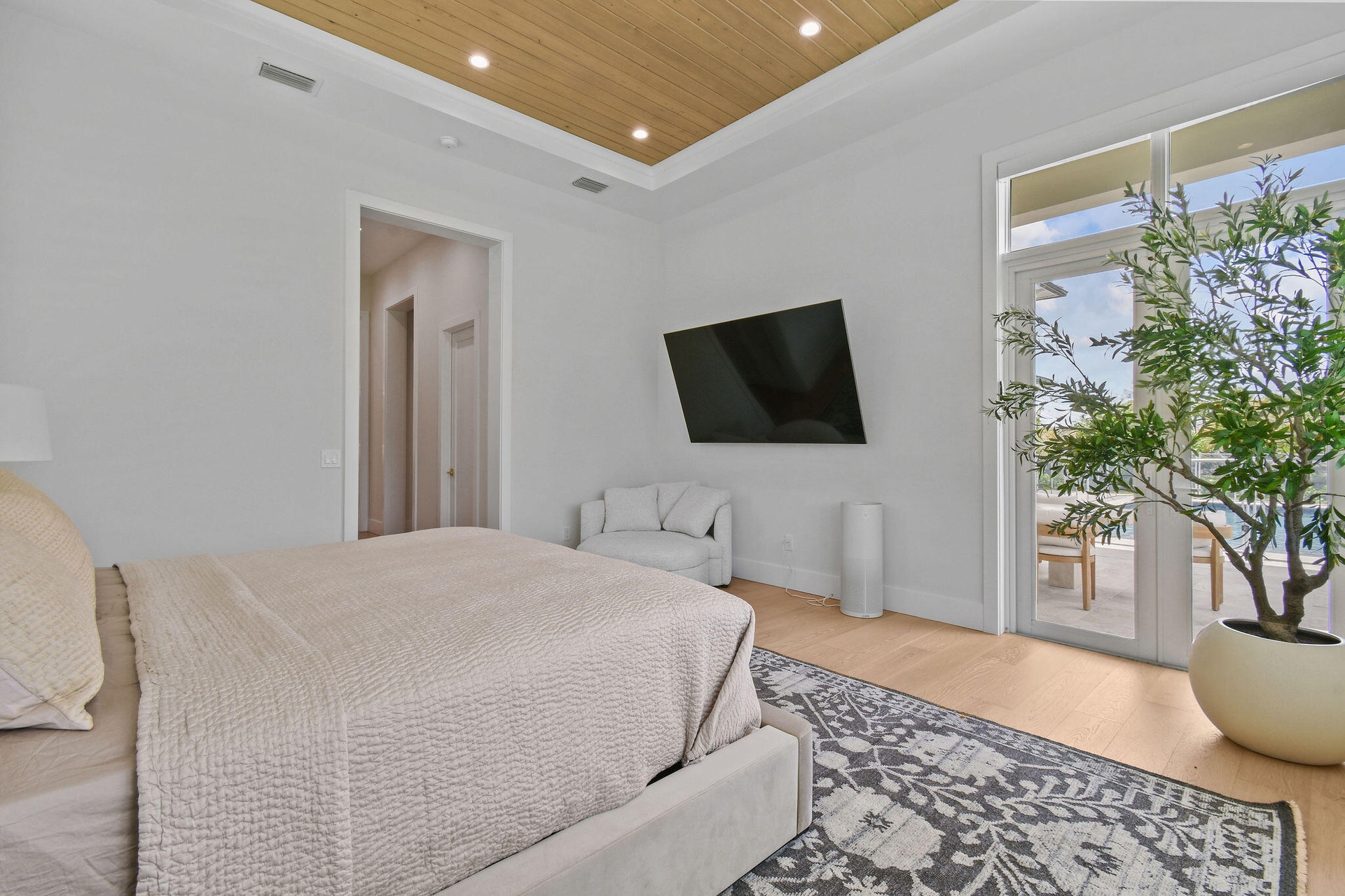 Set on 1.25 acres on one of Jupiter Farms' most desirable fully paved streets, this residence is ideally located toward the front of the community—offering an easy commute without being tucked deep into the Farms. The sellers thoughtfully elevated the home, resulting in a high-and-dry build designed for peace of mind. The property combines modern luxury with privacy and functionality, featuring soaring 16-foot ceilings, wide-plank oak wood floors, custom cabinetry, wood ceiling details, and a chef's kitchen equipped with a GE Monogram appliance package and custom hood.
