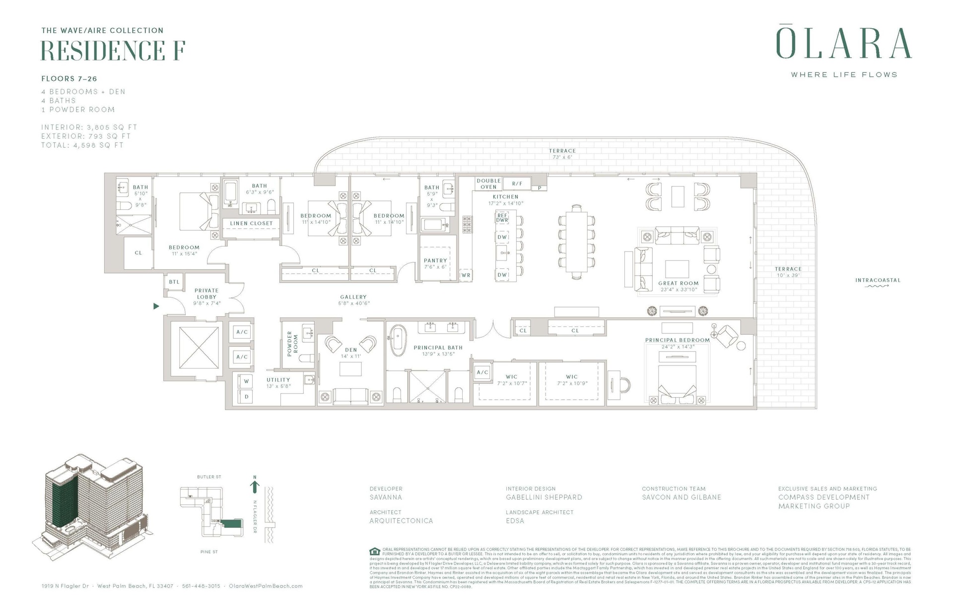 With vertical construction now well underway, Olara introduces a first-of-its-kind luxury waterfront lifestyle along North Flagler Promenade. Thoughtfully designed 2- to 4-bedroom plus den residences by Gabellini Sheppard showcase refined finishes, floor-to-ceiling windows, and sweeping views of the Intracoastal and Atlantic Ocean. Centered on health, wellness, and five-star service, Olara features two acres of world-class amenities, multiple pools, daily fitness and Pilates classes, a Wright Fit Training center, and dining by the world-renowned JoseAndres Group. Managed by ARCH Amenities, creators of Baccarat Residences, this 26-story resort-style sanctuary delivers full-service living one mile from Palm Beach Island with a full-building generator and low HOA fees.