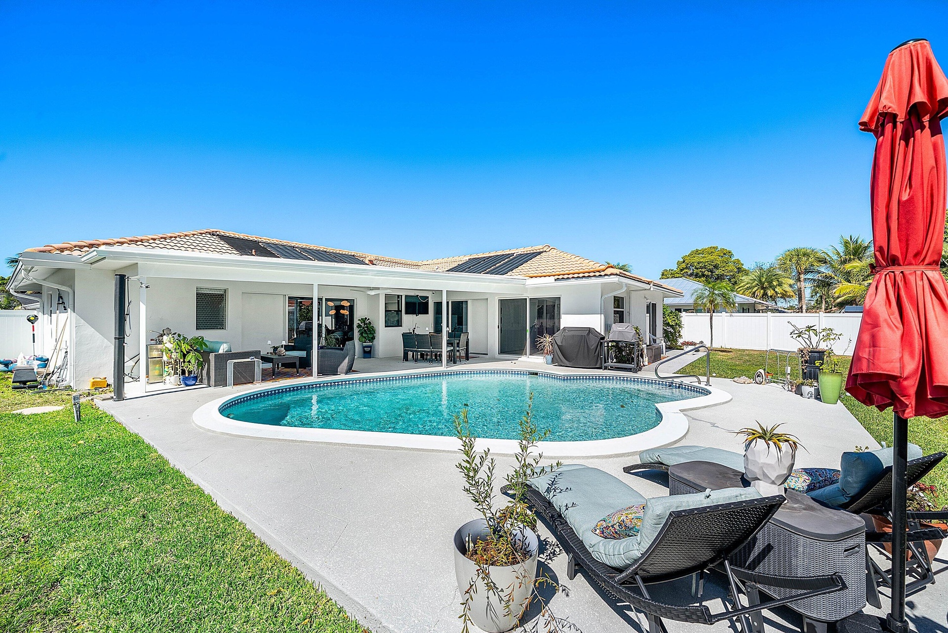 NEW ROOF being installed! Beautifully updated 4-bedroom, 2-bath residence situated on a premium 10,176-sqft lot in one of East Boca Raton's most coveted neighborhoods. This home features a desirable open floor plan with porcelain tile flooring throughout and designer-grade finishes. Stunning kitchen with a quartzite island, built-in buffet, ample cabinetry, and GE Café appliances. Impact windows and doors throughout. All three guest bedrooms feature sliding glass doors. Cast iron drain pipes have been re-lined. Enjoy South Florida living with the large covered lanai overlooking the sparkling pool and expansive backyard. New PVC fence. Just minutes from Boca's premier shopping, dining, and beaches, and zoned for the highly sought-after Addison Mizner.