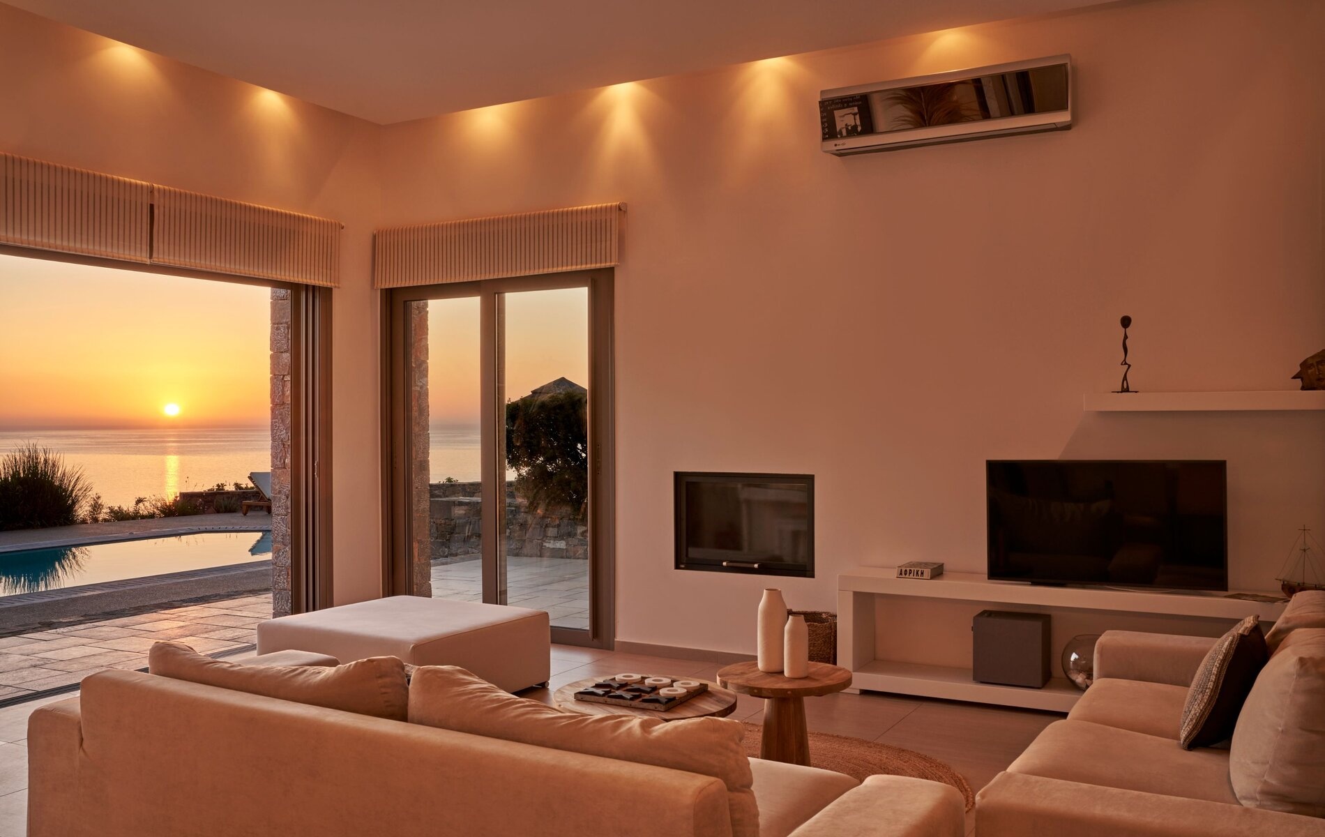 Whether you’re relaxing by the pool, dining outdoors, enjoying the lush garden, or unwinding indoors, the incredible sunsets and panoramic sea views are always within sight- making this villa a truly exceptional home in Crete.