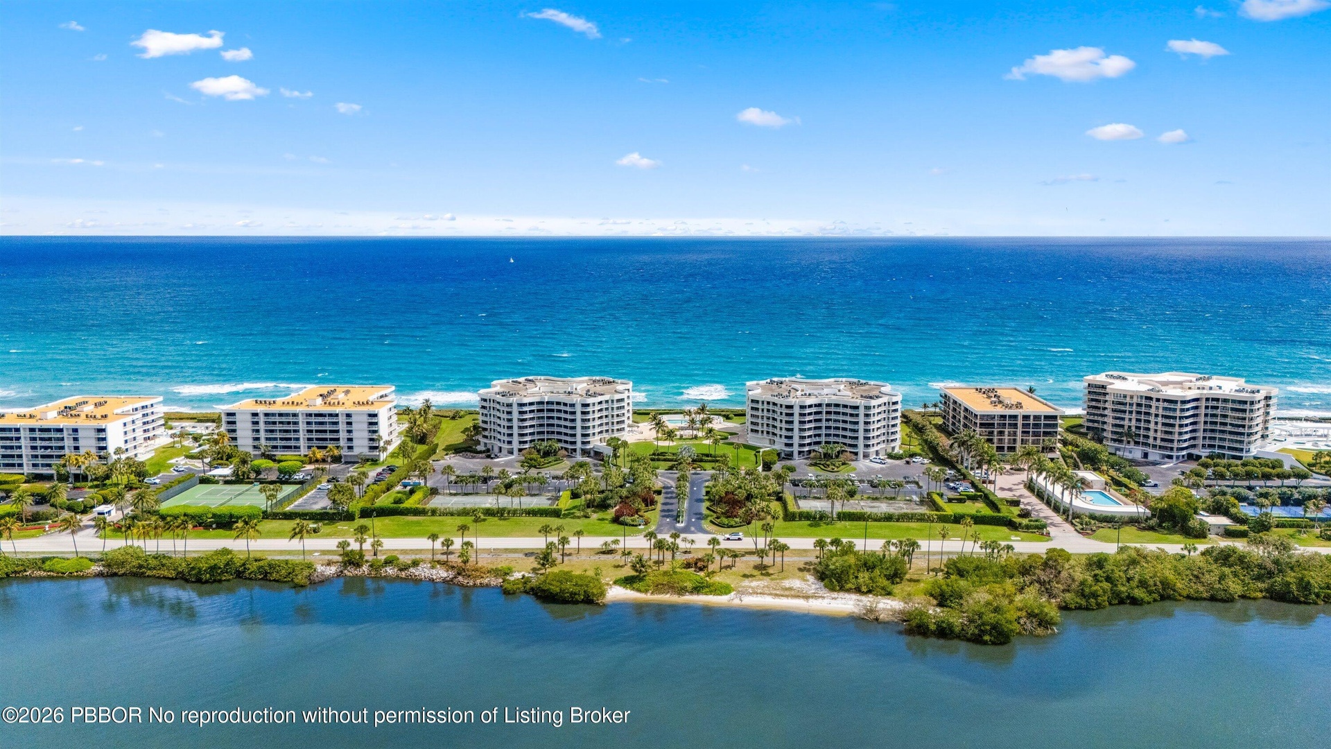 Beautifully remodeled combined residence with 3 bedrooms and 4 baths, offering stunning ocean to Intracoastal views from every major room.