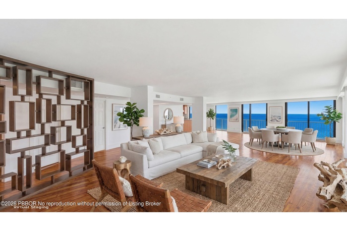 Beautifully remodeled combined residence with 3 bedrooms and 4 baths, offering stunning ocean-to-Intracoastal views from every major room. Located directly on the sand with beach access, this full-service building features a 24/7 doorman, oceanfront pool, fitness center, and tennis. Rare, oversized layout with luxury finishes throughout, coastal living at its best.