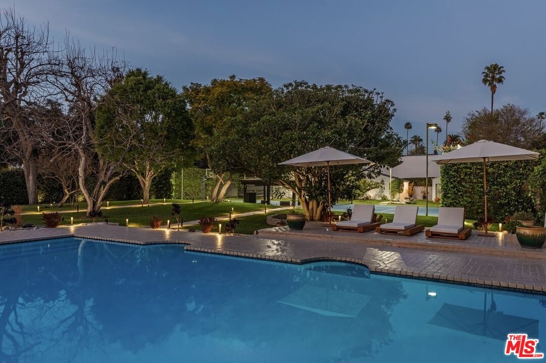 Welcome to an ultra rare jewel in the Flat of Beverly Hills a sprawling little shy of one acre (40,478 sq. ft.), fully gated estate featuring a single level, 7,000 sq. ft. residence, offered for the first time in more than three decades. Designed to evoke a true resort style lifestyle, this masterfully remodeled property boasts a heated saltwater pool, private tennis and basketball courts, a full gym, and a state-of-the-art surround sound system, creating an unparalleled environment for relaxation and entertainment. The estate is thoughtfully appointed with five bedrooms in the main residence and two additional bedrooms in the private guest house, blending comfort with sophistication for family and guests alike. A chef's kitchen with professional grade appliances anchors the home, while expansive living areas flow seamlessly to lush, manicured grounds ideal for hosting gatherings or enjoying tranquil privacy. Fully furnished with high-end Italian designer pieces, with flexibility to customize selections, the interiors reflect refined luxury tailored to your lifestyle. Security and peace of mind are assured with complete perimeter cameras, gated entry, and parking for 10+ cars. The estate also embraces modern flexibility with the option to pay in cryptocurrency, making this one-of-a-kind Beverly Hills retreat as forward thinking as it is timeless. Flexible lease term! available starting May 1st.
