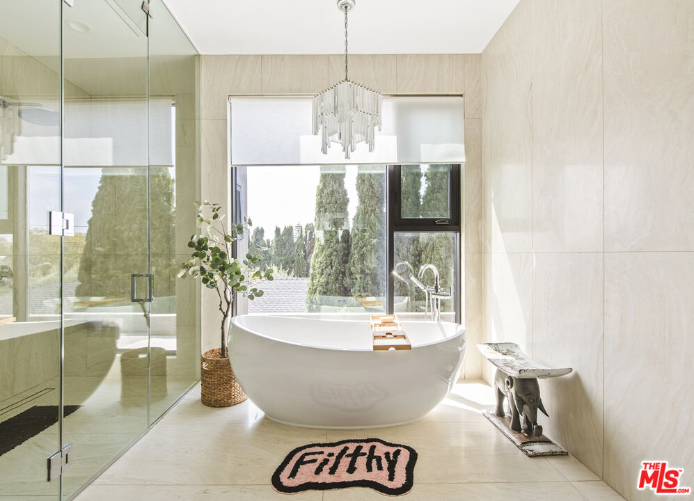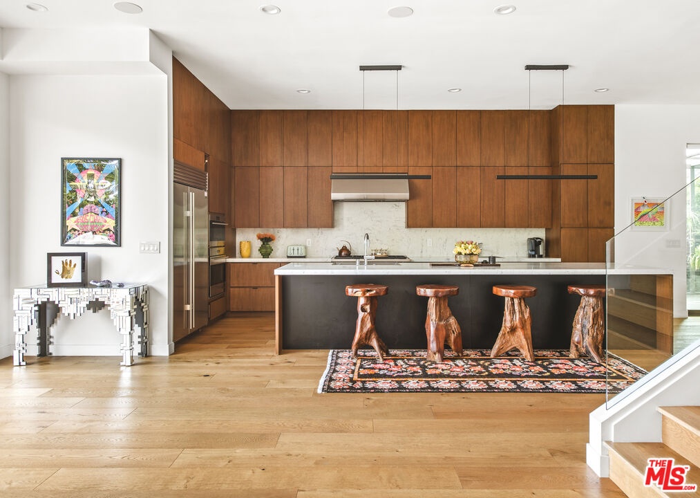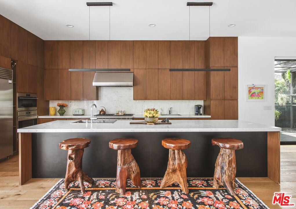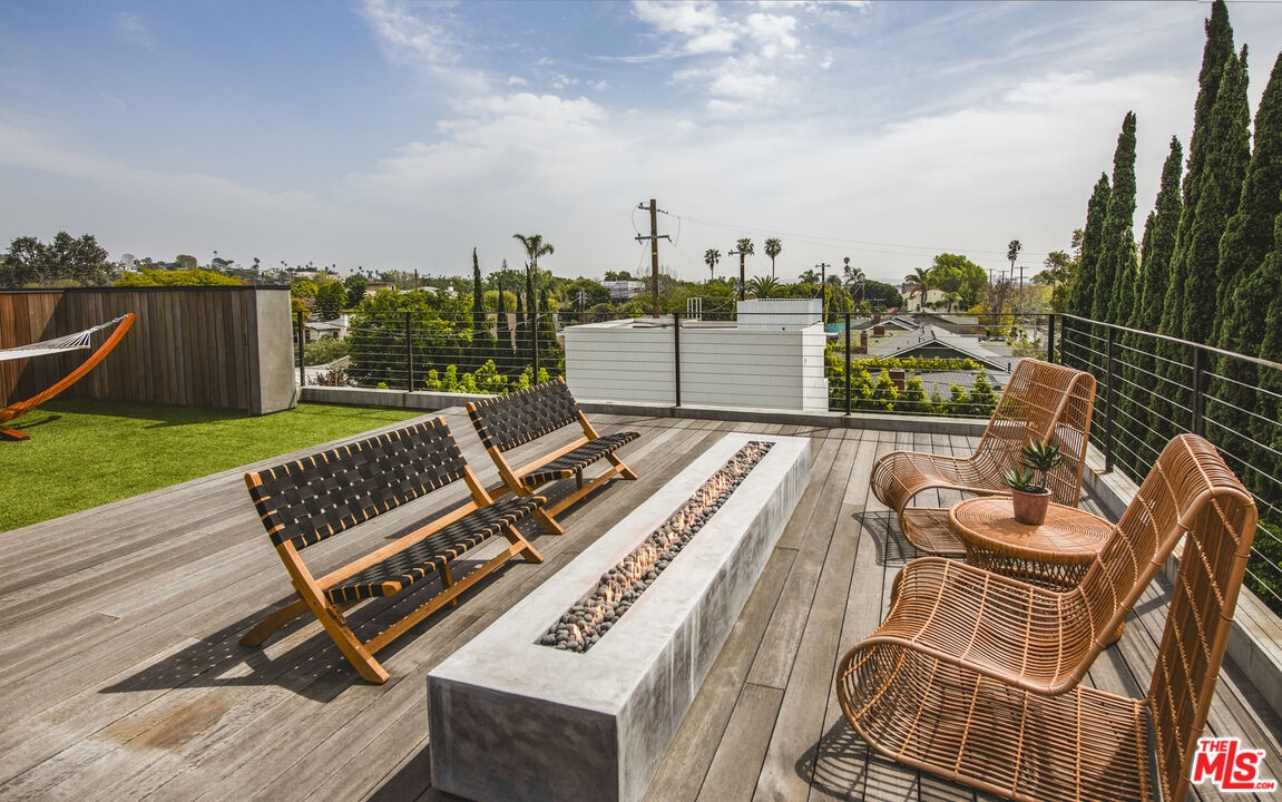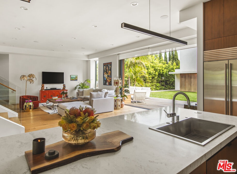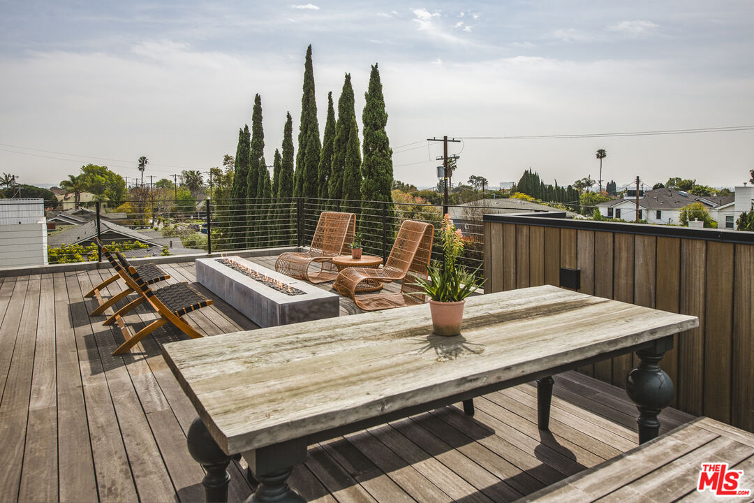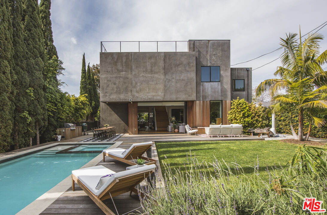 Discover an architectural gem with treetop and ocean glimpses, plus breathtaking sunsets. Created by OTT Arch, this unique contemporary home offers an open layout filled with light, promoting the sought-after Southern California indoor/outdoor living while ensuring privacy in Mar Vista. It features 7 beds, 8 baths, including 3 upstairs bedrooms each with private outdoor areas, and expansive 10' pocket doors blending inside and outside seamlessly. The kitchen highlights a 14' island, quartz countertops, and high-end appliances, complemented by built-in wine storage. A striking staircase with glass rails leads to impressive amenities like light wood floors, a security system with video cameras, and room speakers. The rooftop deck offers 360-degree views, a fire pit, and a projector for outdoor movie nights. The lush backyard boasts a 40' pool, spa, built-in BBQ, and an ADU with 2 beds, 1.75 baths, full kitchen, and laundry, totaling nearly 1,100 sqft. A must-see home. Available furnished at a higher lease price per month.
