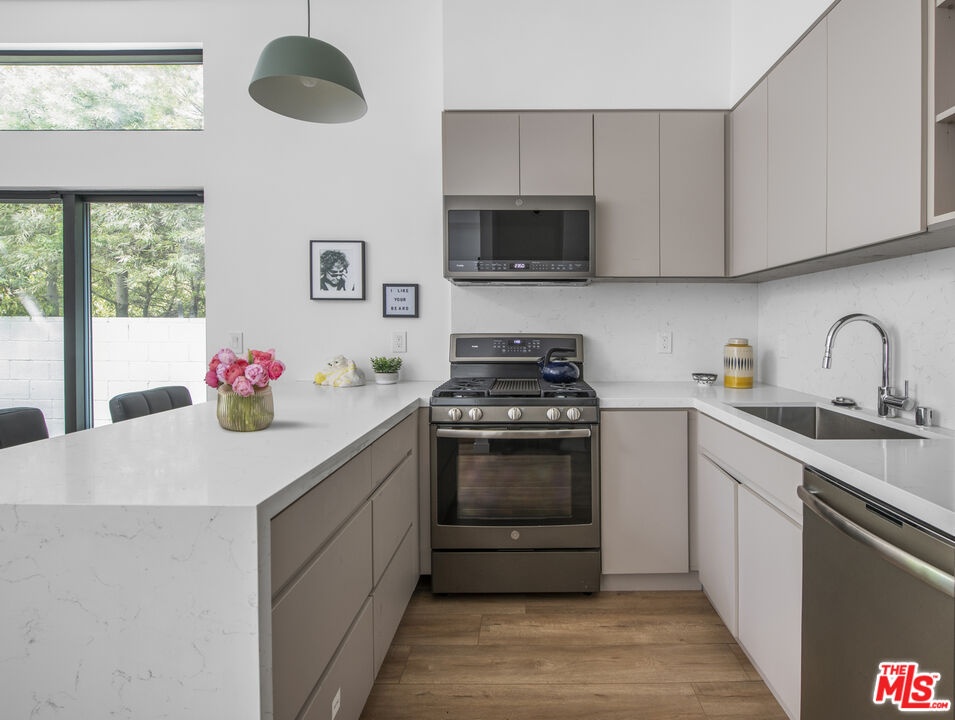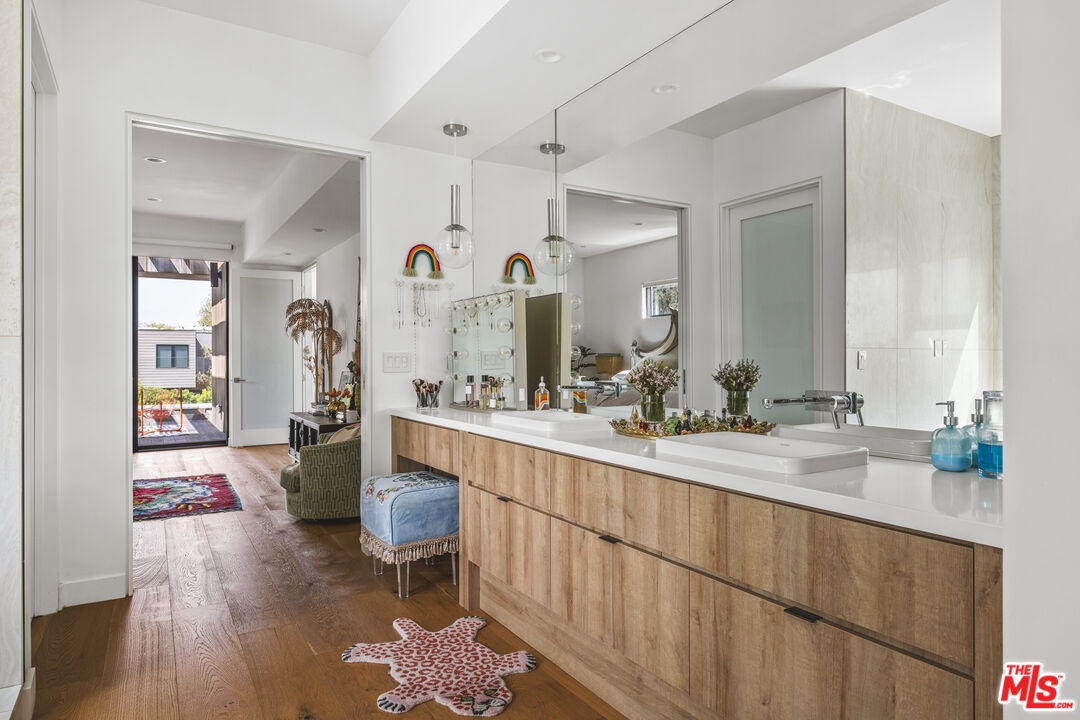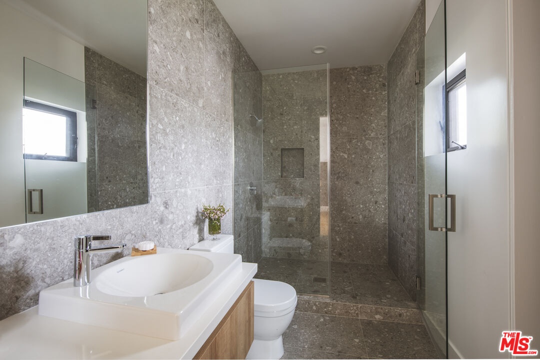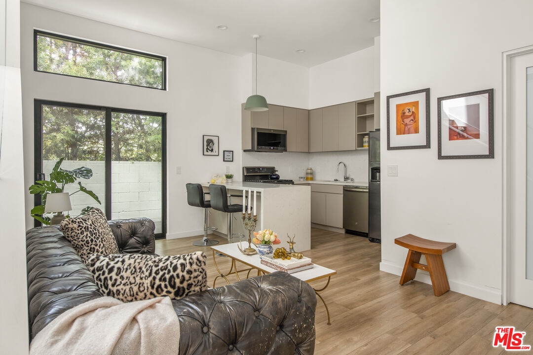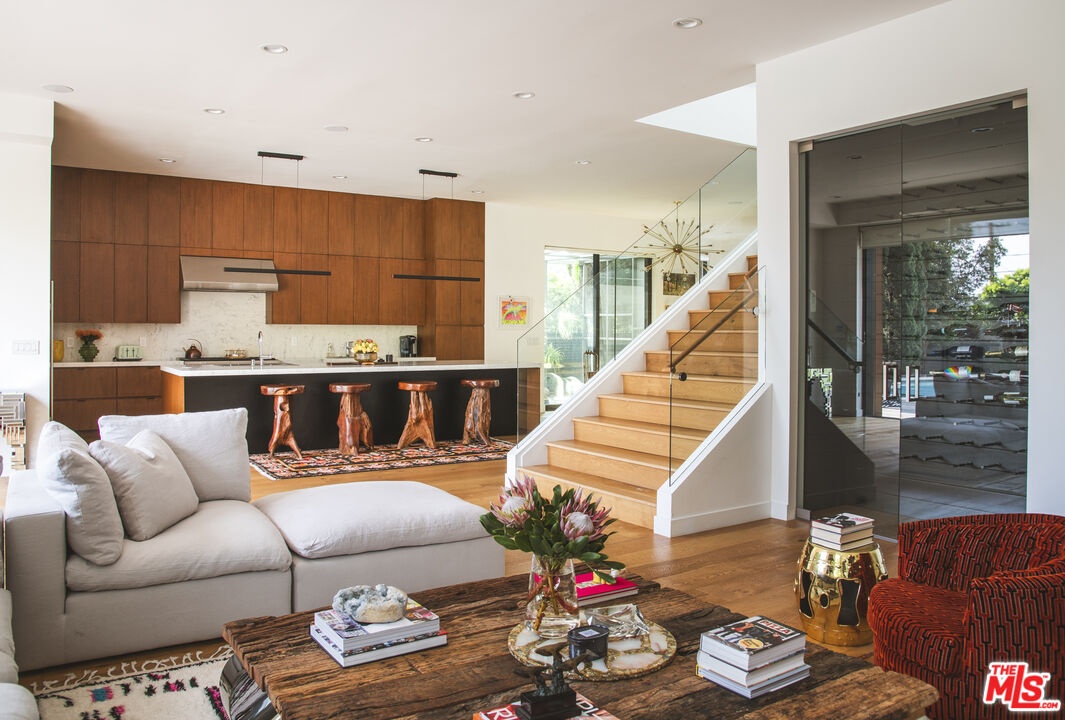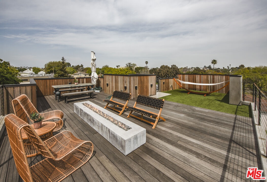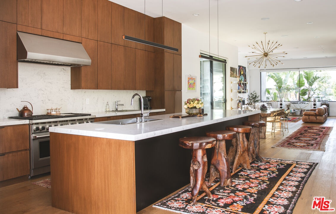 Discover an architectural gem with treetop and ocean glimpses, plus breathtaking sunsets. Created by OTT Arch, this unique contemporary home offers an open layout filled with light, promoting the sought-after Southern California indoor/outdoor living while ensuring privacy in Mar Vista. It features 7 beds, 8 baths, including 3 upstairs bedrooms each with private outdoor areas, and expansive 10' pocket doors blending inside and outside seamlessly. The kitchen highlights a 14' island, quartz countertops, and high-end appliances, complemented by built-in wine storage. A striking staircase with glass rails leads to impressive amenities like light wood floors, a security system with video cameras, and room speakers. The rooftop deck offers 360-degree views, a fire pit, and a projector for outdoor movie nights. The lush backyard boasts a 40' pool, spa, built-in BBQ, and an ADU with 2 beds, 1.75 baths, full kitchen, and laundry, totaling nearly 1,100 sqft. A must-see home. Available furnished at a higher lease price per month.