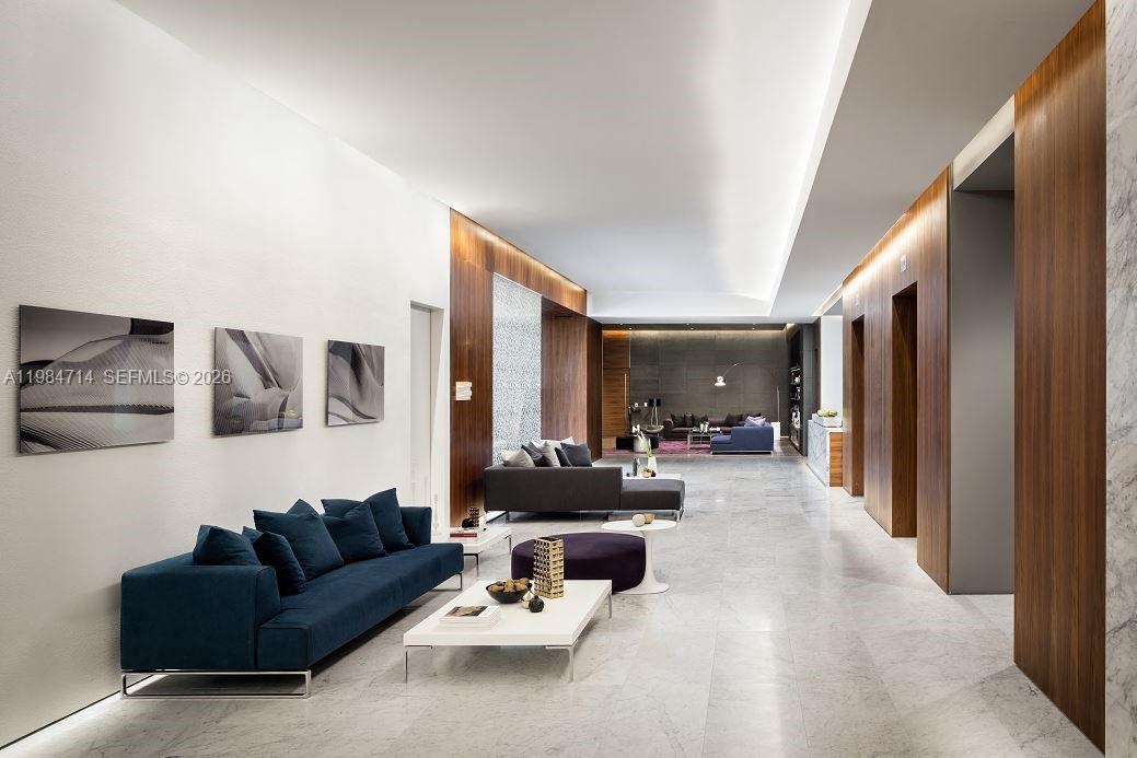 This beautifully appointed residence boasts an open concept layout with sweeping views of the garden, city skyline, and Miami River.