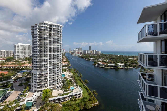 Spectacular furnished 2-bedroom, 2-bath residence on the 22nd floor with breathtaking views of the Intracoastal, ocean, and canal. This fully renovated unit features a desirable split floor plan, and floor-to-ceiling windows that open to an oversized terrace, perfect for enjoying the stunning water views. Located in a full-service building that has completed its 40-year certification, with renovated lobby, hallways, balconies, and common areas. Amenities include 24-hour security, concierge, valet parking, and a resort-style pool. HOA includes cable, water, sewer, trash, Wi-Fi, pest control, landscaping, roof maintenance, and assigned parking. Investor-friendly with immediate rentals allowed. Prime location minutes from Aventura Mall, golf courses, beaches, and entertainment.
