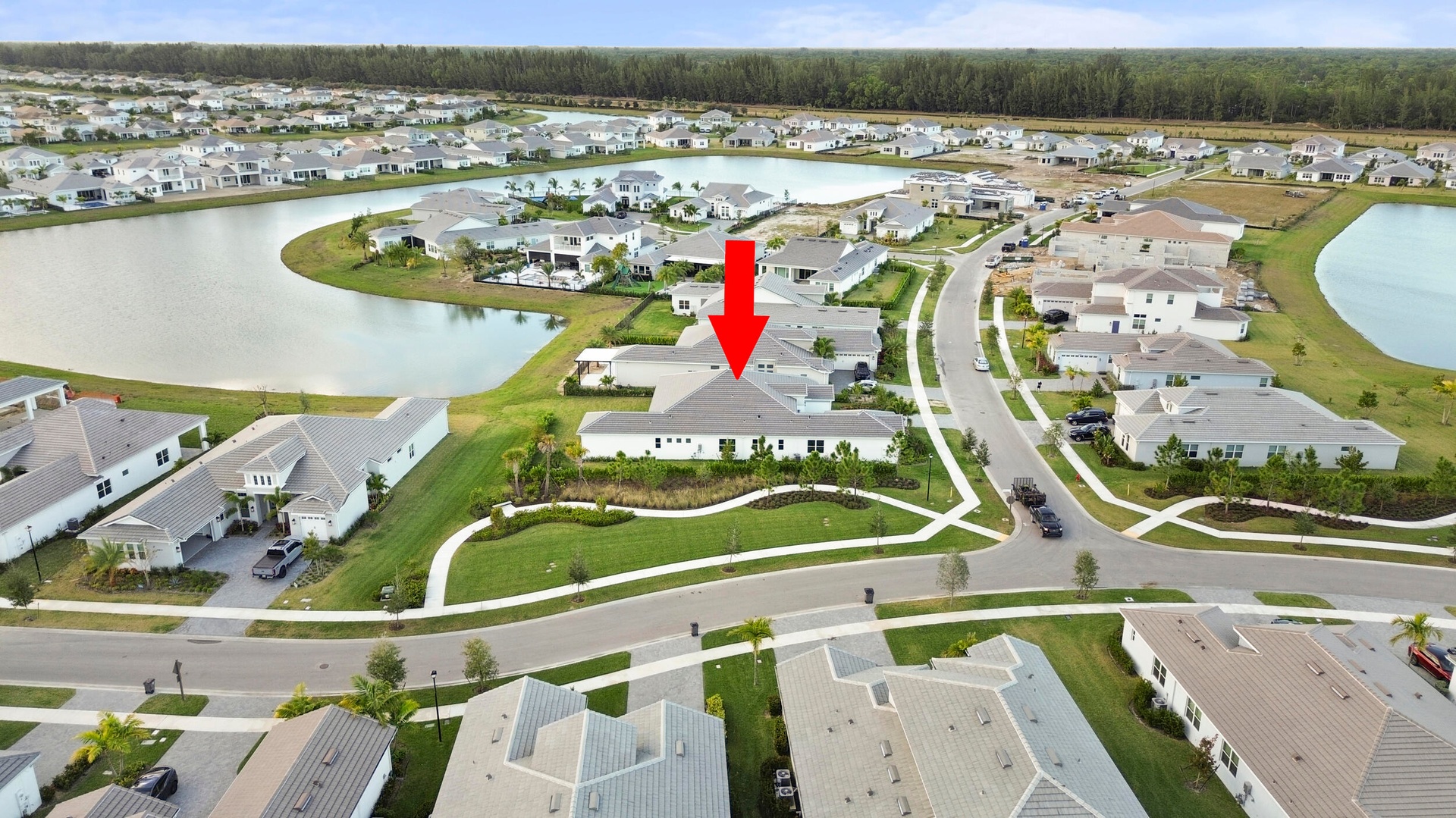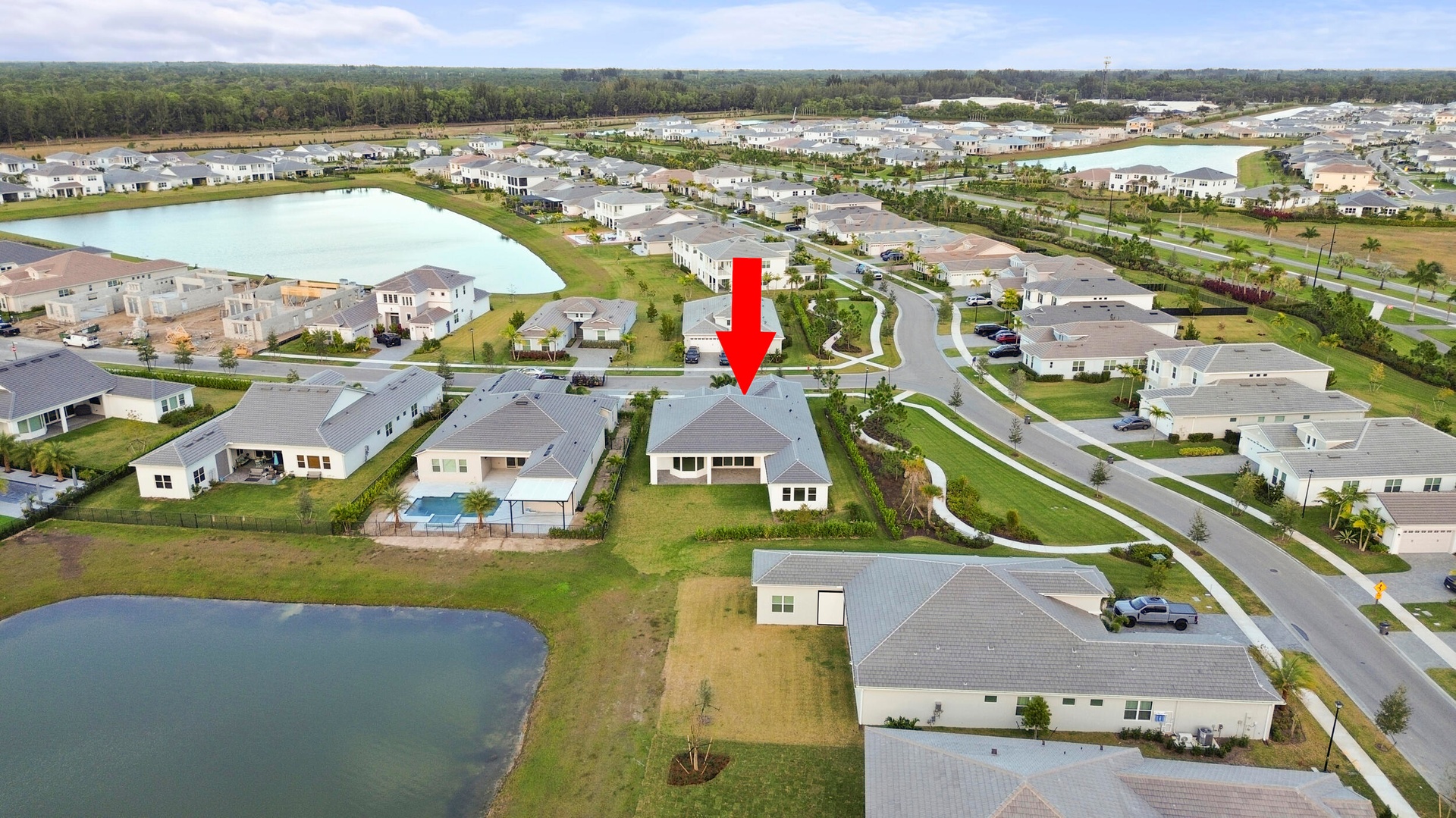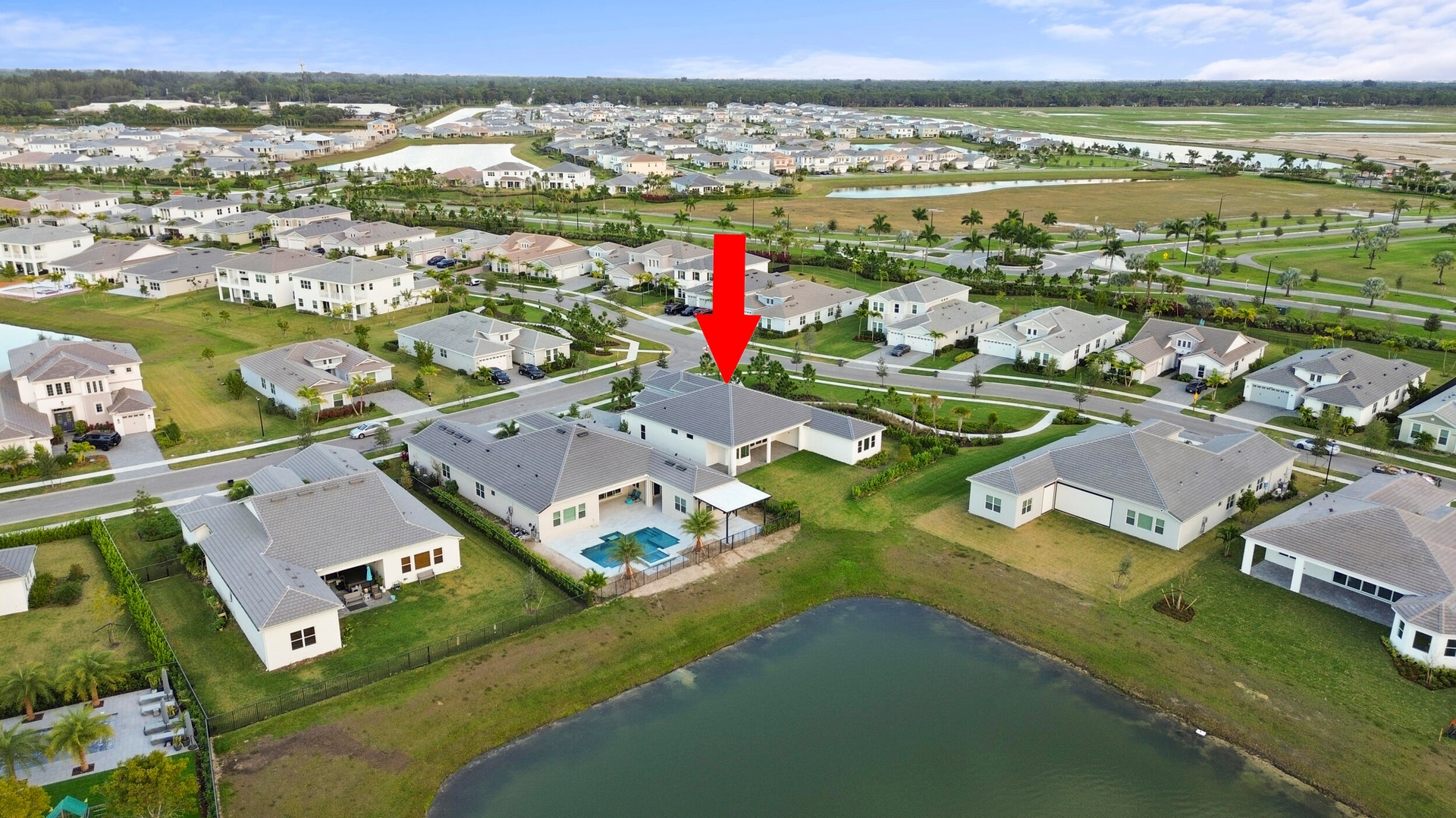 Welcome to 5741 Beechnut Dr., an exceptional lakefront residence from the highly sought-after Atlantic Collection featuring the coveted Jupiter Grand model, located in the prestigious Woodlands at Westlake, FL. This home represents a rare opportunity, as it is one of the final Atlantic Collection homes ever to be built, with this exclusive collection now being discontinued in Westlake. Positioned on a premium corner lot, the property offers enhanced privacy, expansive long lake views, and breathtaking sunset backdrops that create a truly serene and picturesque setting. This expansive 5-bedroom, 5.5-bathroom home is thoughtfully designed to blend luxury with everyday comfort. Each bedroom features its own private en-suite bathroom, providing ultimate convenience and privacy for family members and guests alike, while an additional half bath is perfectly suited for entertaining. At the heart of the home is an expansive, chef-inspired kitchen featuring upgraded floor-to-ceiling bay windows that flood the space with natural light and frame stunning lake views. The kitchen also includes an extended island with additional built-in storage, ideal for both functionality and gathering. Floor-to-ceiling sliding glass doors seamlessly connect indoor and outdoor living, creating an open and airy atmosphere perfect for entertaining. A full dry bar adds another layer of sophistication, making hosting effortless and elegant. The luxurious primary suite is a true retreat, featuring his and hers showers, along with separate walk-in closets on opposite ends, offering both space and privacy. Additional highlights include a long, spacious laundry room designed for convenience and efficiency. Residents of Westlake enjoy access to world-class amenities at the Westlake Adventure Park, including a resort-style lagoon pool, tower slide, splash pad, cabanas, basketball courts, dog park, playgrounds, and more. Conveniently located, the home is just minutes from Wellington Regional Medical Center and Palms West Hospital, as well as a variety of shopping, dining, and everyday conveniences. This is more than just a home. It is a rare opportunity to own one of the last homes in Westlake's exclusive and now discontinued Atlantic Collection.