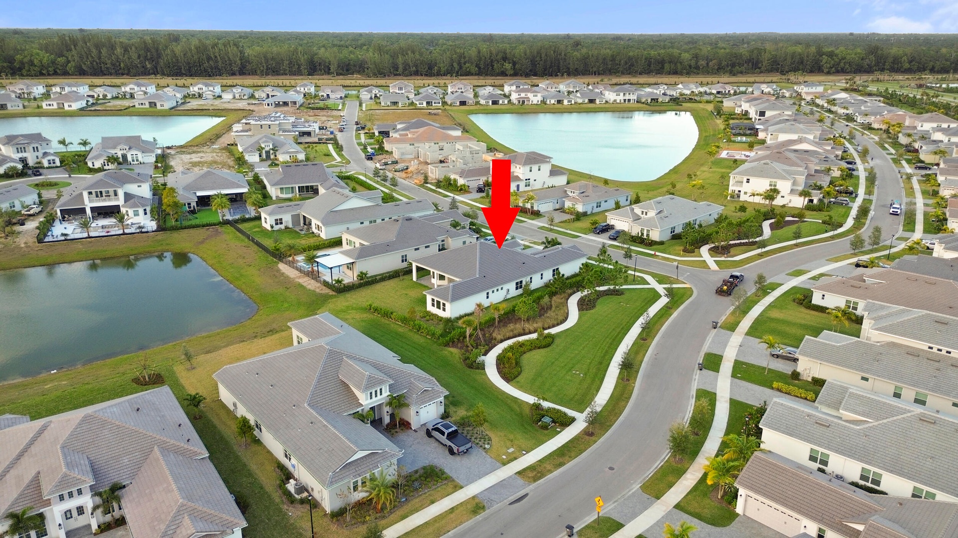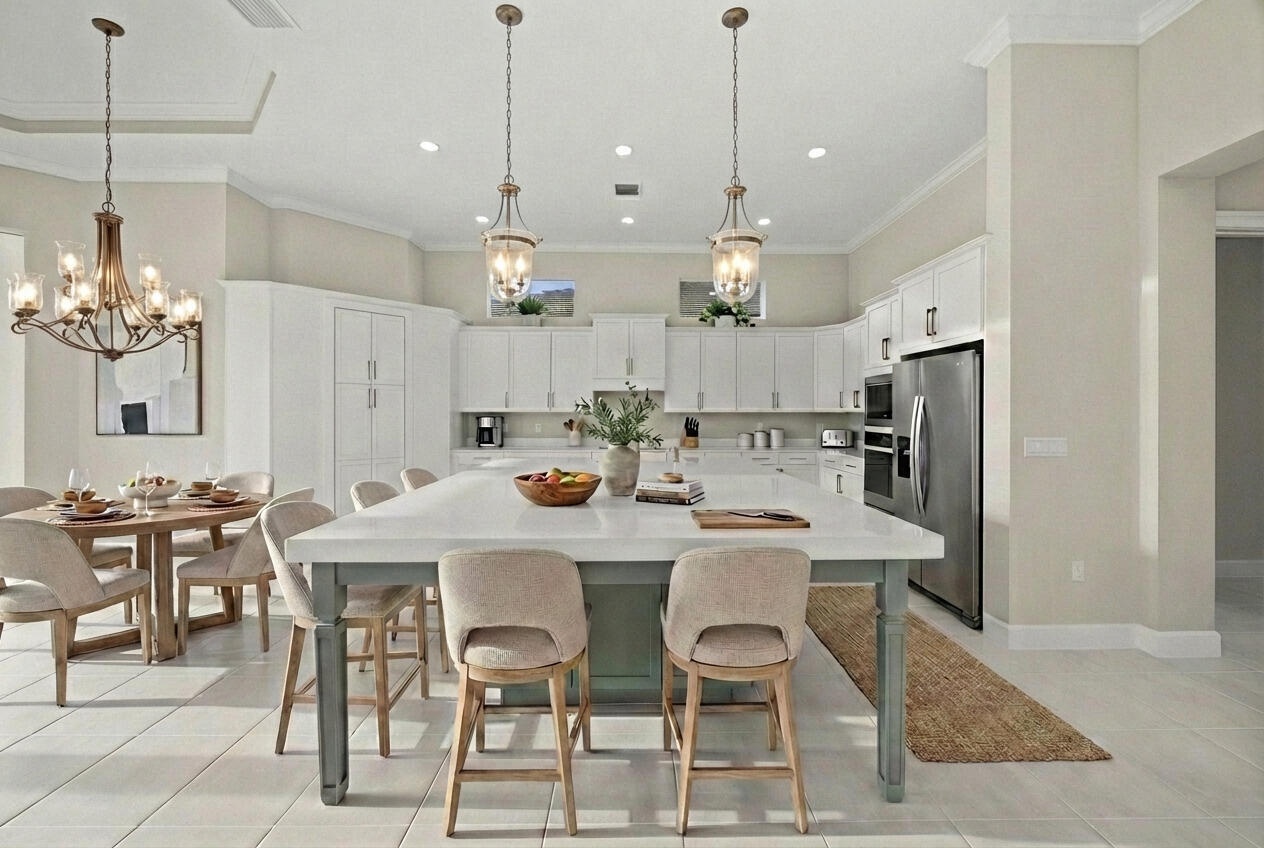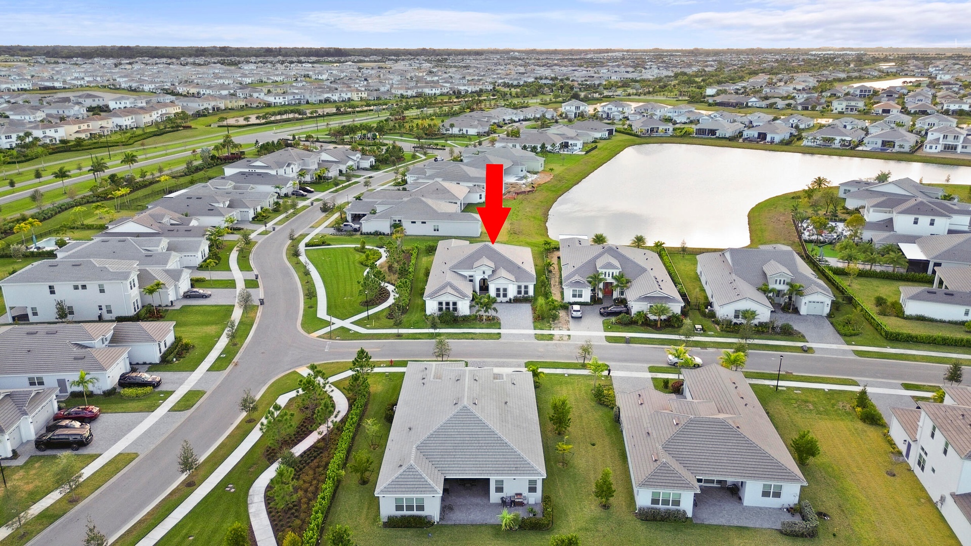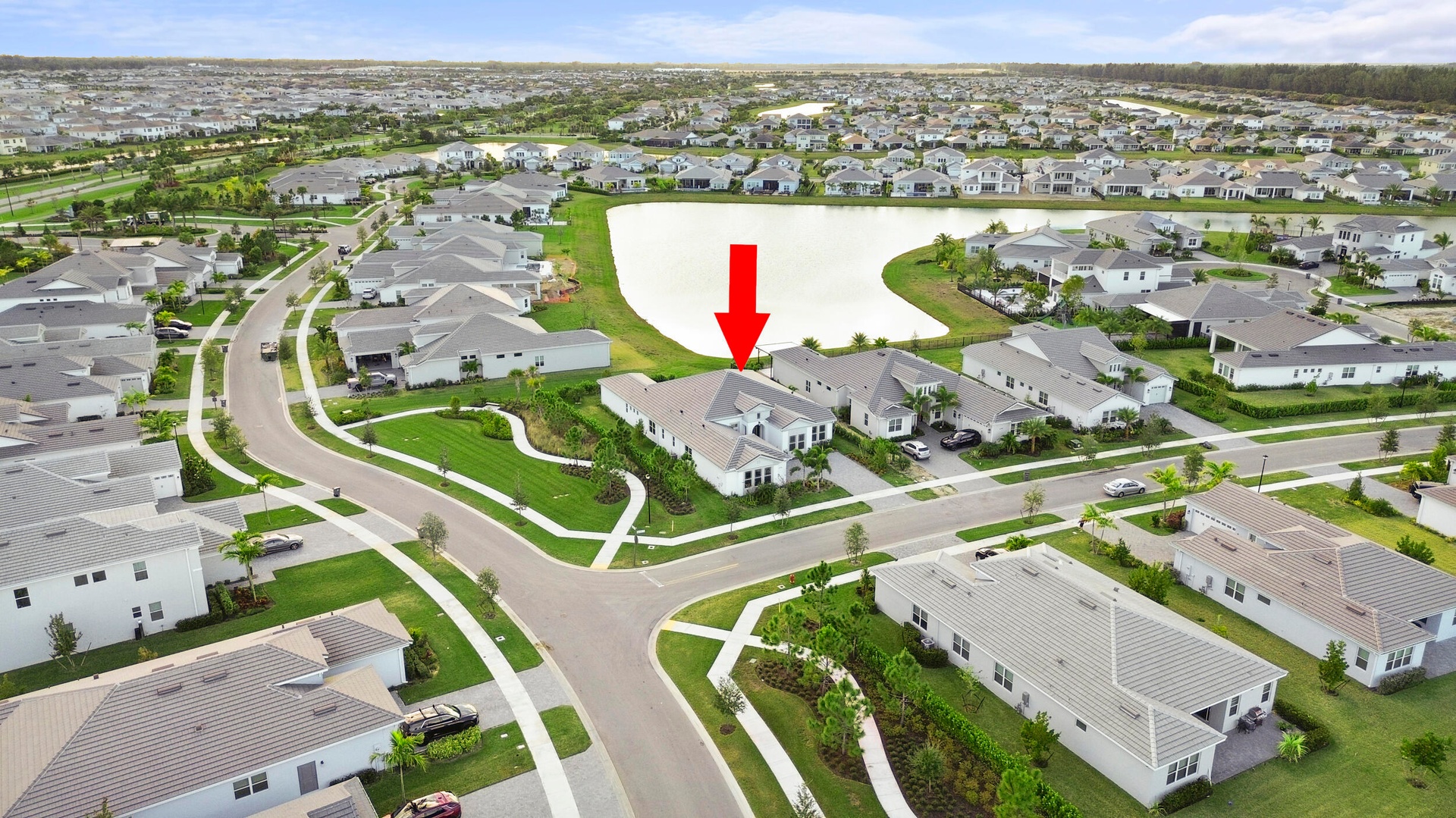 Welcome to 5741 Beechnut Dr., an exceptional lakefront residence from the highly sought-after Atlantic Collection featuring the coveted Jupiter Grand model, located in the prestigious Woodlands at Westlake, FL. This home represents a rare opportunity, as it is one of the final Atlantic Collection homes ever to be built, with this exclusive collection now being discontinued in Westlake. Positioned on a premium corner lot, the property offers enhanced privacy, expansive long lake views, and breathtaking sunset backdrops that create a truly serene and picturesque setting. This expansive 5-bedroom, 5.5-bathroom home is thoughtfully designed to blend luxury with everyday comfort. Each bedroom features its own private en-suite bathroom, providing ultimate convenience and privacy for family members and guests alike, while an additional half bath is perfectly suited for entertaining. At the heart of the home is an expansive, chef-inspired kitchen featuring upgraded floor-to-ceiling bay windows that flood the space with natural light and frame stunning lake views. The kitchen also includes an extended island with additional built-in storage, ideal for both functionality and gathering. Floor-to-ceiling sliding glass doors seamlessly connect indoor and outdoor living, creating an open and airy atmosphere perfect for entertaining. A full dry bar adds another layer of sophistication, making hosting effortless and elegant. The luxurious primary suite is a true retreat, featuring his and hers showers, along with separate walk-in closets on opposite ends, offering both space and privacy. Additional highlights include a long, spacious laundry room designed for convenience and efficiency. Residents of Westlake enjoy access to world-class amenities at the Westlake Adventure Park, including a resort-style lagoon pool, tower slide, splash pad, cabanas, basketball courts, dog park, playgrounds, and more. Conveniently located, the home is just minutes from Wellington Regional Medical Center and Palms West Hospital, as well as a variety of shopping, dining, and everyday conveniences. This is more than just a home. It is a rare opportunity to own one of the last homes in Westlake's exclusive and now discontinued Atlantic Collection.