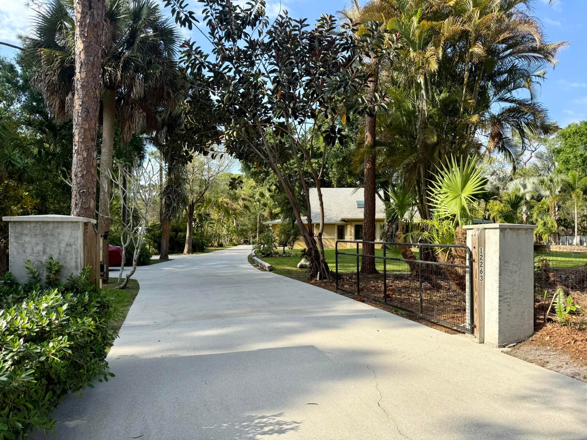Rare, custom concrete, 2 building estate on paved roads in Jupiter Farms.