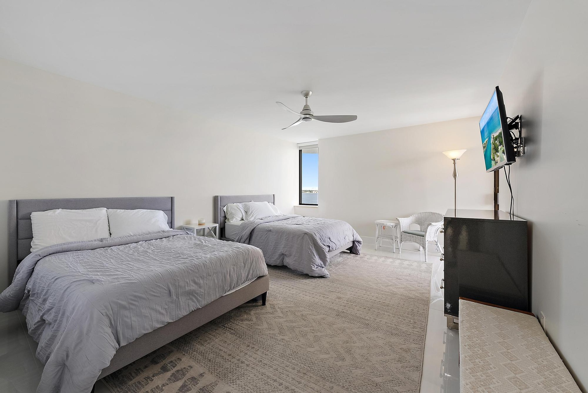 Don't miss this fully updated oceanfront end-unit in the highly desirable gated community of SeaWinds on Singer Island. Renovated in 2023, this spacious 2BR/2BA residence offers over 1,800 sq. ft. with ceramic tile throughout and modernized kitchen and baths. Enjoy balcony views of both the ocean and intracoastal from this rare end-unit. The large primary suite features a balcony, while the guest room offers one queen and one full bed, plus a pull-out sleeper sofa in the living room. Additional highlights include in-unit washer/dryer, extra storage, and one garage parking space. SeaWinds amenities include 24-hour manned gate, pools, fitness center, tennis, and direct beach access. Offered fully furnished for season and annual