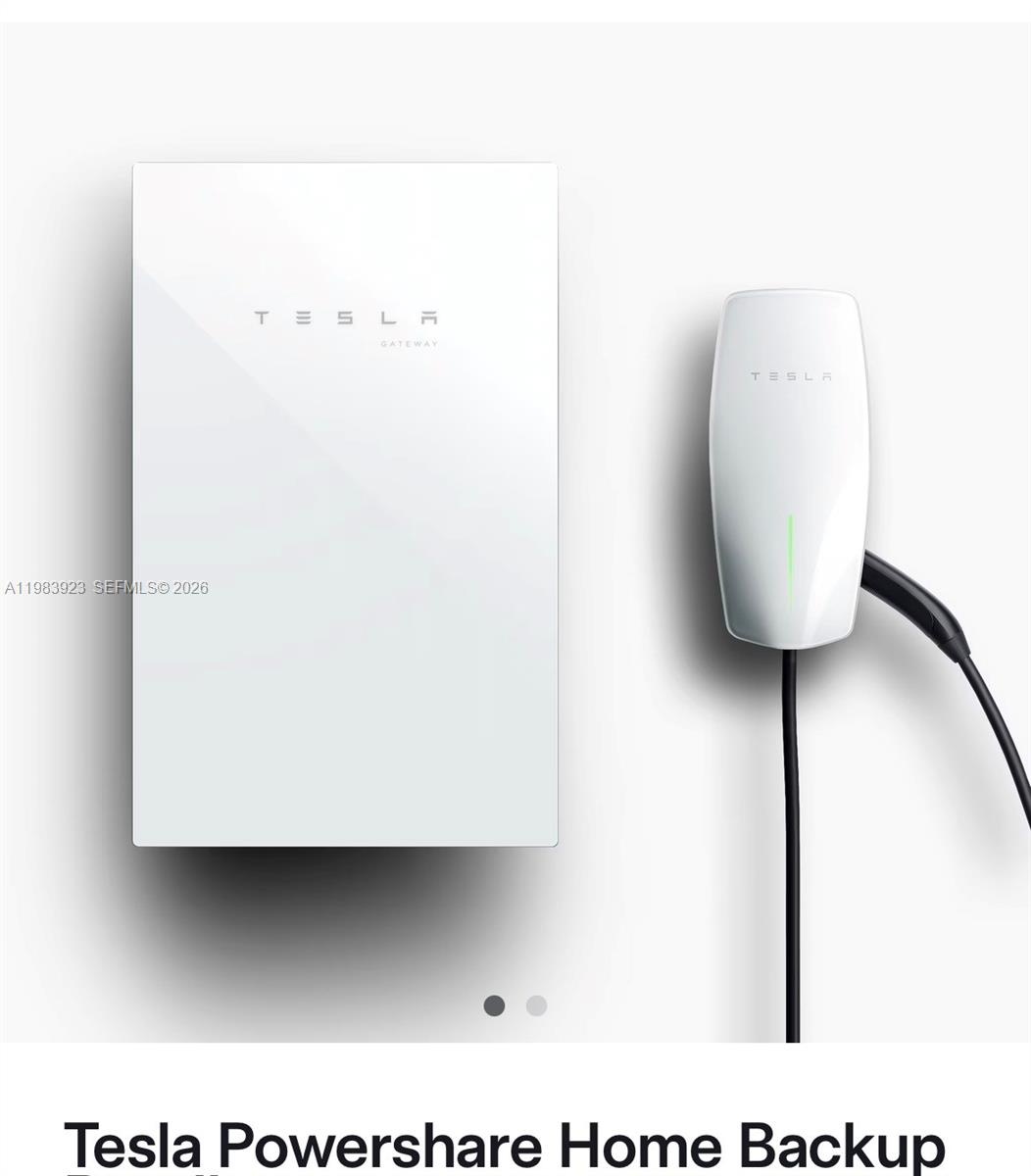 Additional features include a Tesla Universal EV charger with an available power share home backup system adding modern convenience.