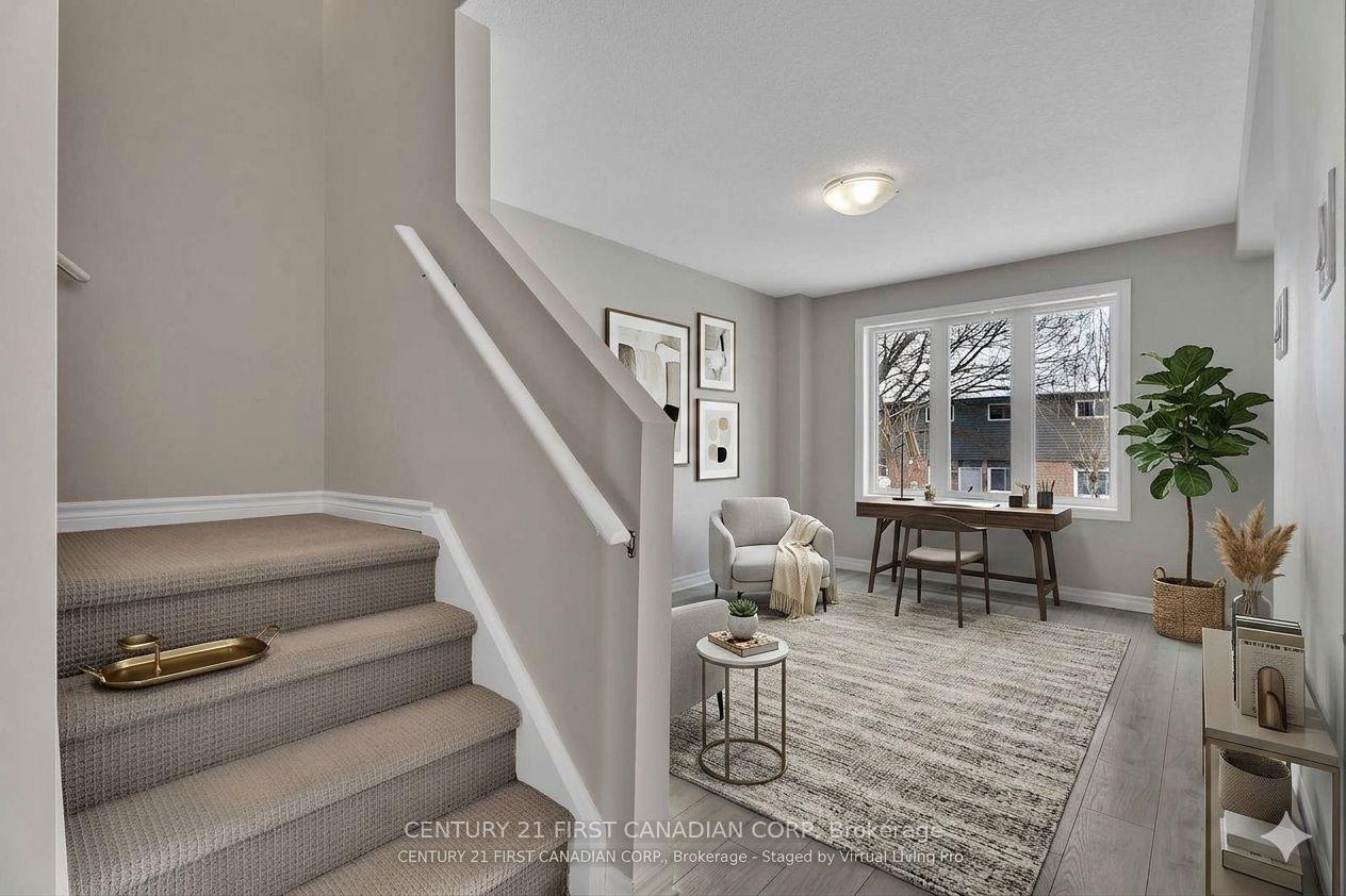 FREEHOLD Two-Storey townhouse, 7-year-old features 3 bedrooms and an attached single-car garage, making it an ideal choice for a small family. The kitchen is equipped with quartz countertops, adding a modern touch. Conveniently located within walking distance to Fanshawe College, a community center, parks, grocery stores, schools, shopping, a public library, and bus stops, this property offers unmatched accessibility. Additional features include a spacious backyard and a master bedroom with a walk-in closet. Public transit is just a 3-minute walk away. For families, the home is served by 6 public and 5 Catholic schools. Recreational opportunities abound, with 3 playgrounds and 16 other facilities within a 20-minute walk. A fantastic place to call home! Some of the Pics are virtual staged
