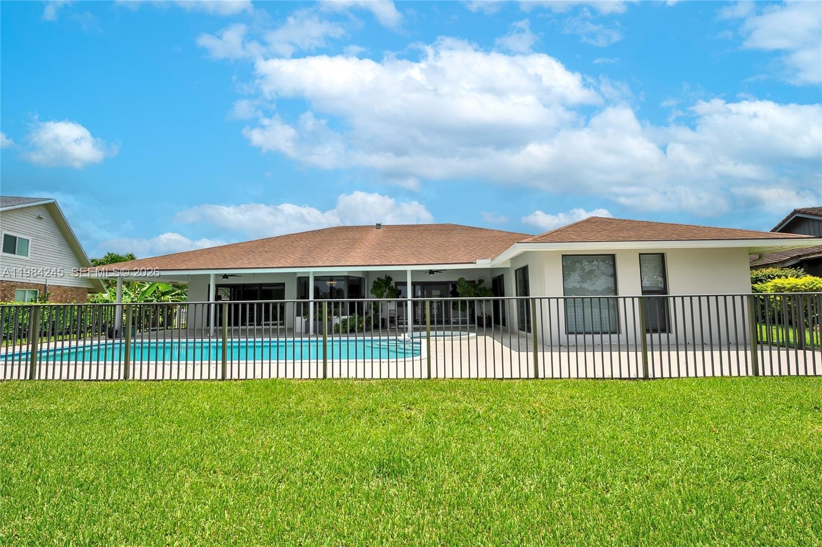 Enjoy seamless indoor-outdoor living with a spacious pool deck overlooking the lake—ideal for entertaining or unwinding in a tranquil setting. The property also features a lake-fed irrigation system.