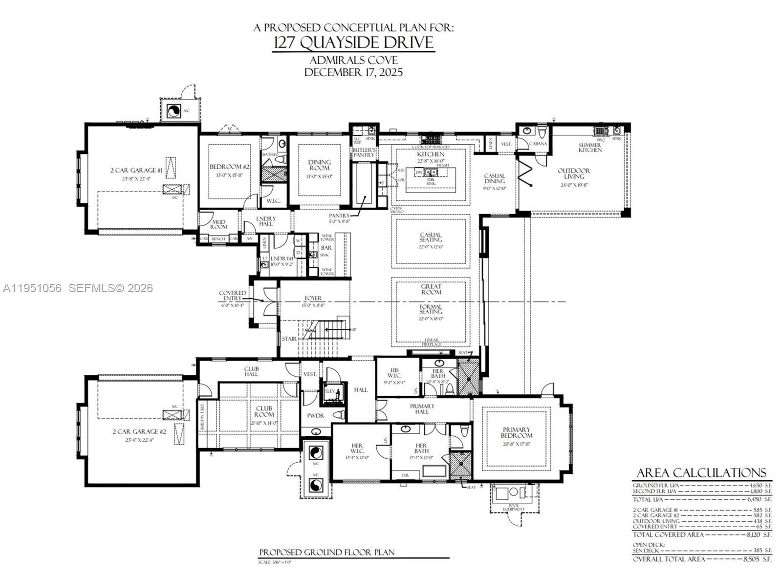 Situated on a quiet island street, this is a rare opportunity to own a brand-new waterfront home on one of the most coveted streets in Admirals Cove. With desirable southern exposure, and offering direct ocean access this is a property you won't want to miss! Built by award-winning Hasey Construction, this residence offers 6,450 square feet of air-conditioned living space across two levels, with over 8,100 square feet total under roof. The thoughtfully designed layout features five en-suite bedrooms, a private club room, four-car garage, and expansive open living areas created for both everyday comfort and elevated entertaining. The main level is centered around an expansive open-concept living environment, including a dramatic great room with linear fireplace, formal and casual dining