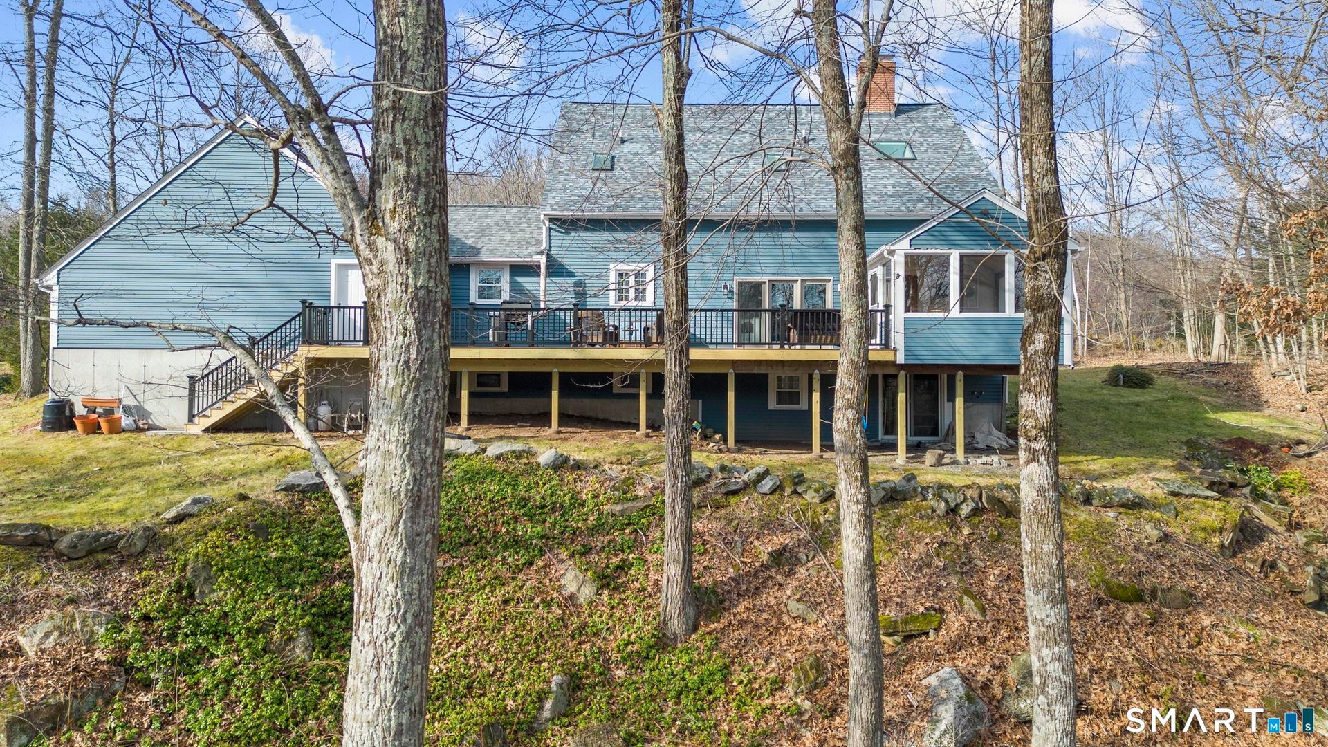 Deadline for Offers Monday 3/23 at 10:00 AM! Pretty as a Picture ~ Delightful 10-room Colonial nestled on 2+ acres in popular cul-de-sac neighborhood, just minutes away from I -384, Hartford and Glastonbury. This home exudes charm and versatility, boasting an open layout enhanced by lovely French doors, chic wall colors, designer lighting and gleaming hardwood floors. The kitchen has been updated with center island, breakfast bar, granite countertops, stone backsplash and stainless appliances including double wall ovens. Enjoy a seamless flow into the family room and, from there, the luscious 3-season sunroom overlooking beautiful, new, expansive deck. The living room with stunning fireplace transforms to private office or den by simply closing the French doors. Upstairs is a very spacious ensuite primary bedroom with walk-in closet AND separate room for office or nursery, 2 additional bedrooms, and a 2nd full bath. The finished walk-out lower level provides 780 sq ft of extended living space, with recreation and media areas, and a separate (4th) bedroom for guests or in-laws with attached full bath. Additional amenities of this fabulous home: new roof and skylights 2022, deck 2023, carpet 2nd floor 2017, septic tank 2008, water softener system 2023, mudroom, main level laundry and half bath, 2- bay attached garage, paver front walkway.